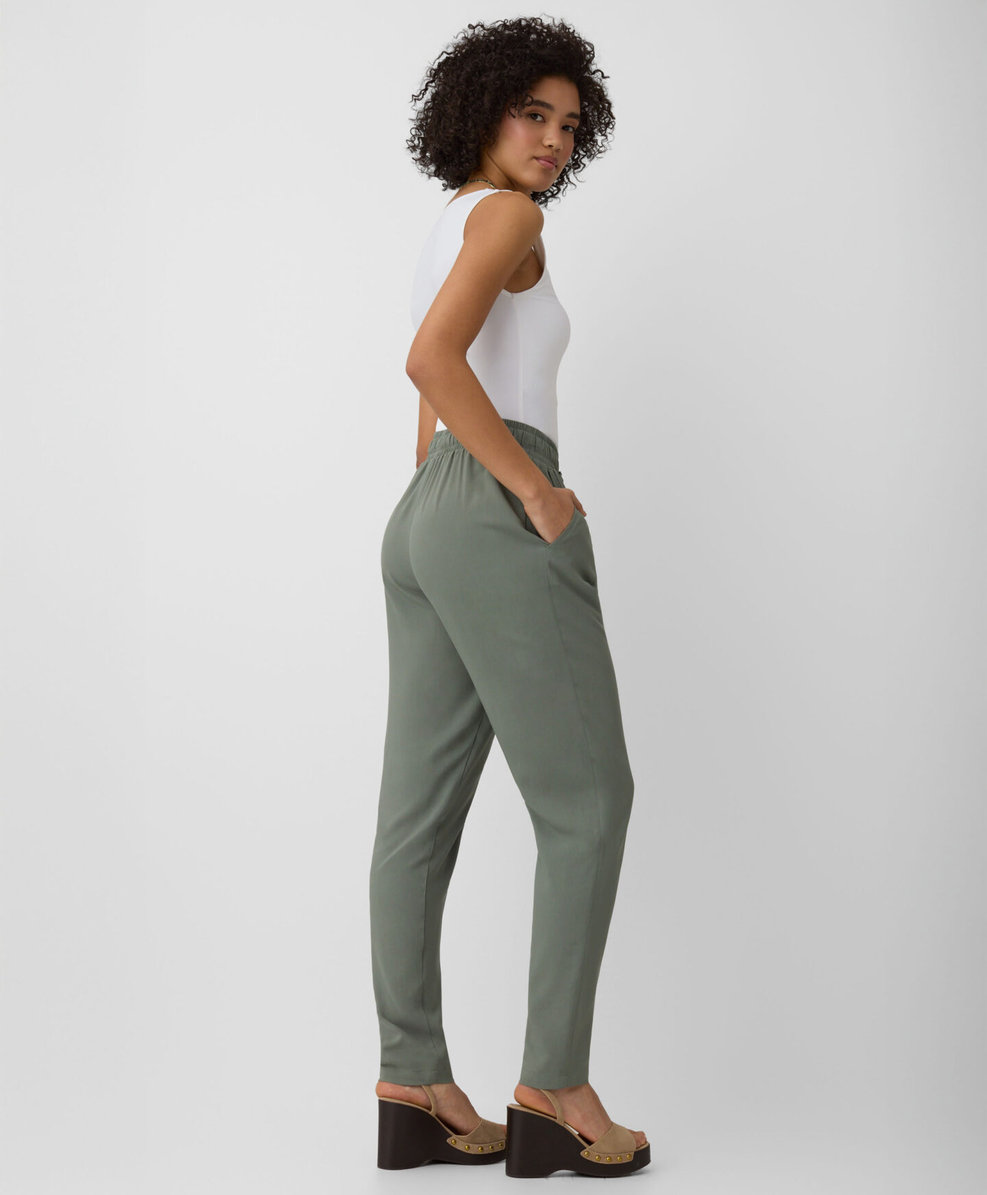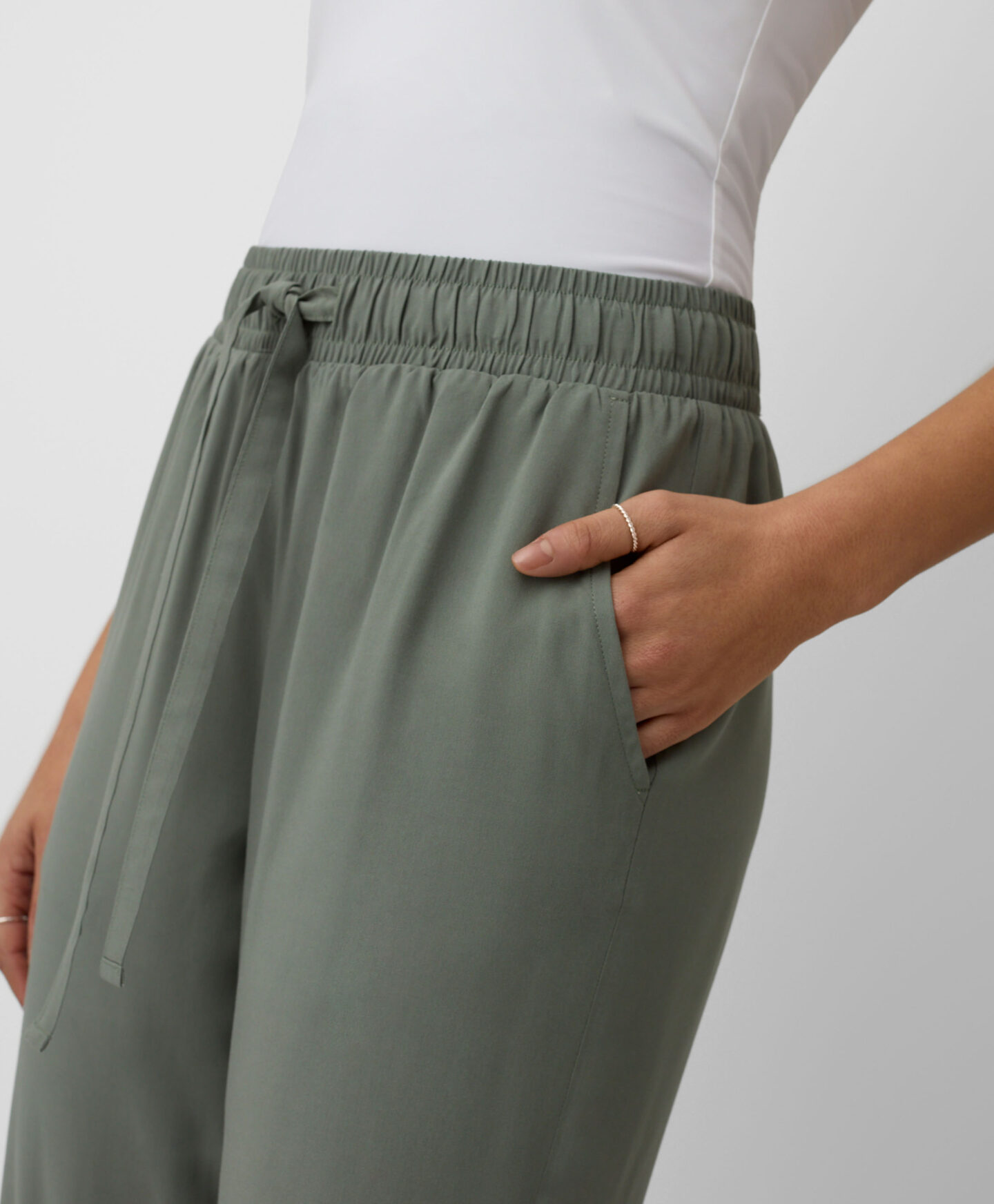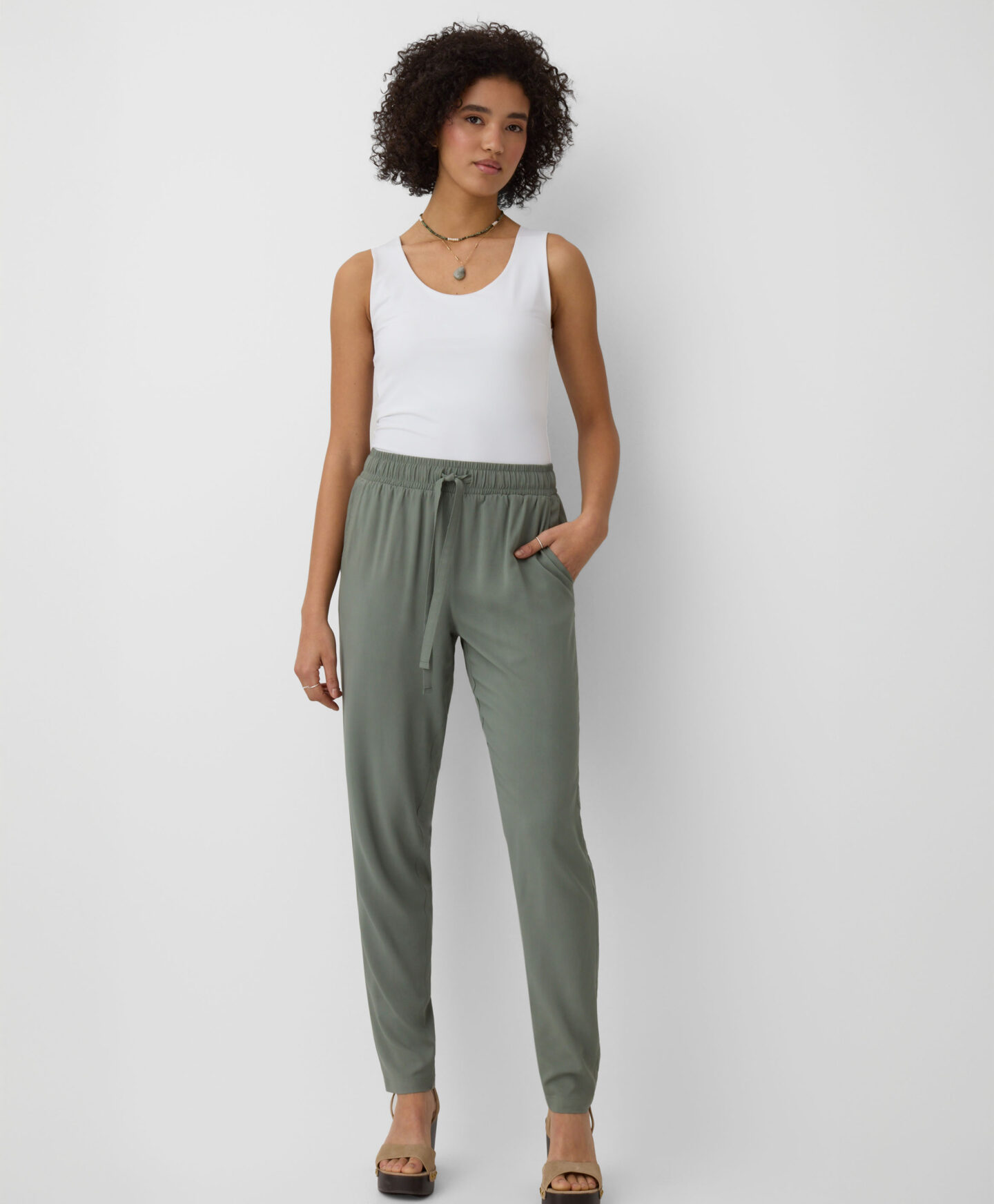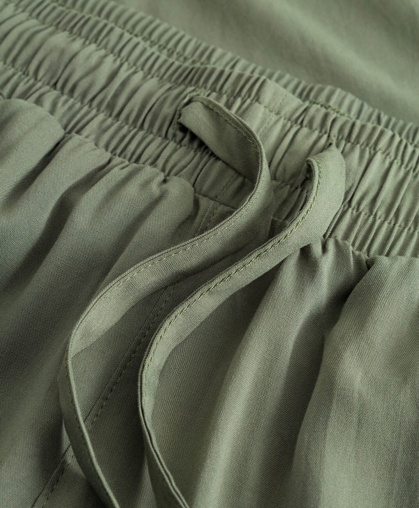 Tyto dámské kalhoty ze 100% viskózy v zelené barvě jsou perfektní volbou pro ženy, které si cení stylu a maximálního pohodlí při každodenním nošení. Vázání v pase umožňuje dokonalé přizpůsobení postavě. Tlumená barva usnadňuje jejich styling. Můžete je kombinovat s blůzkou, topem nebo košilí, v závislosti na příležitosti. Na výběr ve dvou barvách.