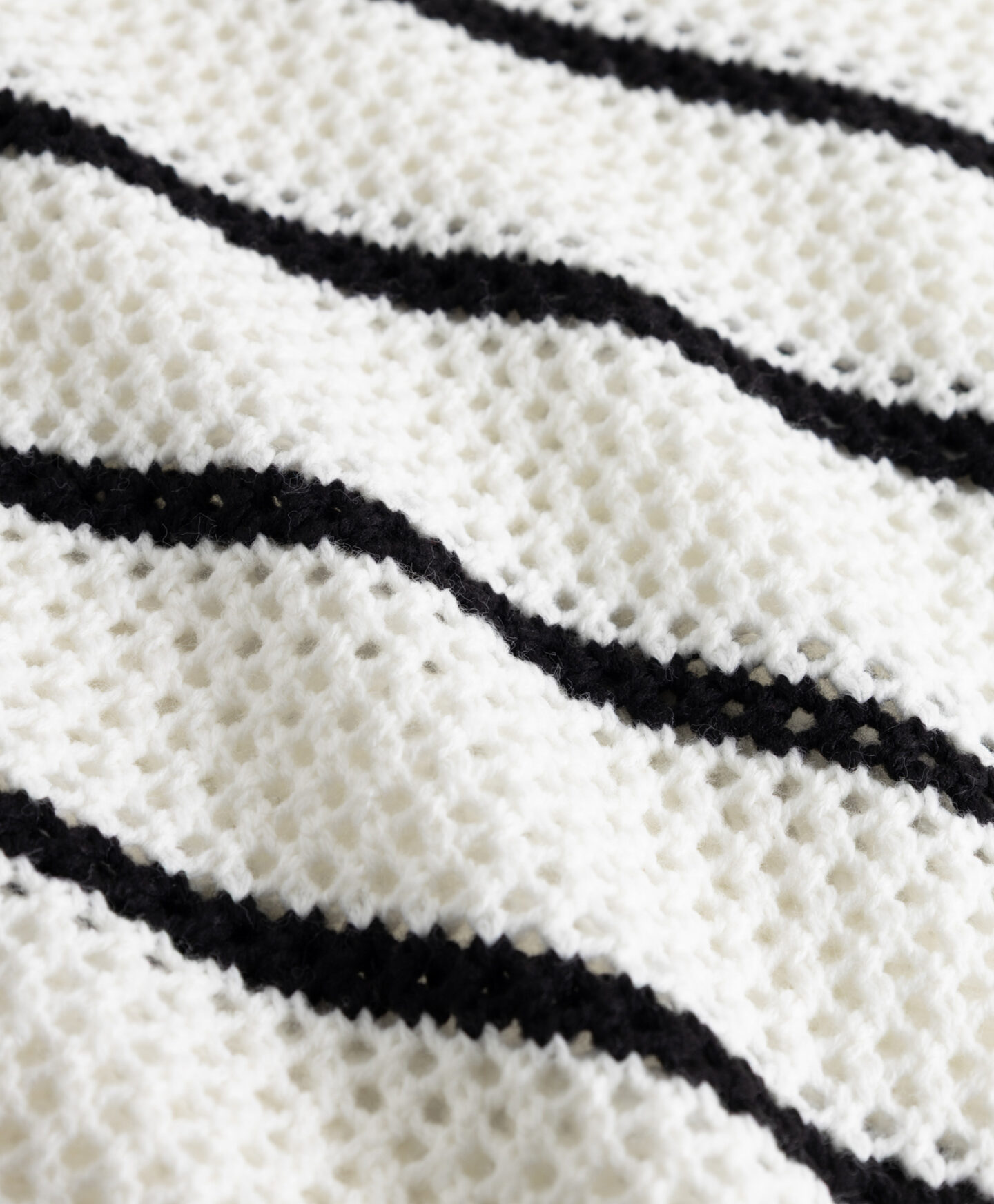 Dámský pruhovaný pulovr s ažurovým vzorem bude módní volbou. Ažurový vzor je nejen prodyšný, ale také krásně vypadá. Díky tomu je pulovr jemným doplňkem každého outfitu, ať už ležérního nebo elegantnějšího.
