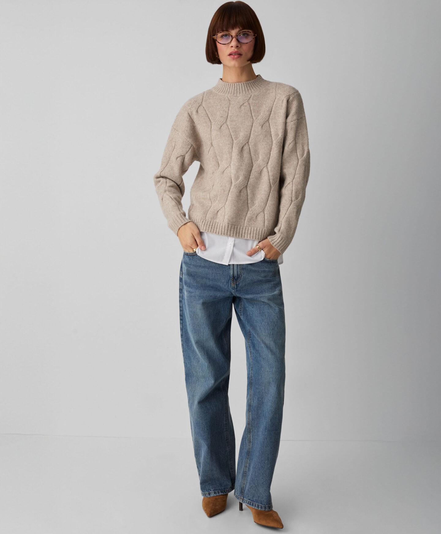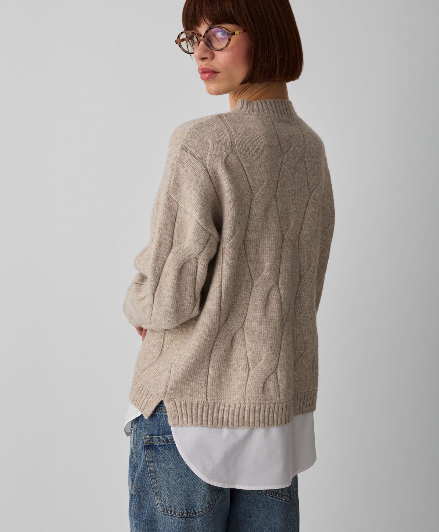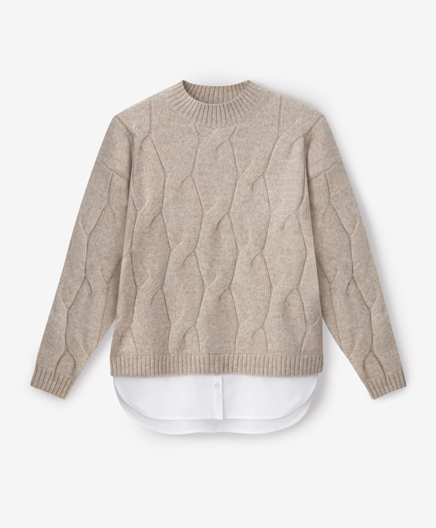 Dámský béžový pulovr s košilí je pro ženy, které sledují trendy. Pletený vzor je ztělesněním podzimní atmosféry a v kombinaci s bílou košilí je vynikající volbou na mnoho příležitostí. Můžete si ho obléct do kanceláře, na setkání s přítelem nebo na podzimní rande. Na výběr ve čtyřech barvách.
