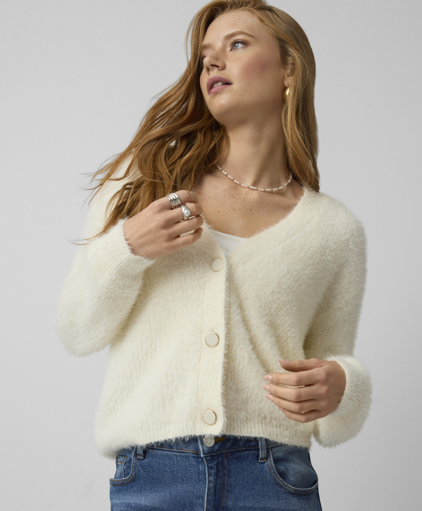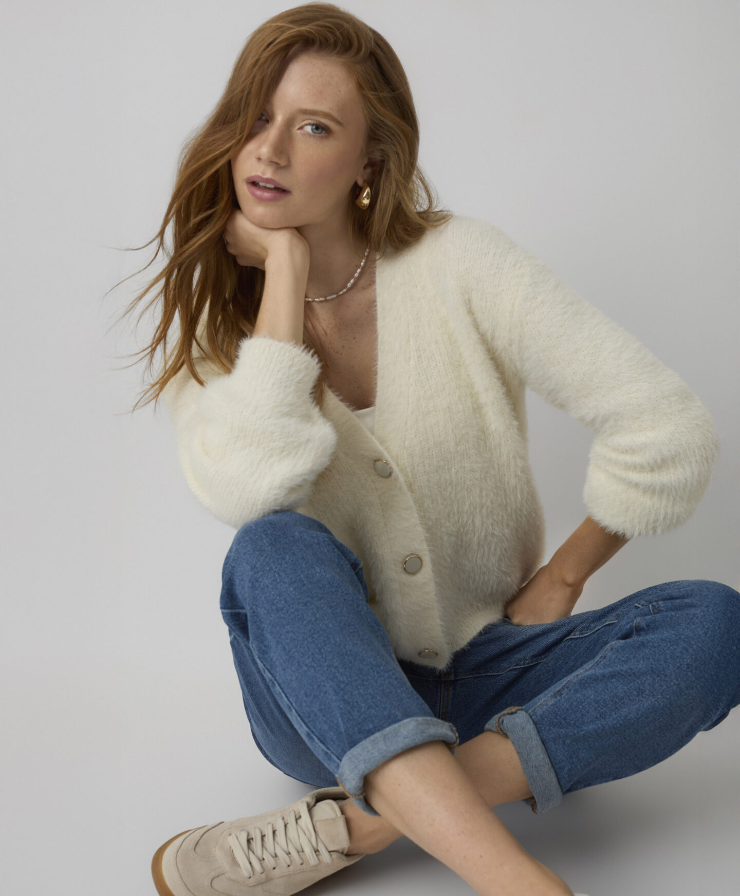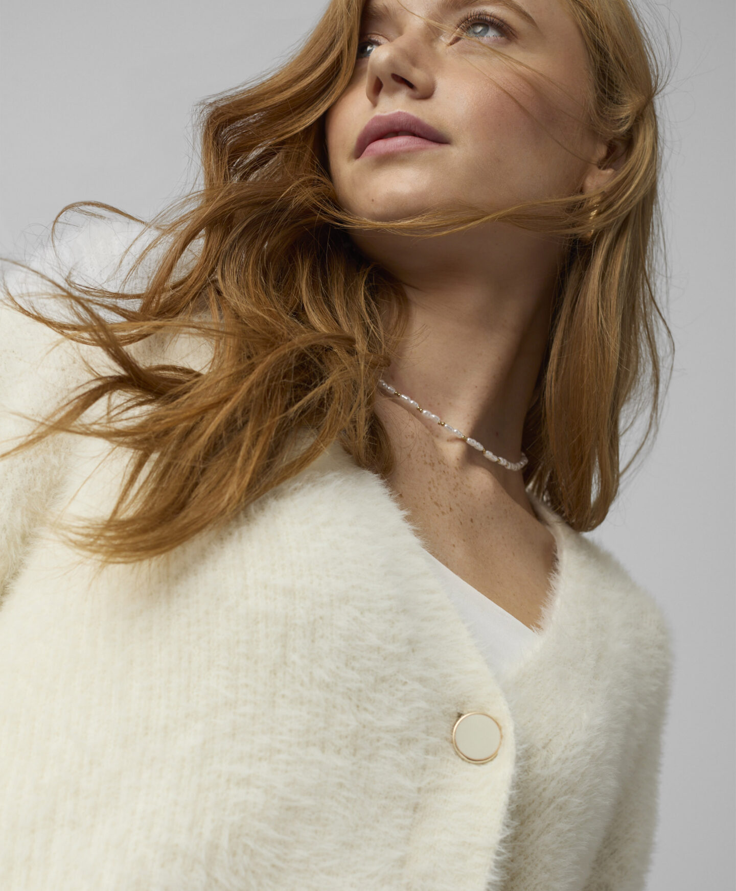 Dámský bílý kardigan je perfektní volbou na chladnější dny. Ozdobné knoflíčky budou zajímavým prvkem každého outfitu. Skvělé do práce i na večerní výlety. Díky univerzálnímu designu se perfektně hodí k různým prvkům šatníku.