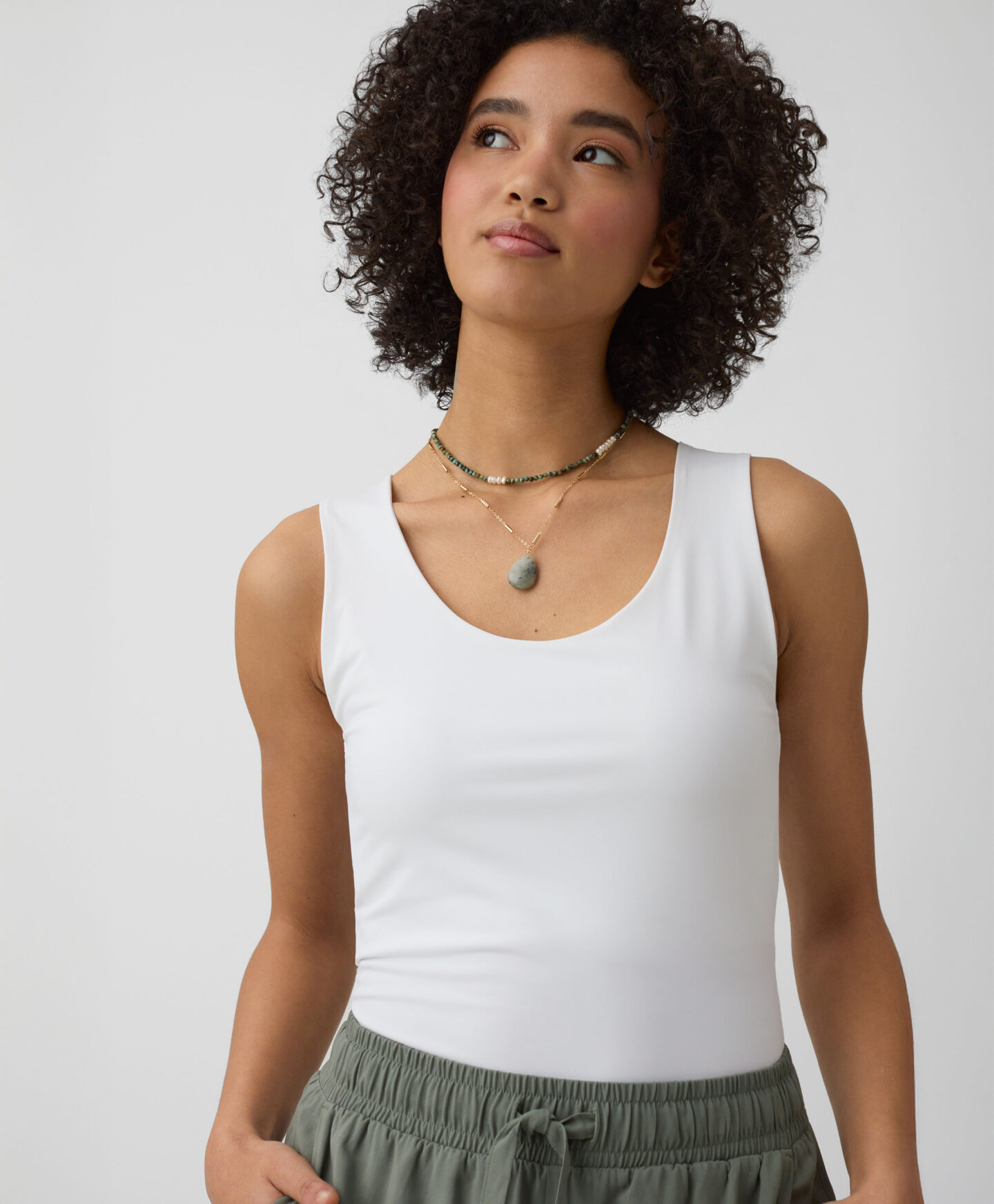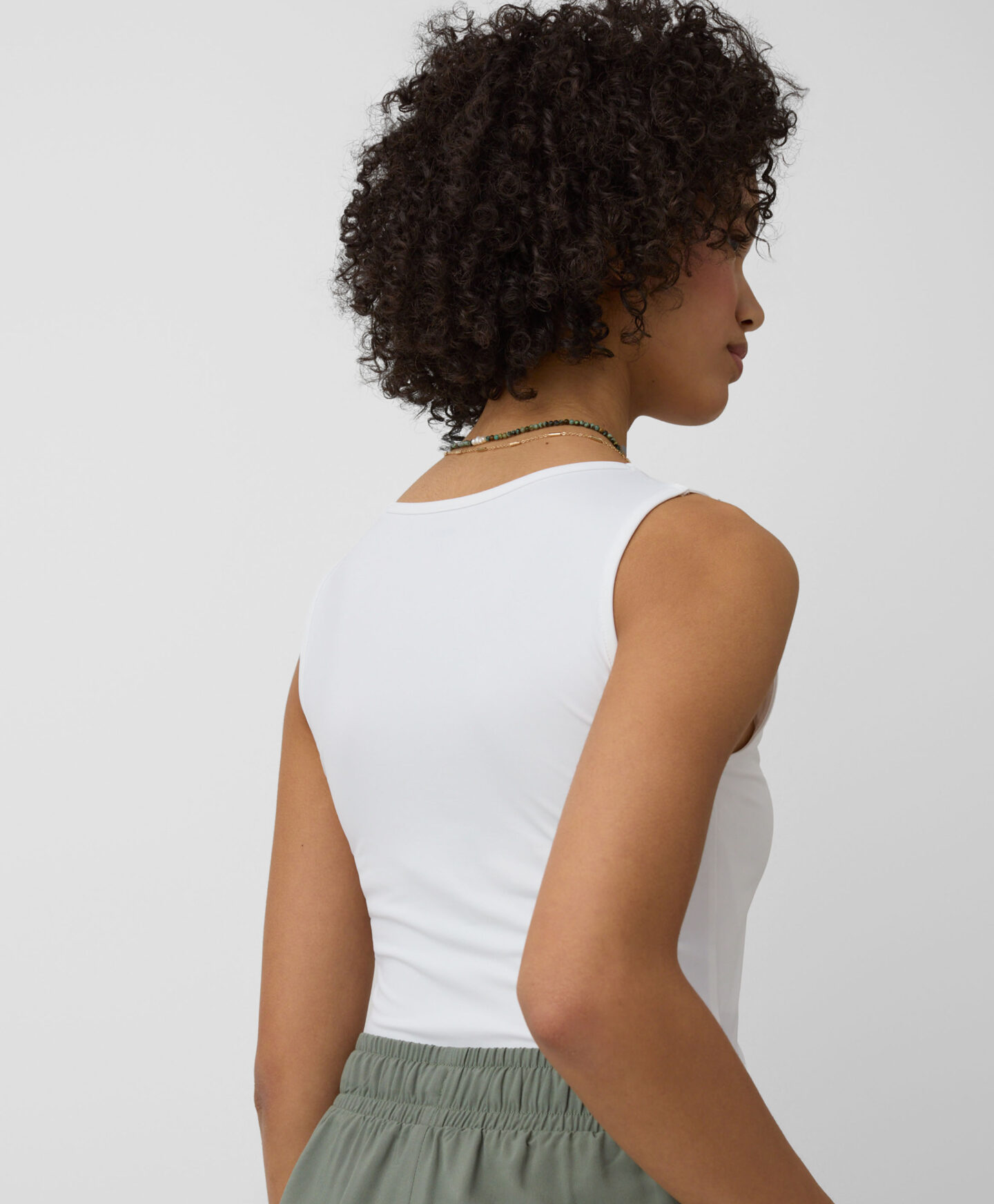 Tento dámský bílý top je neuvěřitelně všestranný. Hodí se k džínám, chino kalhotám, šortkám i teplákům. Můžete jej nosit pod bundou nebo mikinou. Jemná textura a jednobarevnost dělají z tohoto topu základ pro každý úspěšný outfit. Na výběr ve třech barevných variantách.