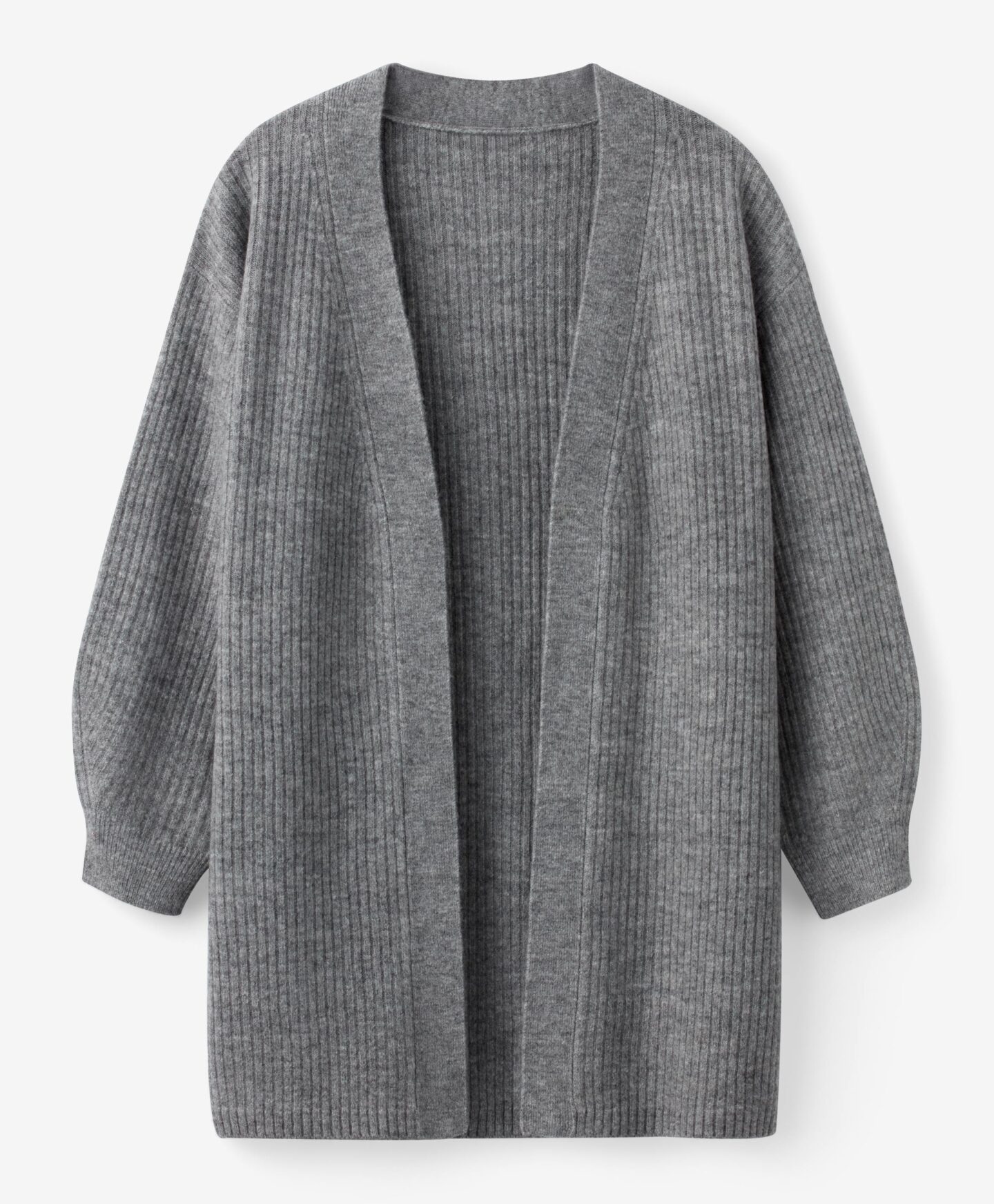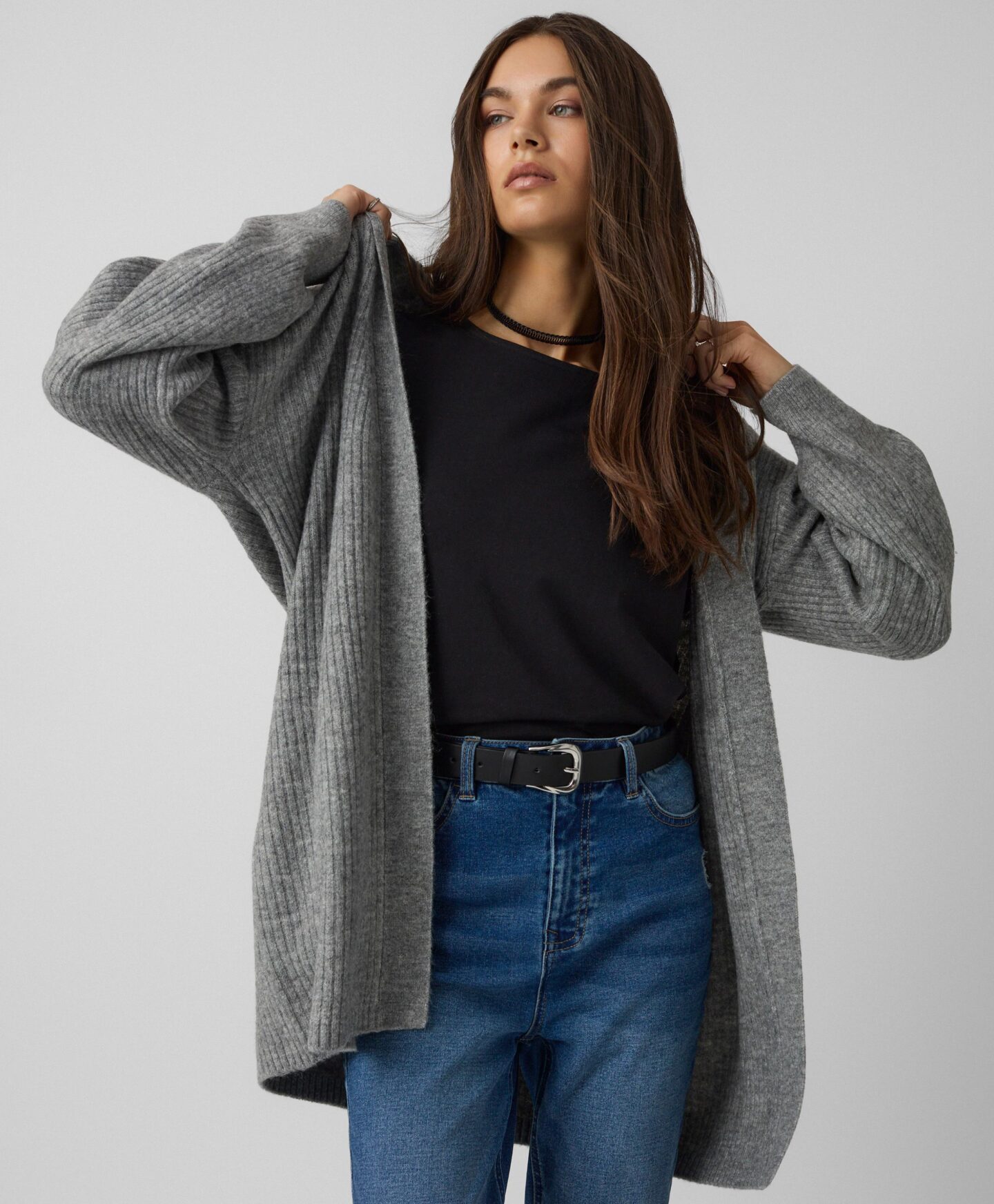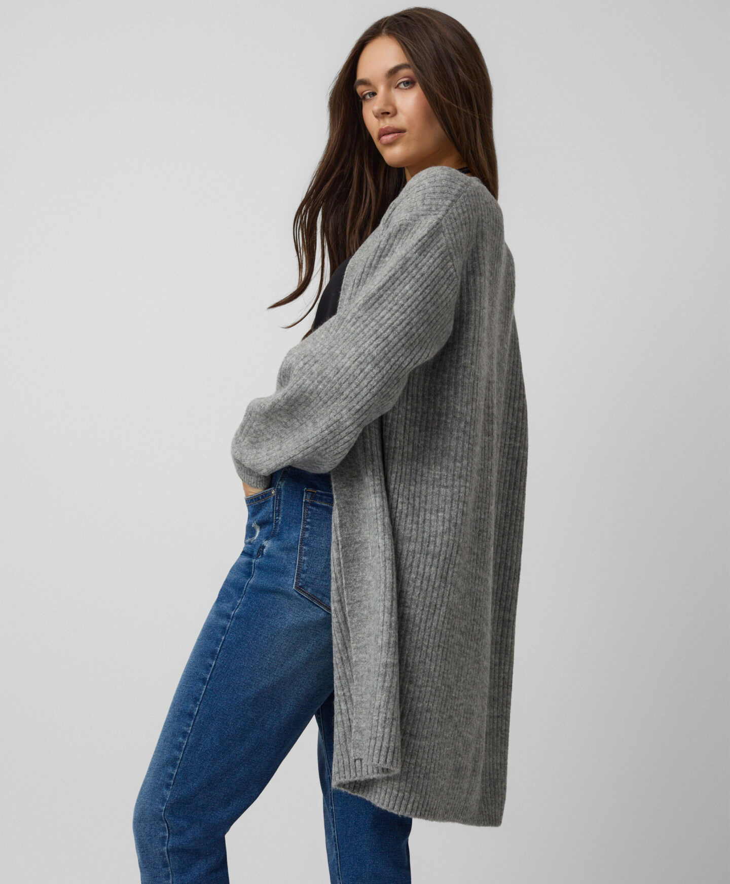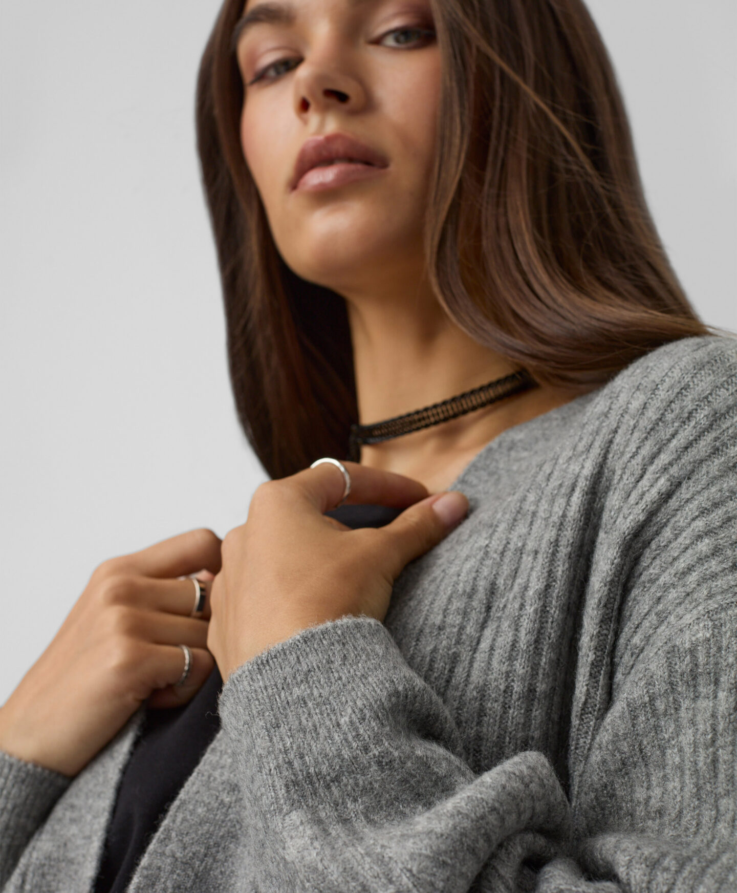 Dámský dlouhý šedý kardigan je ideální na každou příležitost. Poskytuje teplo a elegantní vzhled v chladnějších dnech a krásně se hodí k různým prvkům šatníku, od šatů až po kalhoty. Volný střih kardiganu je vhodný pro každý typ postavy a zajišťuje pohodlí a svobodu pohybu.