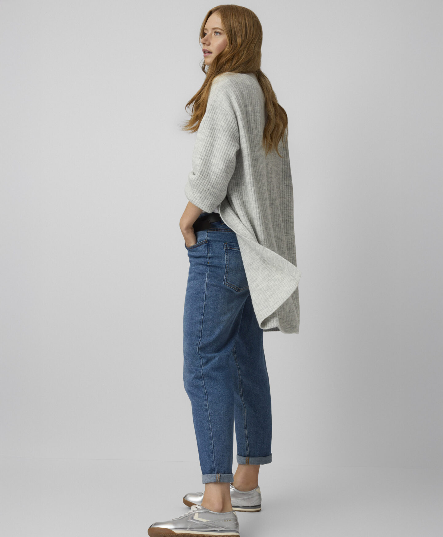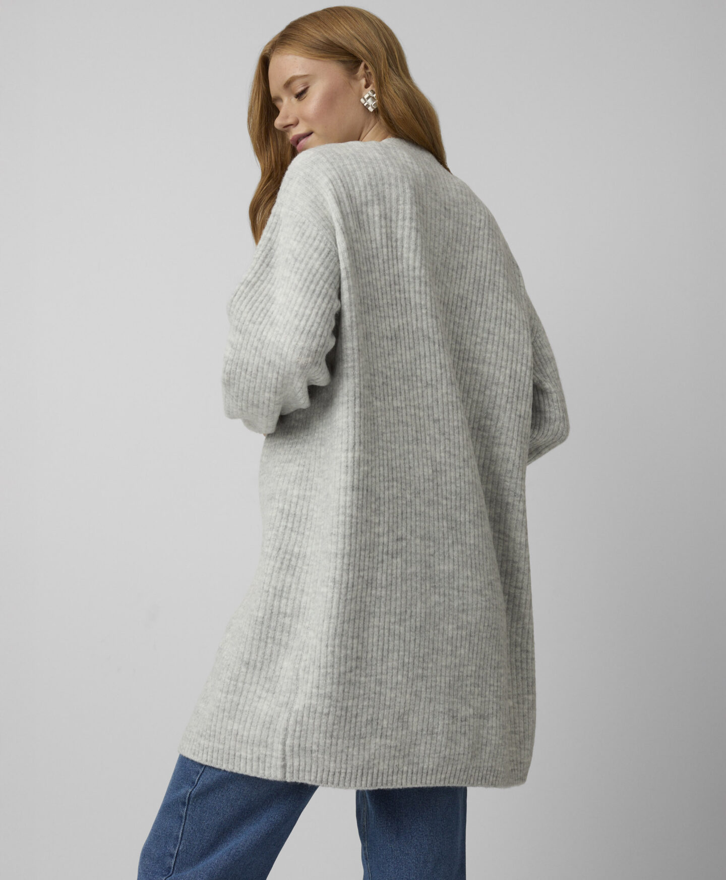 Dámský dlouhý šedý kardigan je ideální na každou příležitost. Poskytuje teplo a elegantní vzhled v chladnějších dnech a krásně se hodí k různým prvkům šatníku, od šatů až po kalhoty. Volný střih kardiganu je vhodný pro každý typ postavy a zajišťuje pohodlí a svobodu pohybu.