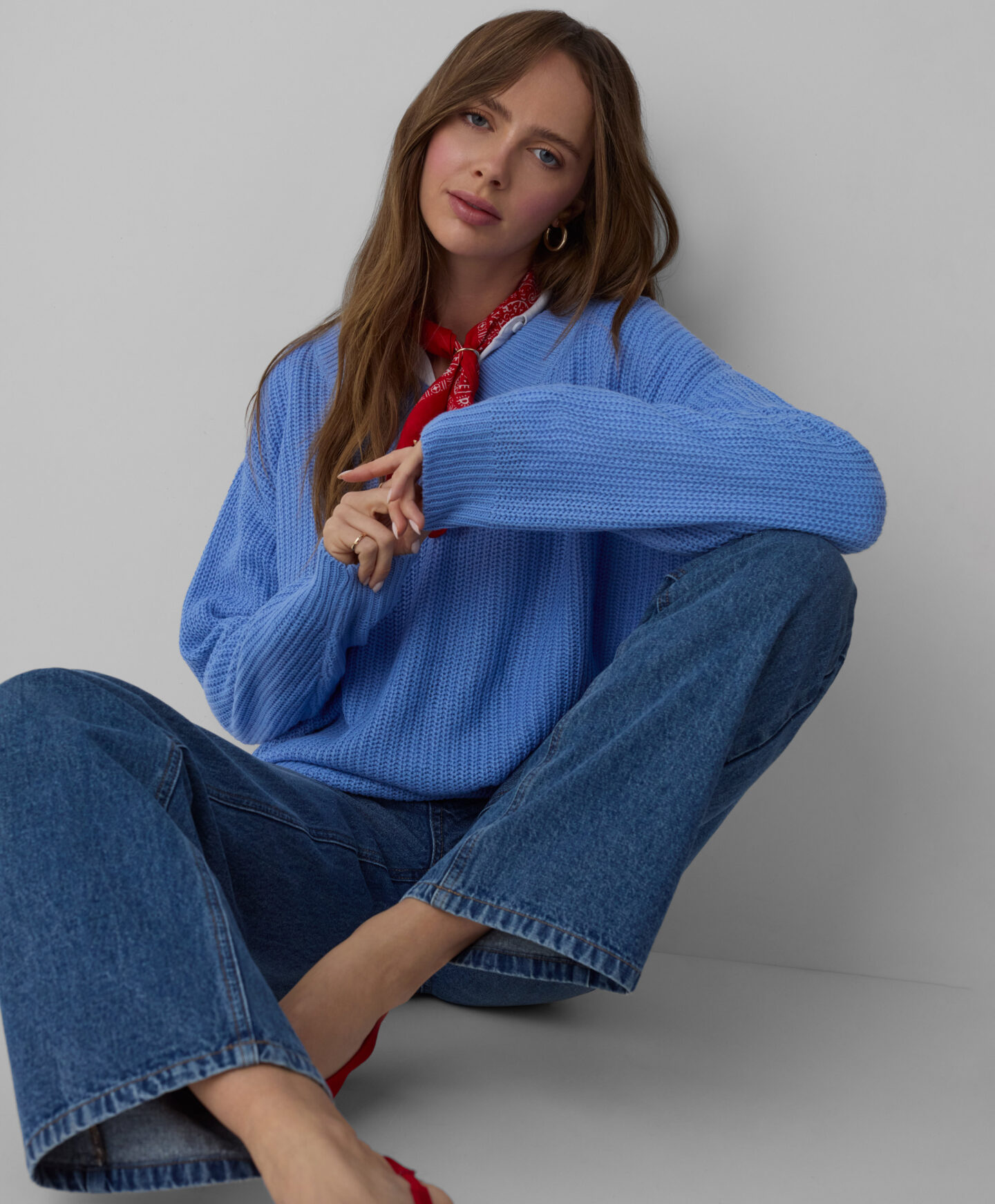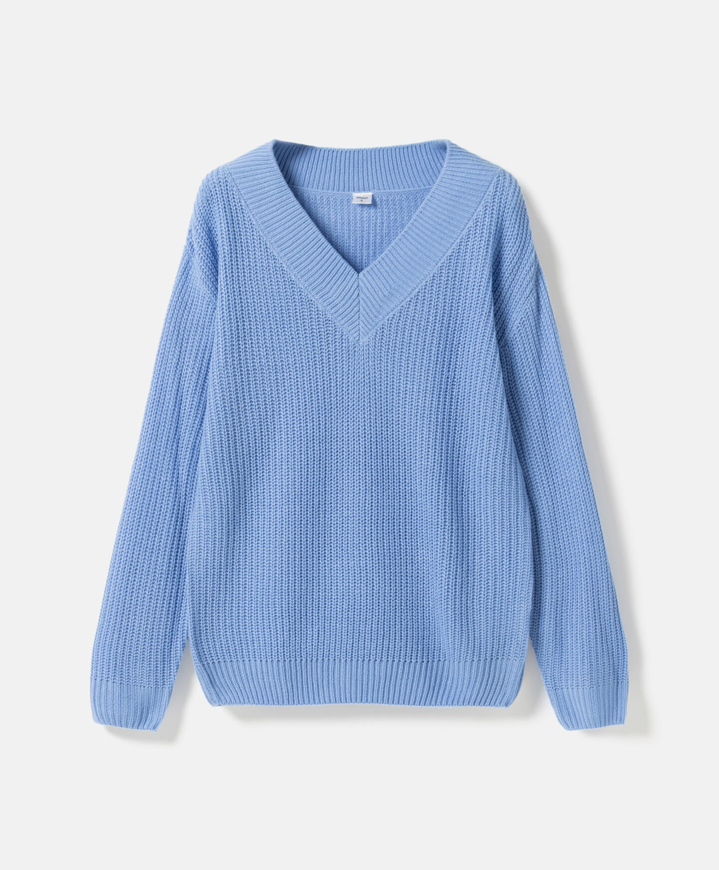 Dámský modrý pulovr s výstřihem do V je ideální na každodenní nošení. Je to vynikající volba při nošení přes tričko nebo elegantní košili. Přední střih zvýrazňuje výstřih a zeštíhluje krk, zatímco úplet dodává outfitu styl. Pulovr je hřejivý, měkký a velmi ženský. V nabídce jsou na výběr dva vzory.