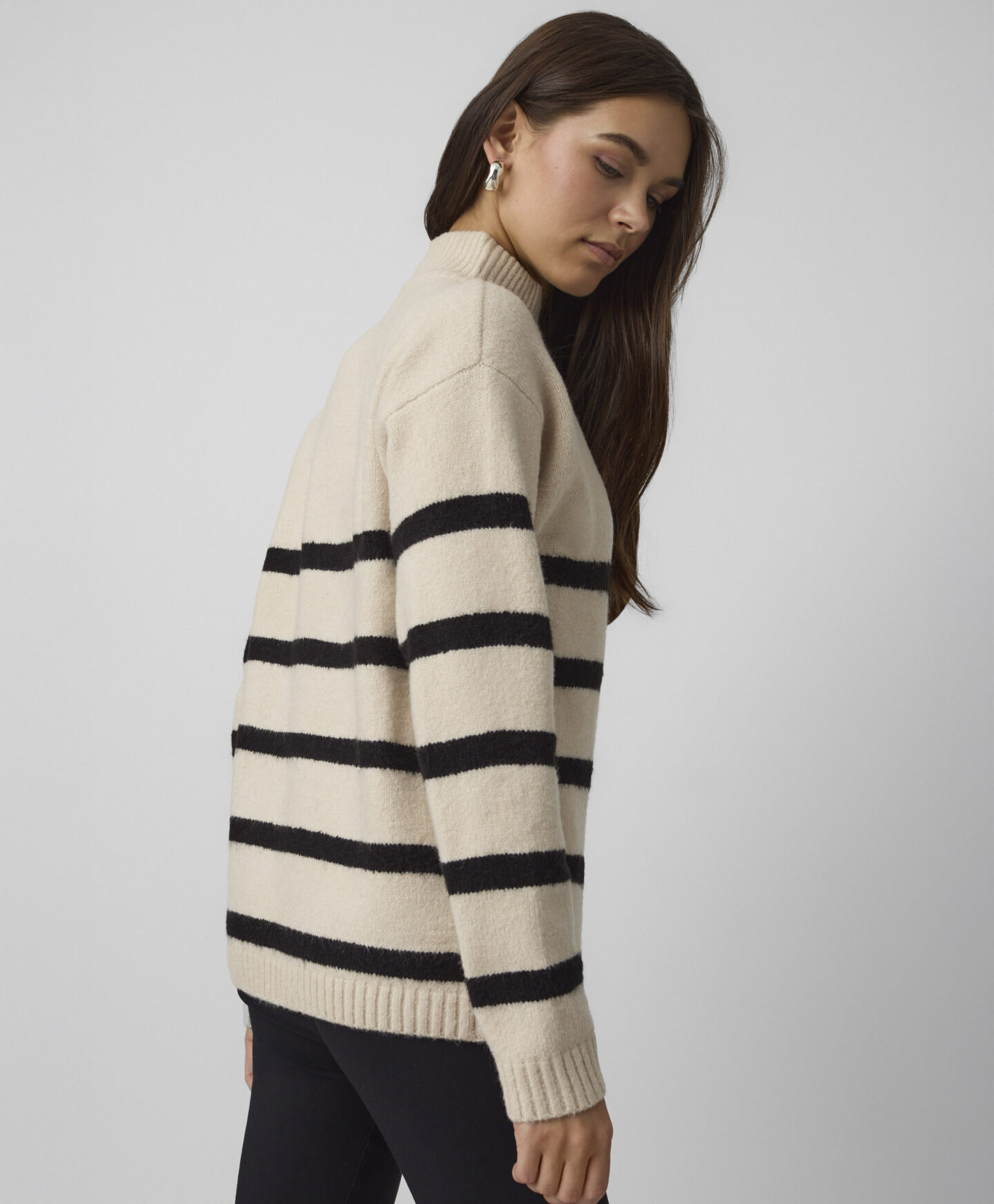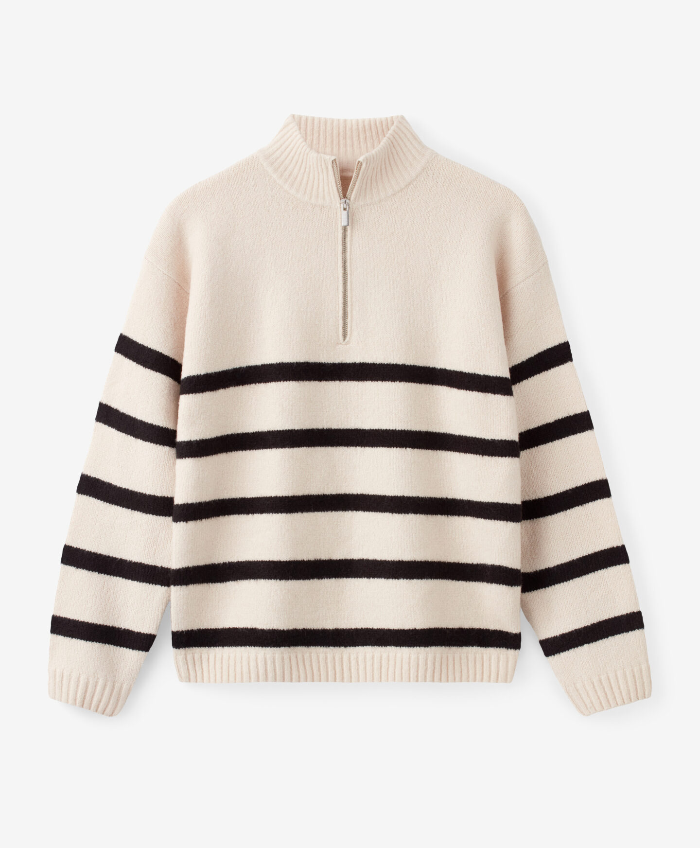 Dámský pruhovaný pulovr se zapínáním na zip u krku je perfektní volbou pro ženy, které oceňují klasický styl s moderním nádechem. Je hřejivý a měkký na dotek – ideální na první podzimní dny. Nadčasový pruhovaný vzor dodá eleganci každému outfitu a nikdy nevyjde z módy.