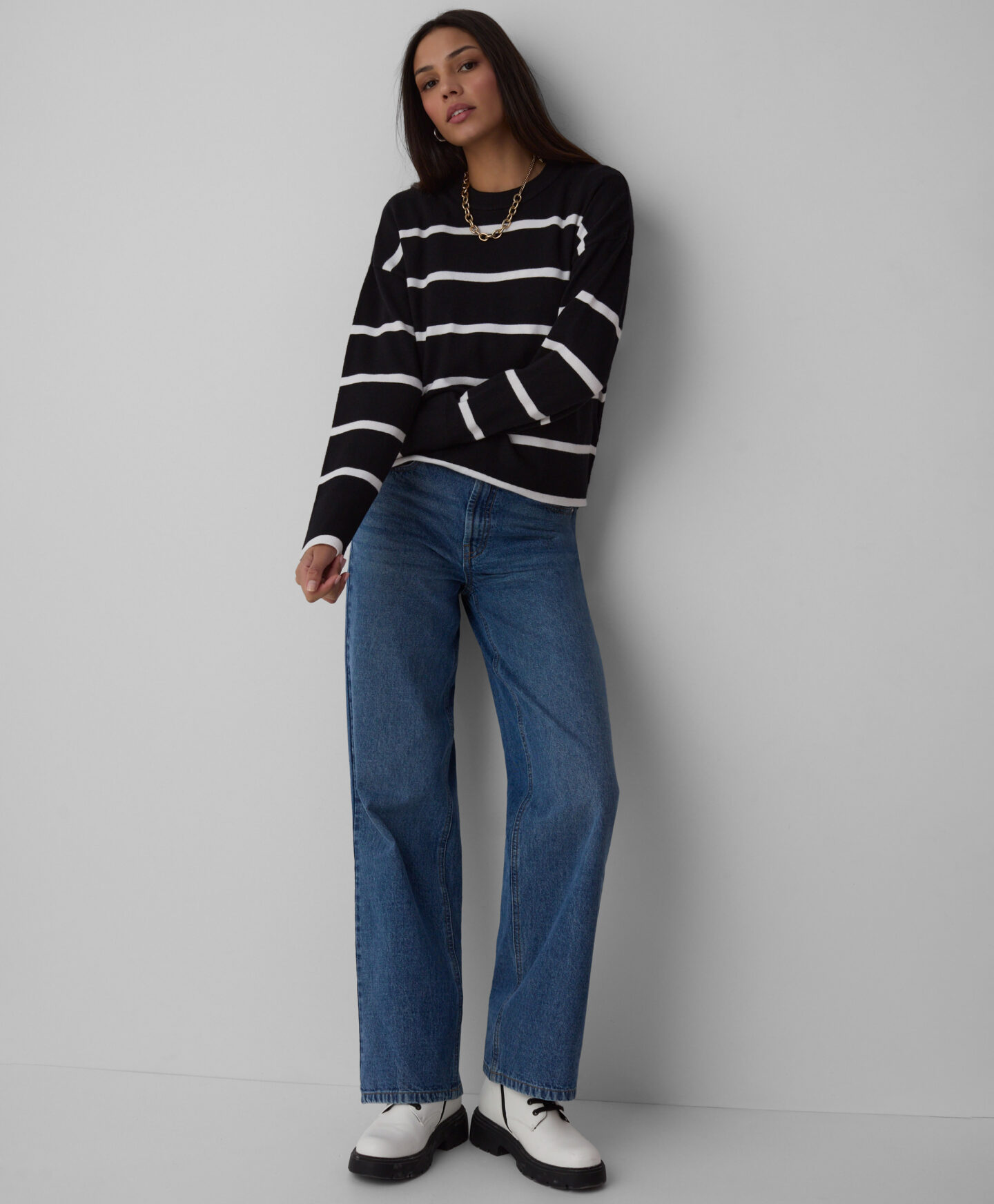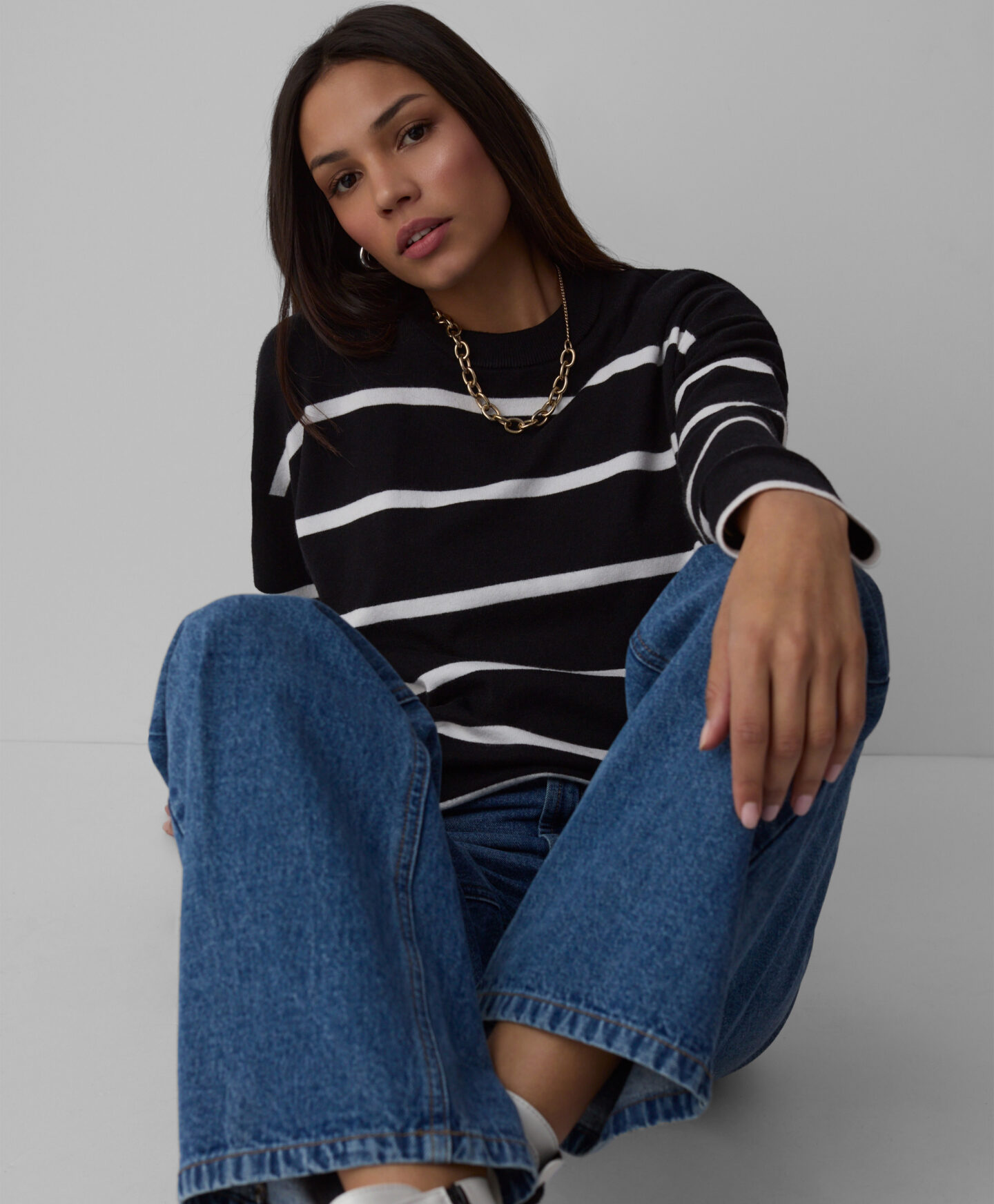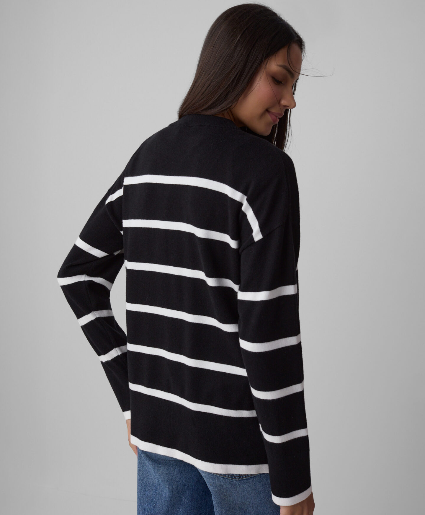 Dámský pruhovaný pulovr s přídavkem viskózy vypadá skvěle v kombinaci s džínami. Je lehký, příjemný na dotek a ideální na každodenní nošení. S elegantními doplňky bude vynikající volbou do kanceláře, pro výlety s přáteli nebo na formálnější příležitosti. Nadčasový pruhovaný vzor dokonale doplní váš šatník.