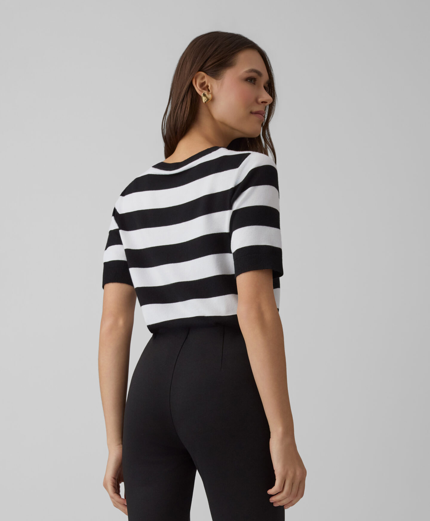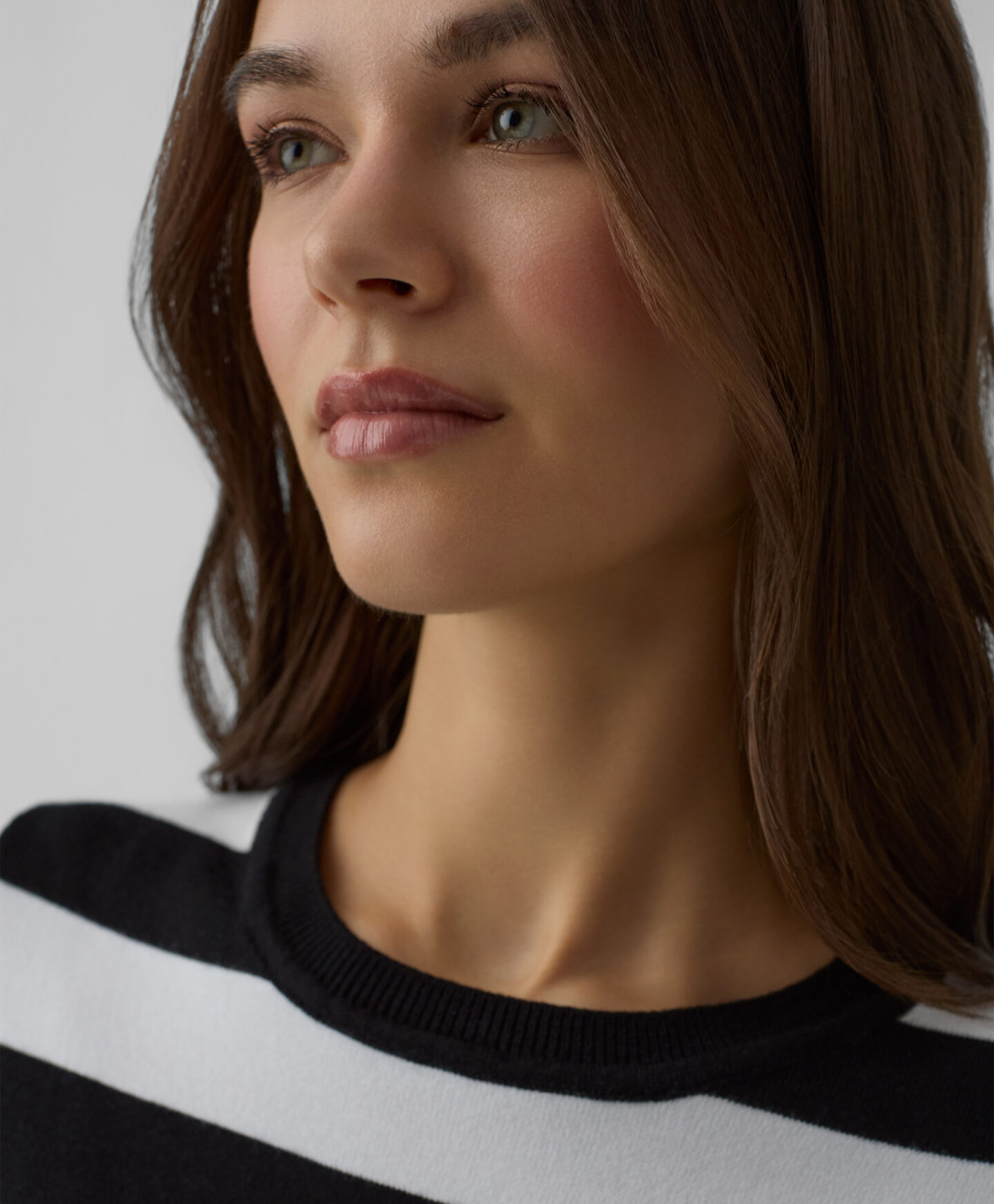 Dámský pruhovaný pulovr s přídavkem viskózy je mimořádně stylový kousek šatníku. Viskózový materiál je měkký a prodyšný, díky čemuž se pulovr pohodlně nosí a krásně zvýrazní postavu. Pruhy mu dodávají moderní charakter a perfektně se hodí k džínám nebo sukním.