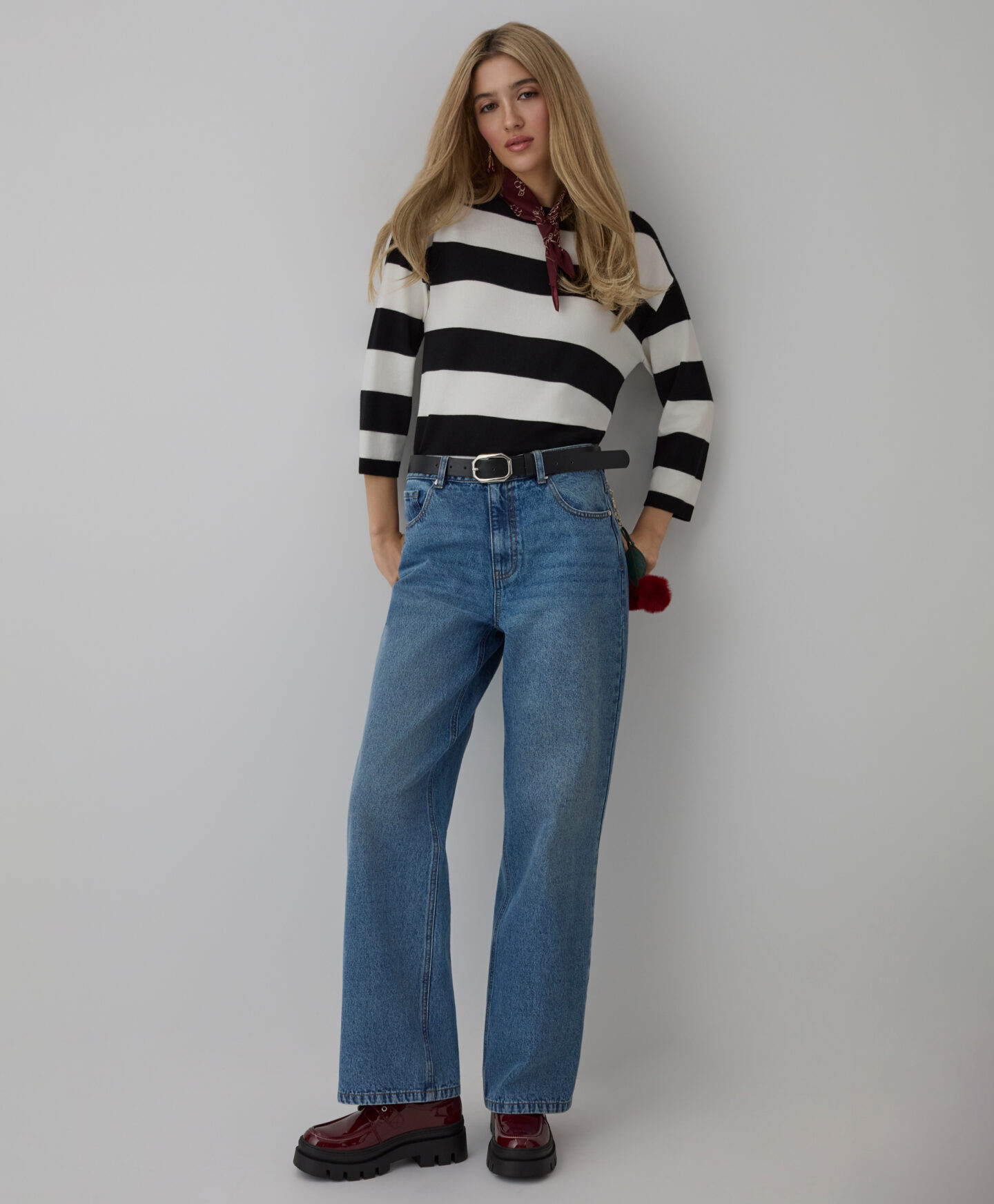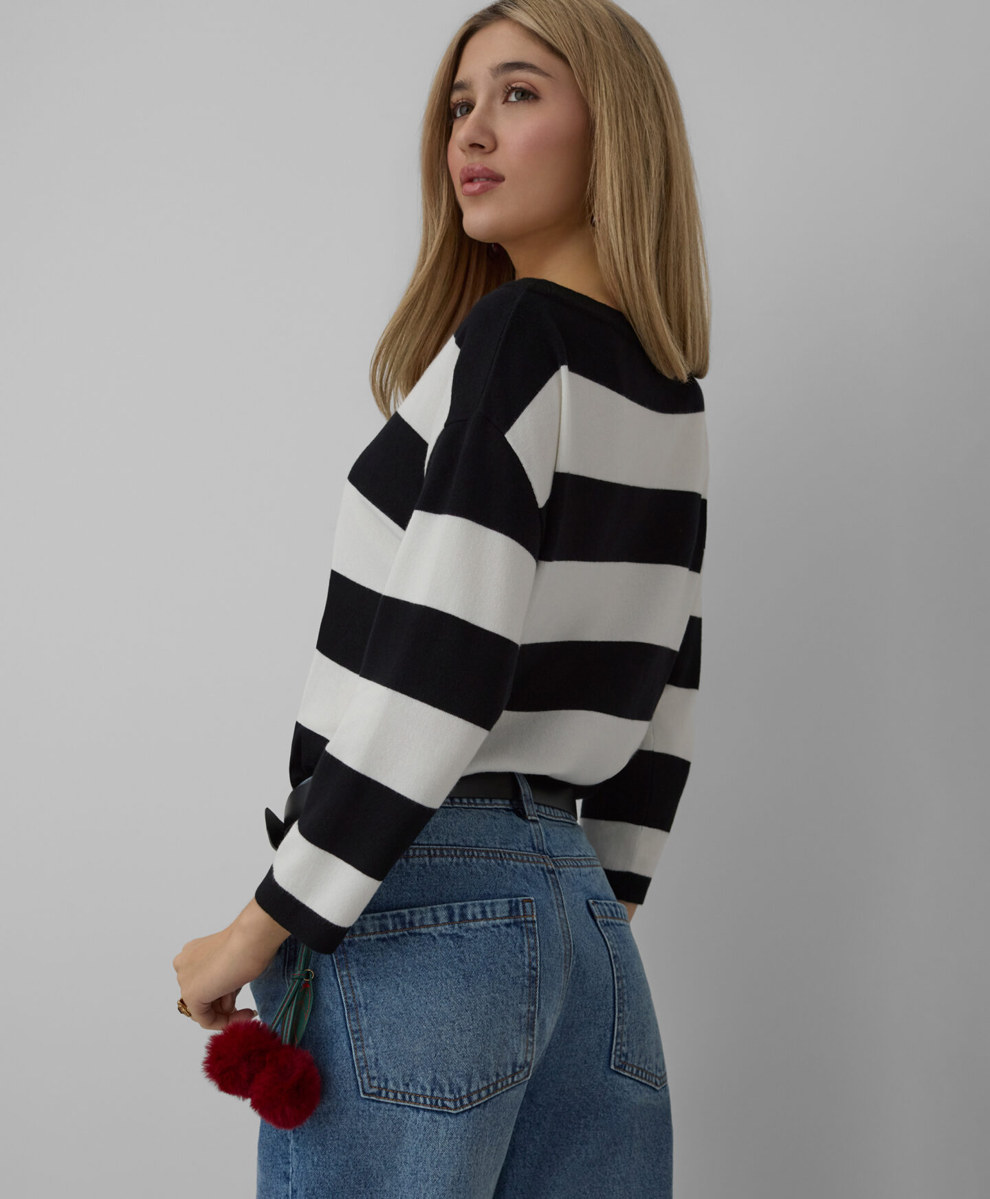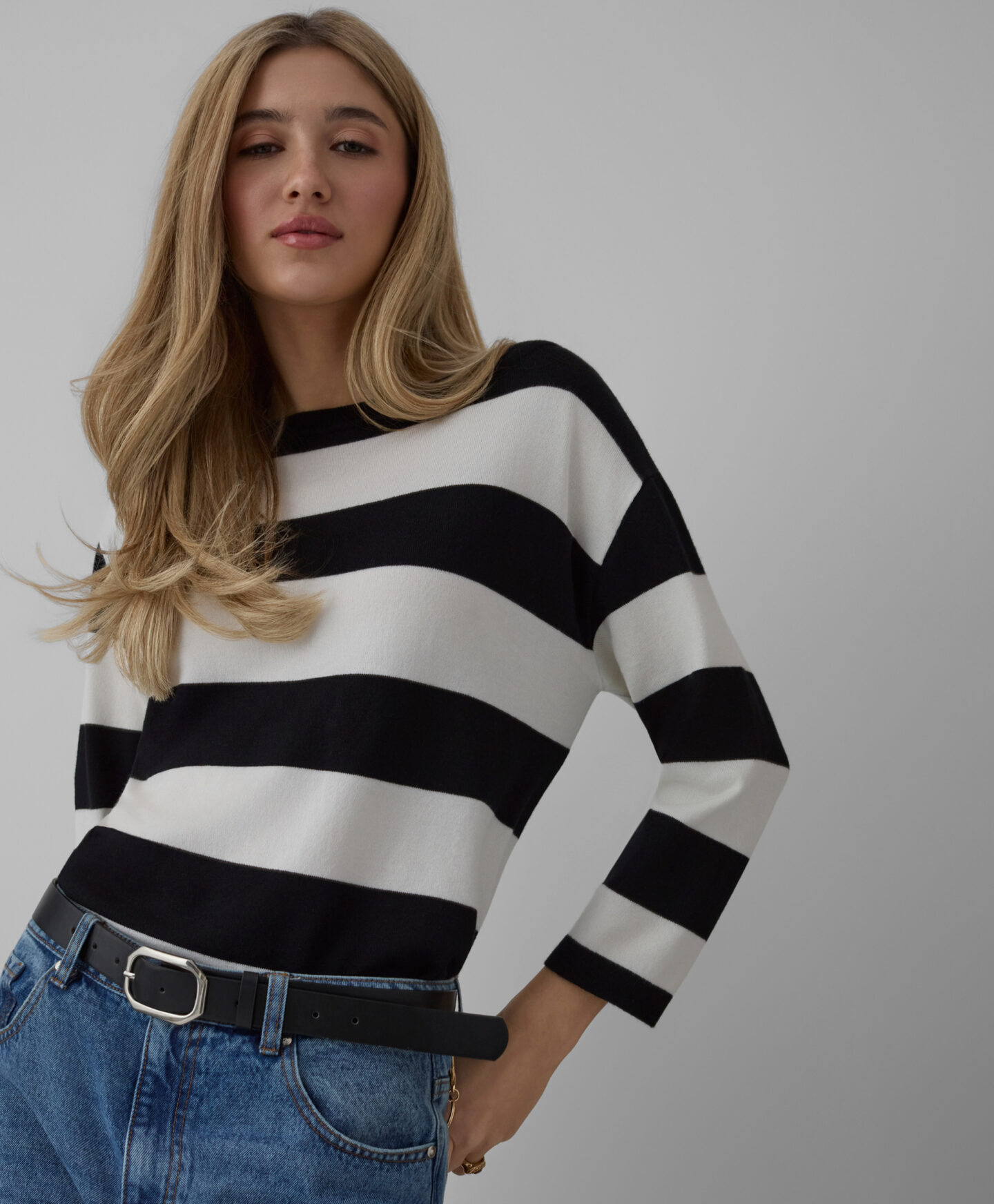Dámský pruhovaný pulovr vyniká svým jedinečným střihem. Přídavek viskózy činí pulovr měkkým a prodyšným, což poskytuje pohodlí během celého dne. Kimonový střih mu dodává jedinečný charakter a zajišťuje svobodu pohybu.