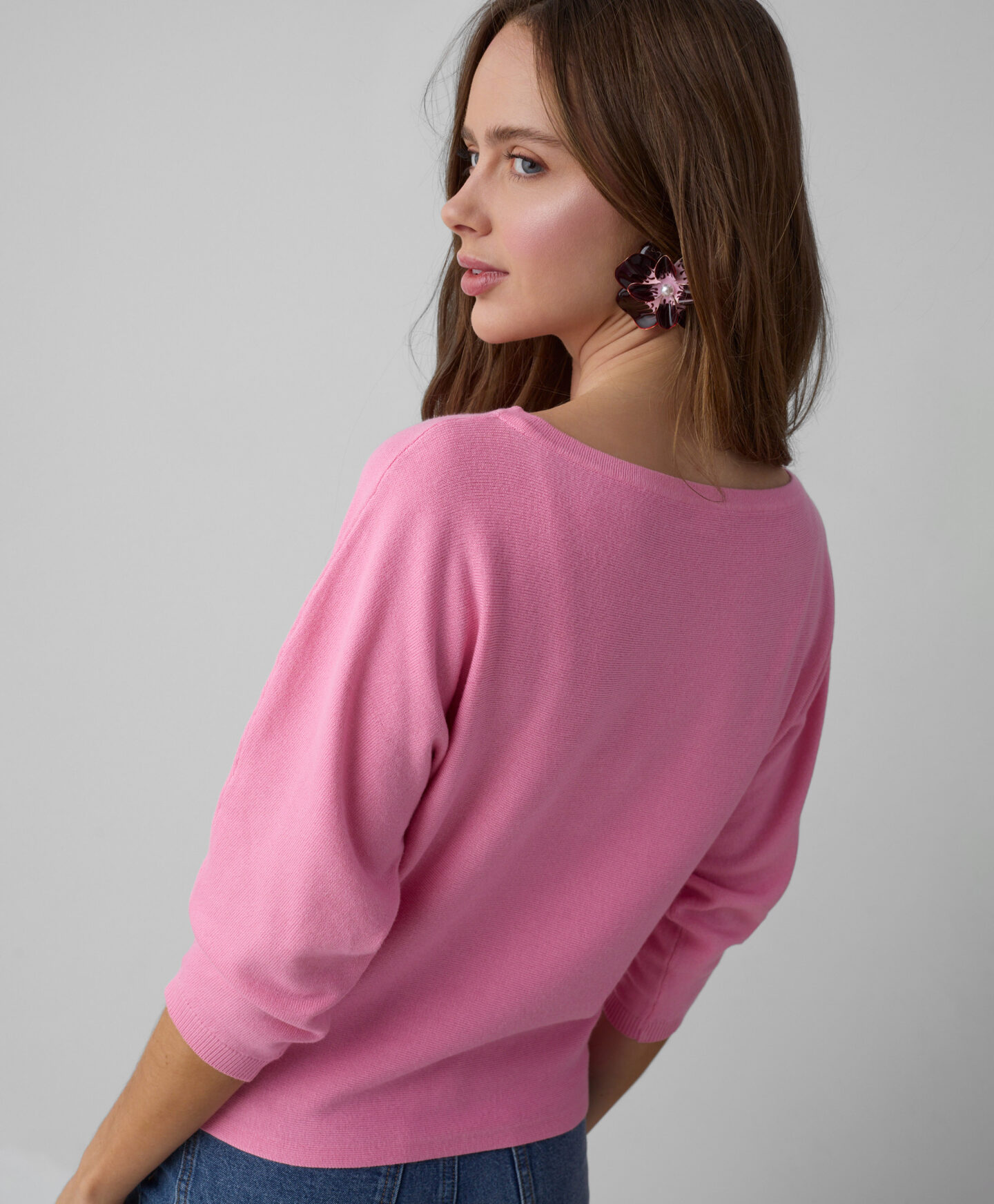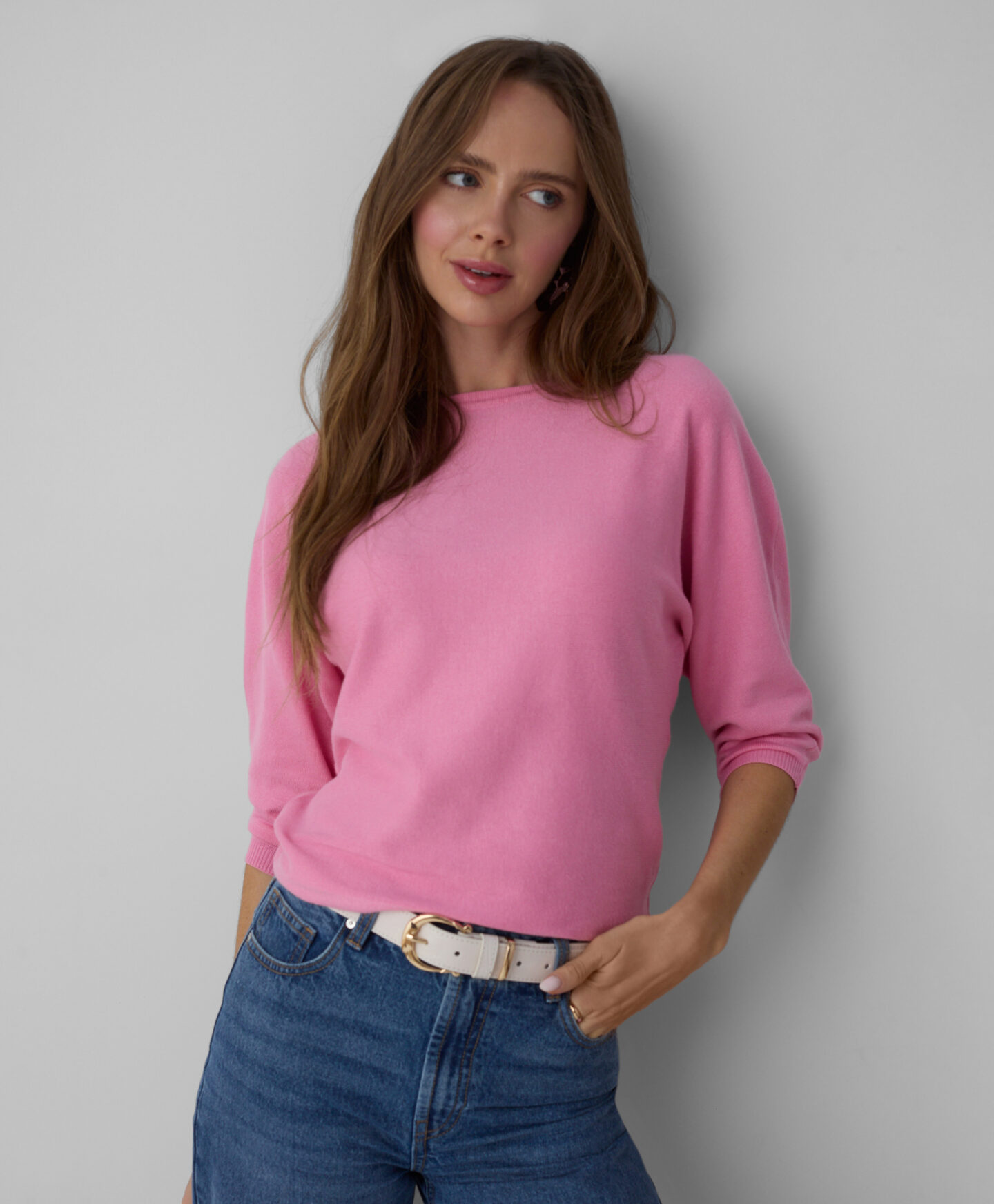 Dámský růžový pulovr s přídavkem viskózy je příjemný na dotek, hřejivý a mimořádně všestranný. Ideální na různé příležitosti. Poskytuje svobodu pohybu a dodá lehkost každému outfitu. Ideální do kanceláře, na kávu s kamarádkou nebo na romantické rande. V nabídce jsou na výběr dva vzory.