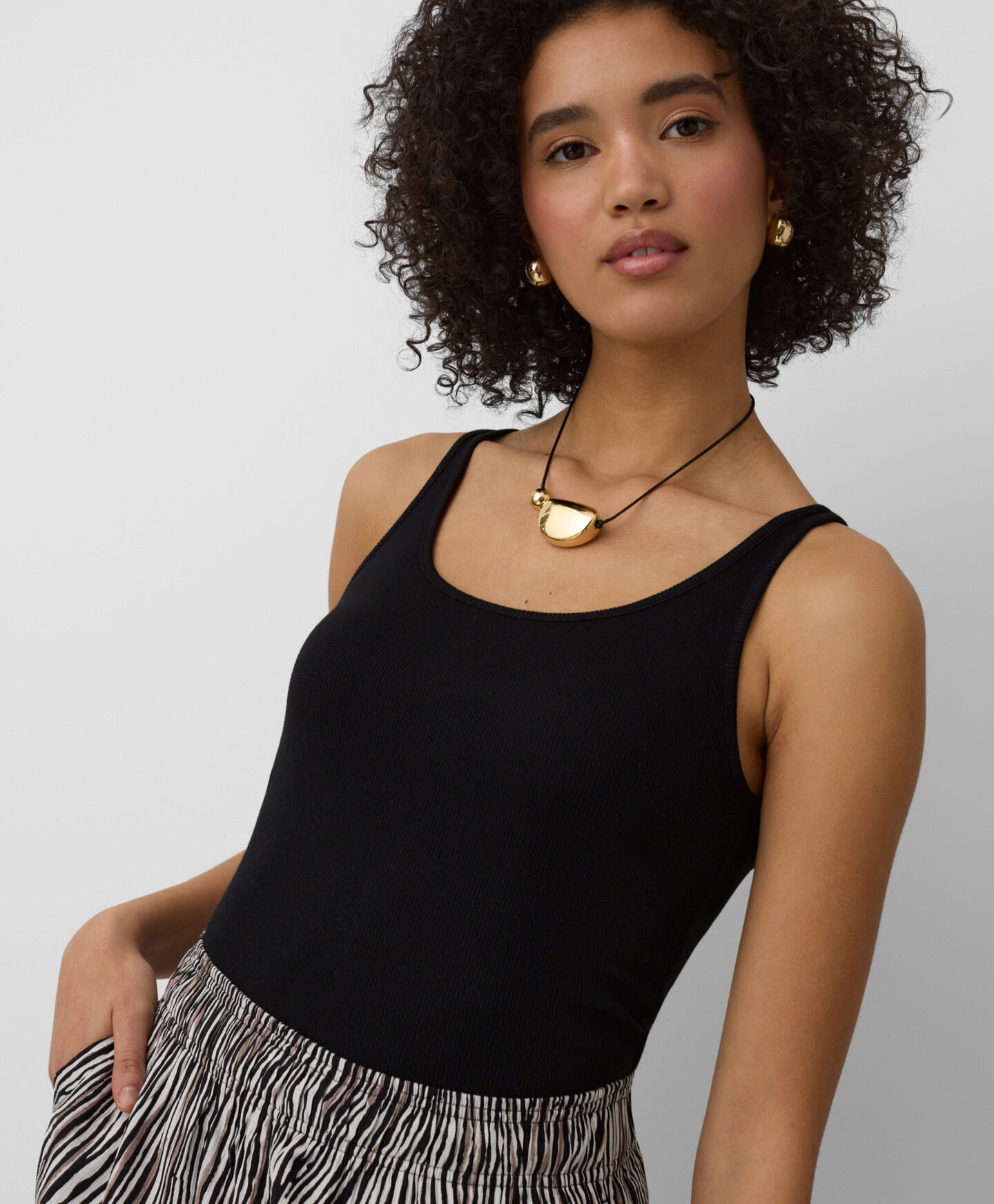 Toto dvojbalení dámských žebrovaných topů dokonale doplní váš šatník. Kombinace dvou nadčasových barev – černé a bílé – činí z této soupravy nezbytnost ve vašem šatníku. Pruhovaná elastická látka krásně splývá a umožňuje pokožce dýchat. Každý top vypadá skvěle v kombinaci s vašimi oblíbenými džínami, šortkami nebo elegantnějšími chino kalhotami.