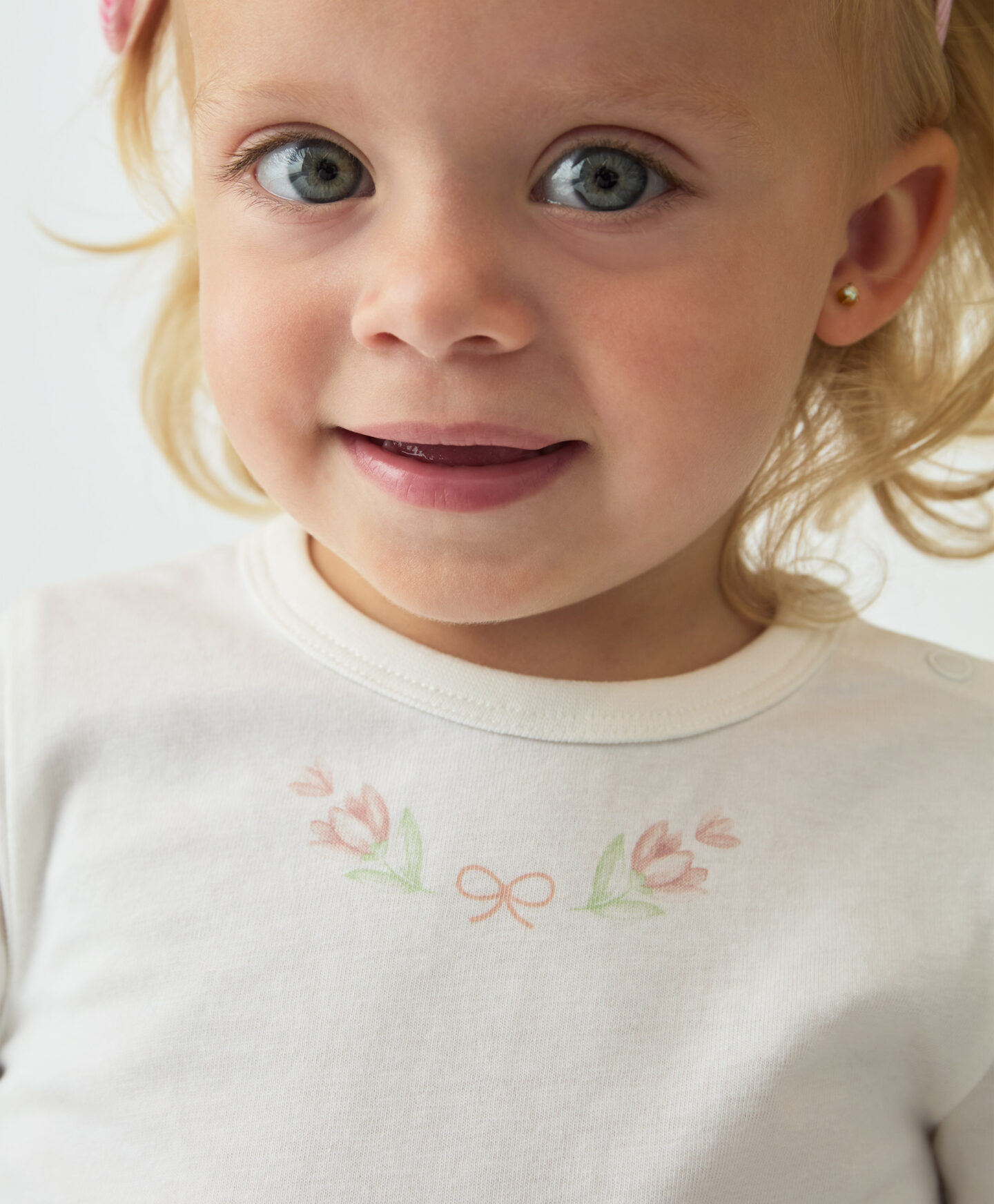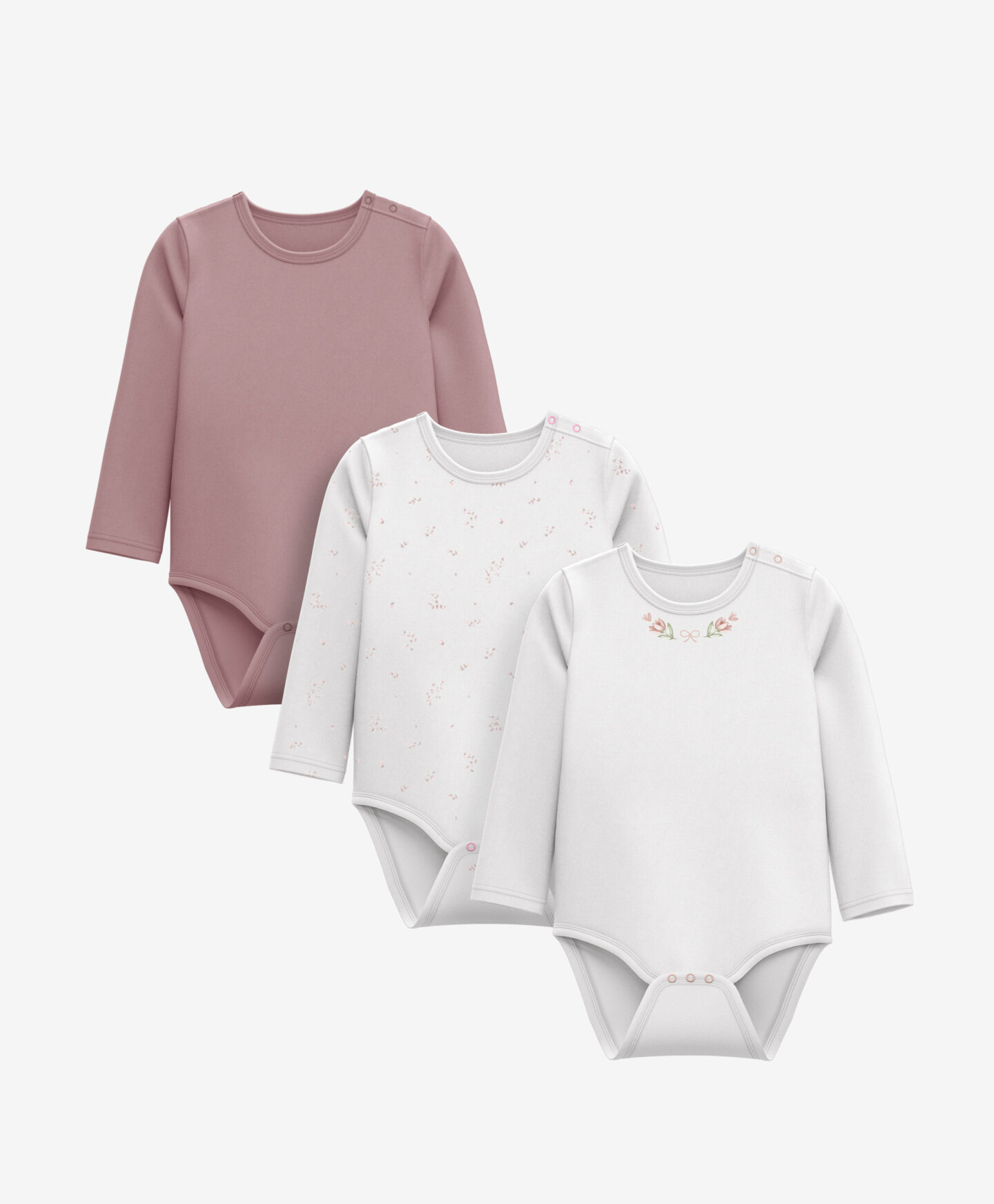 Dívčí body 3 ks ze 100 % bavlny se květinovým vzorem jsou jako stvořená pro malé milovnice přírody. Roztomilý potisk s kvítky vykouzlí úsměv na tváři každé dívky. Body jsou vyrobena z bavlny, díky čemuž jsou prodyšná, měkká na dotek a vzdušná. Praktické zapínání na patentky usnadní rychlou výměnu plenek a oblékání. K dispozici jsou i jiné vzory.