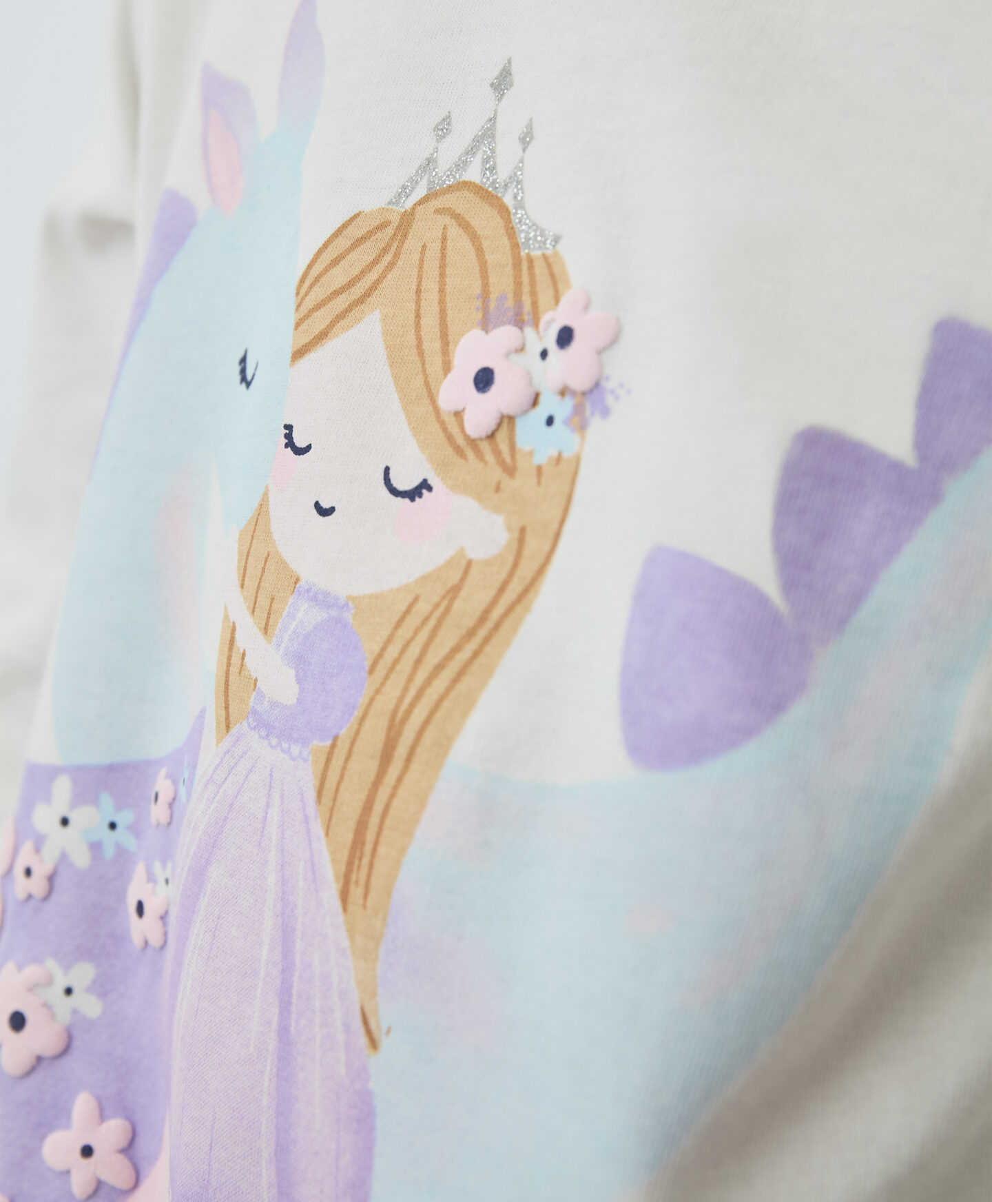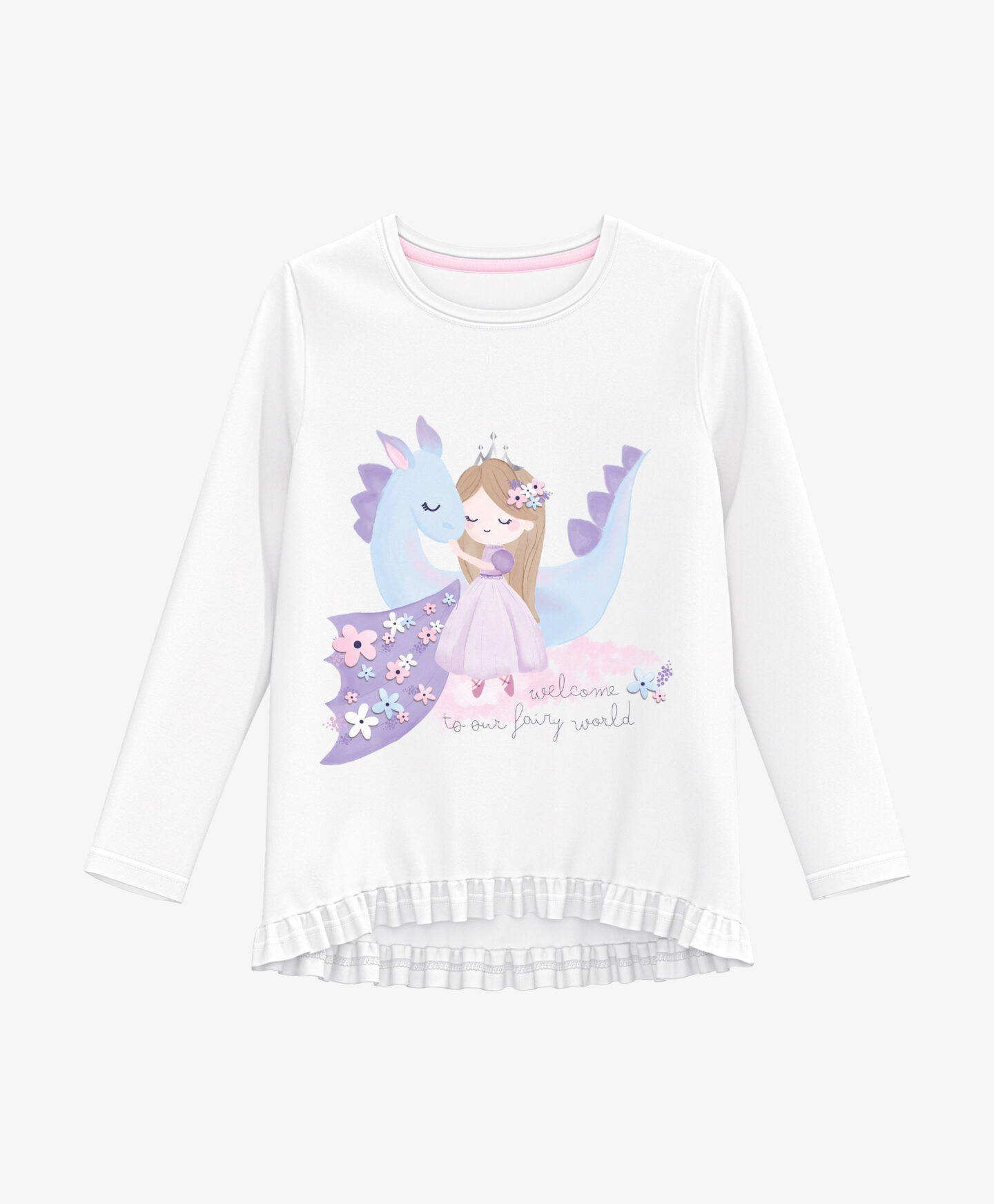 Dívčí halenka s volánky je vyrobená ze 100% měkké a prodyšné bavlny. Je lehká, příjemná na dotek a jemně obepíná dětskou pokožku, zatímco dlouhé rukávy poskytují teplo v prvních podzimních dnech. Halenka perfektně doplňuje zateplené legíny z kolekce.