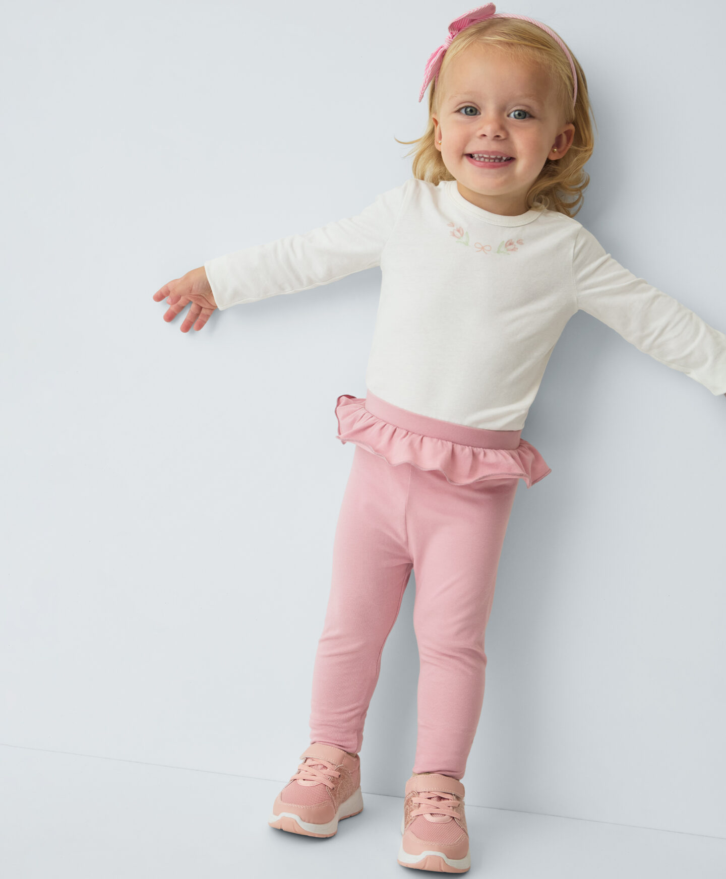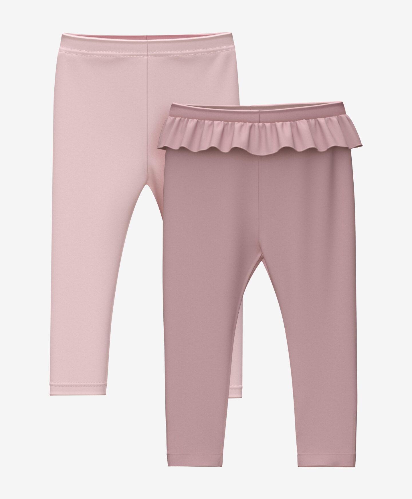 Dívčí legíny 2 ks ze 100% bavlny potěší fanynky módy. Legíny jsou vyrobeny z přírodních materiálů, jsou lehké, prodyšné a jemně obepínají pokožku. Perfektně se hodí k body, tričkům, halenkám, a dokonce i k šatům nebo sukním. Jeden pár je ozdoben půvabným volánkem. Souprava obsahuje legíny ve dvou barvách.