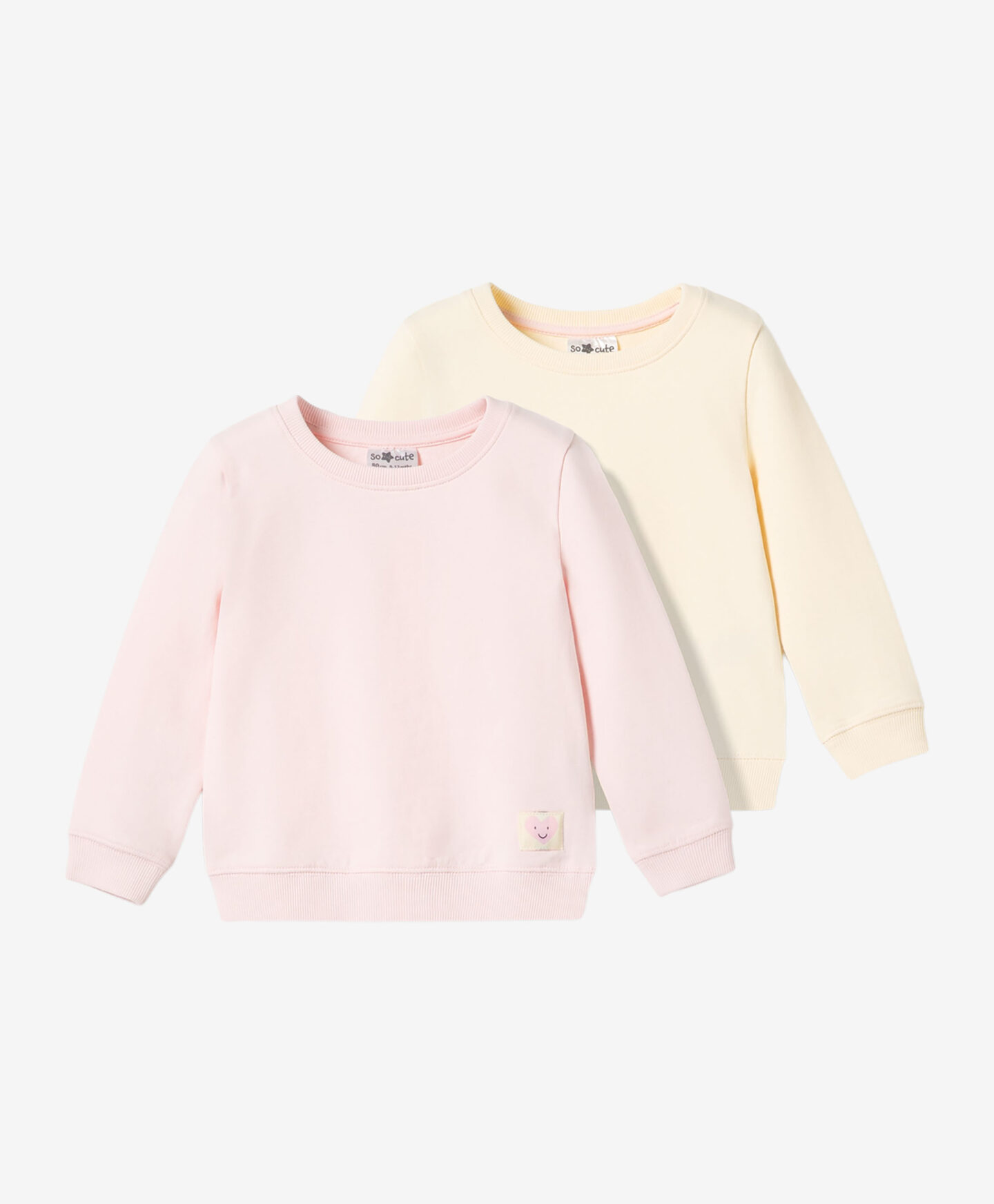 Dívčí mikina 2 ks ze 100% bavlny je vhodná pro citlivou pokožku od prvního dne. Mikiny jsou hřejivé, měkoučké na dotek a jemně obepínají jemnou pokožku vašeho miminka. Tlumená barevná paleta se perfektně hodí k jarnímu stylu – mikiny se hodí k legínám, džínám a teplákům.