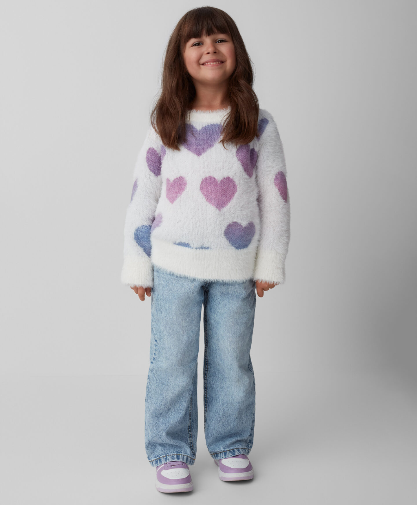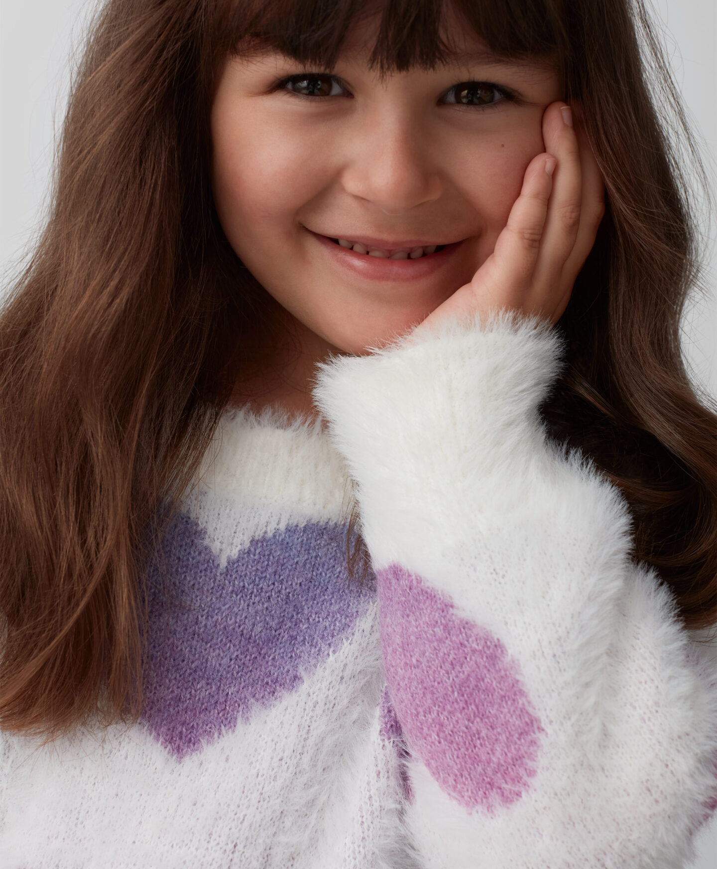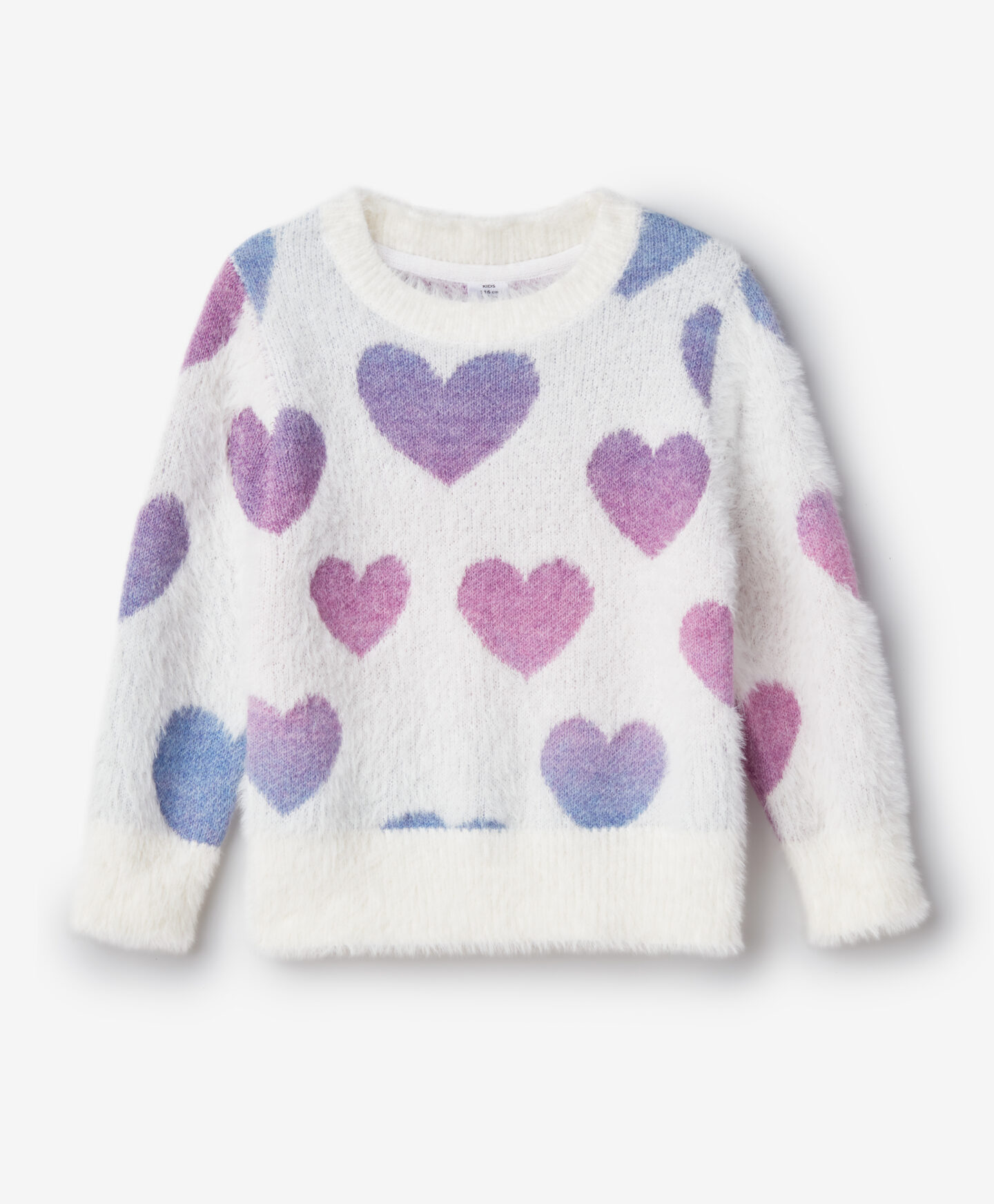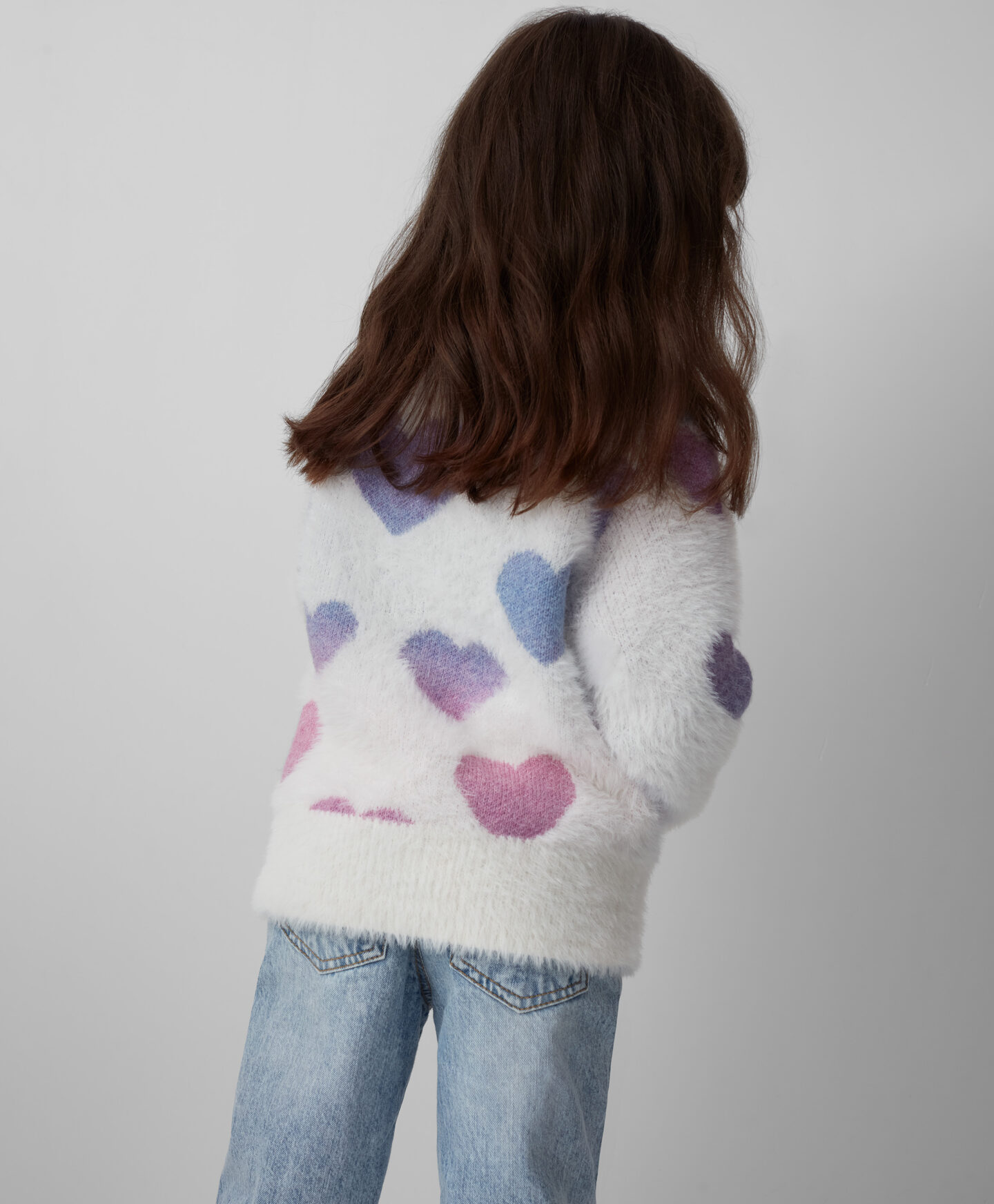 Dívčí pulovr se vzorem srdce je ideální pro malé milovnice pohodlí a tepla. Jeho půvabný design jej činí měkkým a příjemným na dotek. Ideální pro podzimní a zimní chladné počasí, je to perfektní volba pro předškoláky, do školy nebo na volný čas. Perfektně se hodí k džínám a legínám.