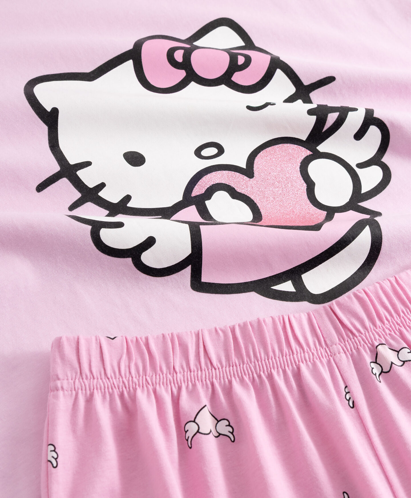 Dívčí pyžamo Hello Kitty ze 100% bavlny se skládá z trička s krátkým rukávem a kalhot. Volný střih nabízí pohodlí a svobodu pohybu a jedinečný design s oblíbenou postavičkou vykouzlí úsměv na tváři každého fanouška. Pyžamo je vhodné na zimu i léto. Prodyšný materiál jemně zahalí pokožku dítěte.