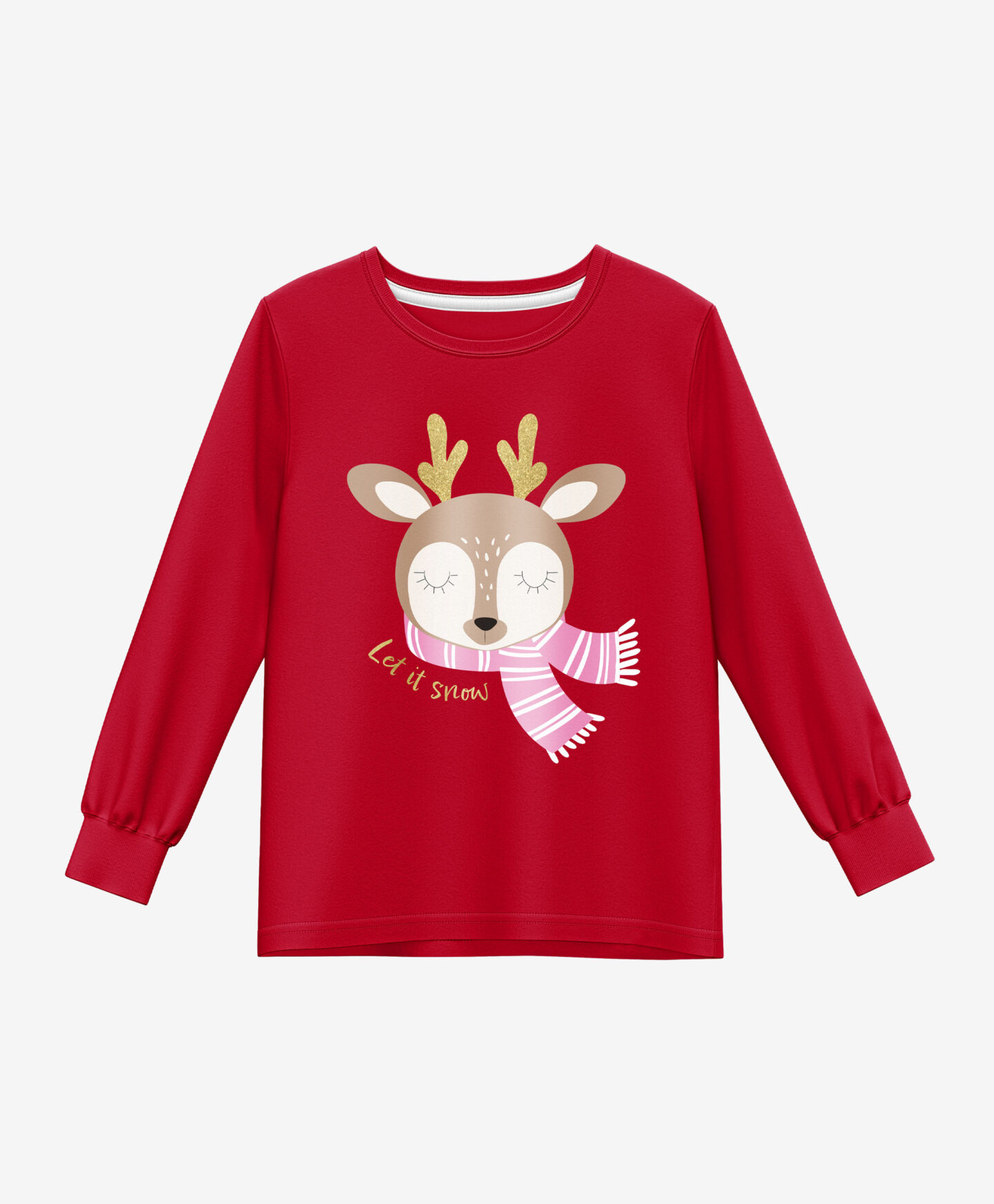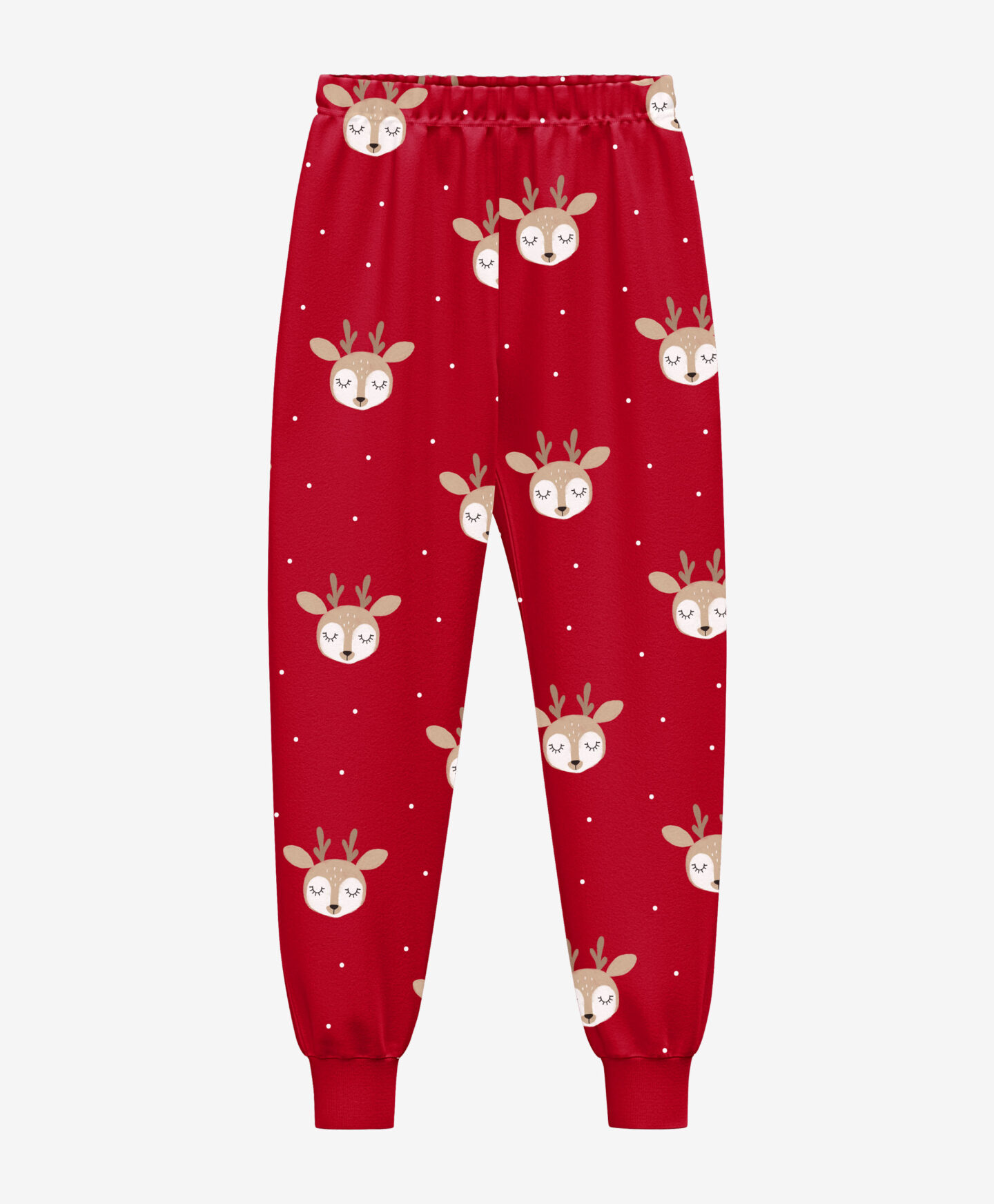 Dívčí pyžamo se soby, vyrobené ze 100% bavlny, je ideální volbou na zimní večery. Souprava se skládá z trička s dlouhým rukávem a kalhot, které poskytují pohodlí a teplo během spánku. Měkká bavlna jemně obepíná dětskou pokožku a vánoční vzor se soby dodává kouzlo. Toto je vynikající pyžamo na rodinné chvíle v útulném domově.