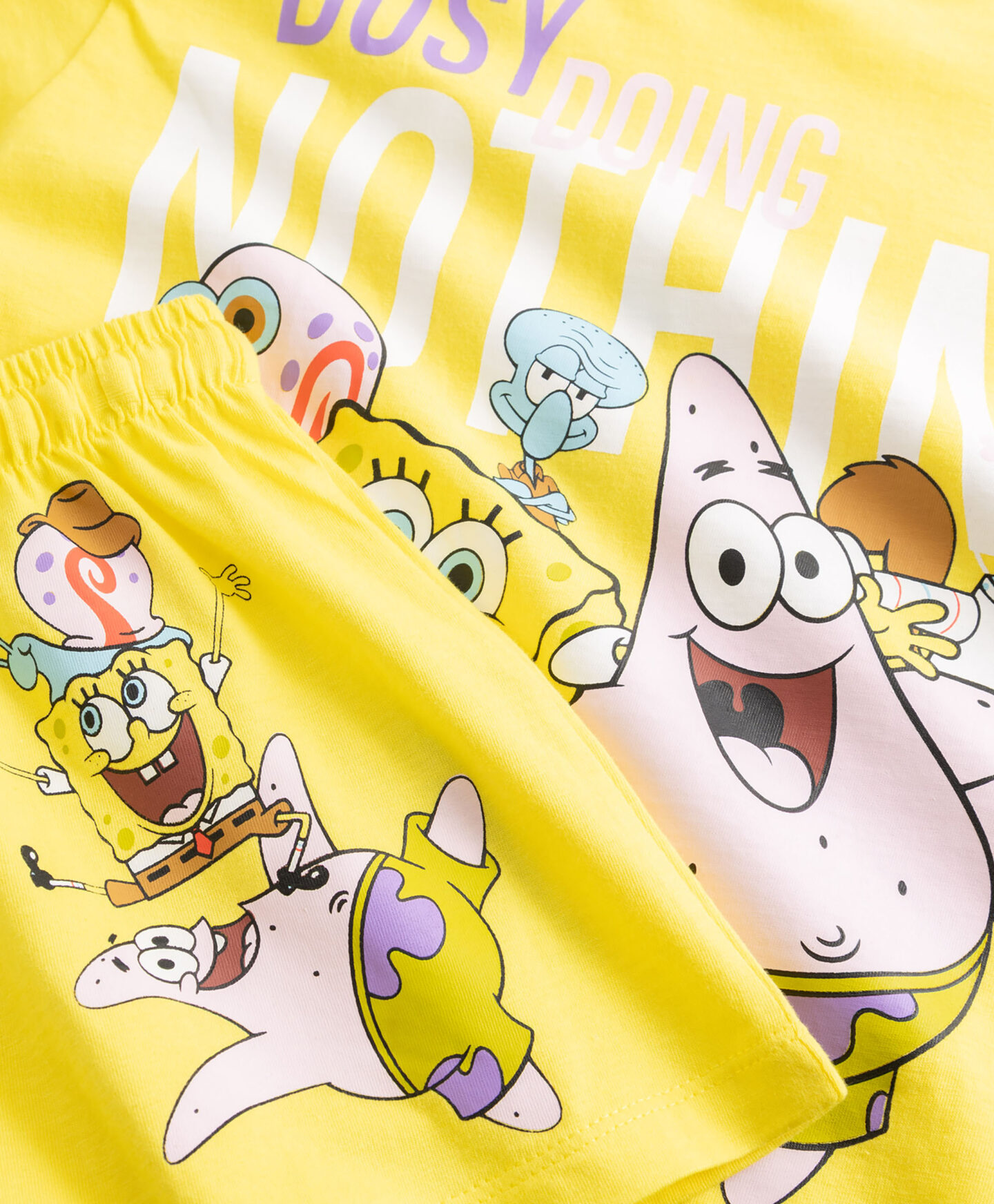 Dívčí pyžamo SpongeBob ze 100% bavlny potěší fanoušky kultovní pohádky. Souprava se skládá z trička a šortek, které jsou příjemné k pokožce a nabízí pohodlí při každém pohybu. Bavlna je prodyšná a umožňuje pokožce dýchat.