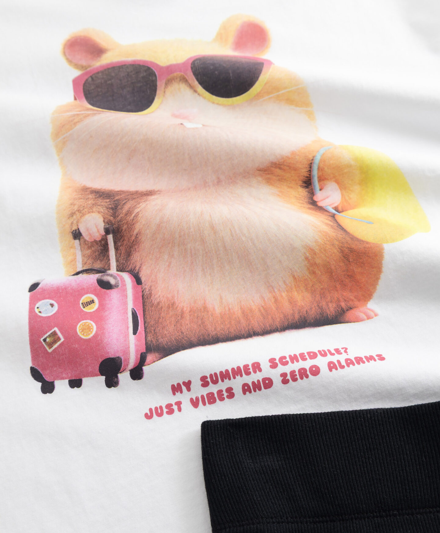 Dívčí sada – křeček se skládá z trička a elastických šortek. Triko je vyrobeno z měkkého bavlněného materiálu, který je příjemný na pokožku, a vtipná grafika křečka na přední straně si získá srdce každého malého milovníka těchto rozkošných stvoření. Legíny s vysokým podílem bavlny jsou elastické a krásně sedí na postavě, bez omezení pohybu a hry. Různé vzory na výběr.