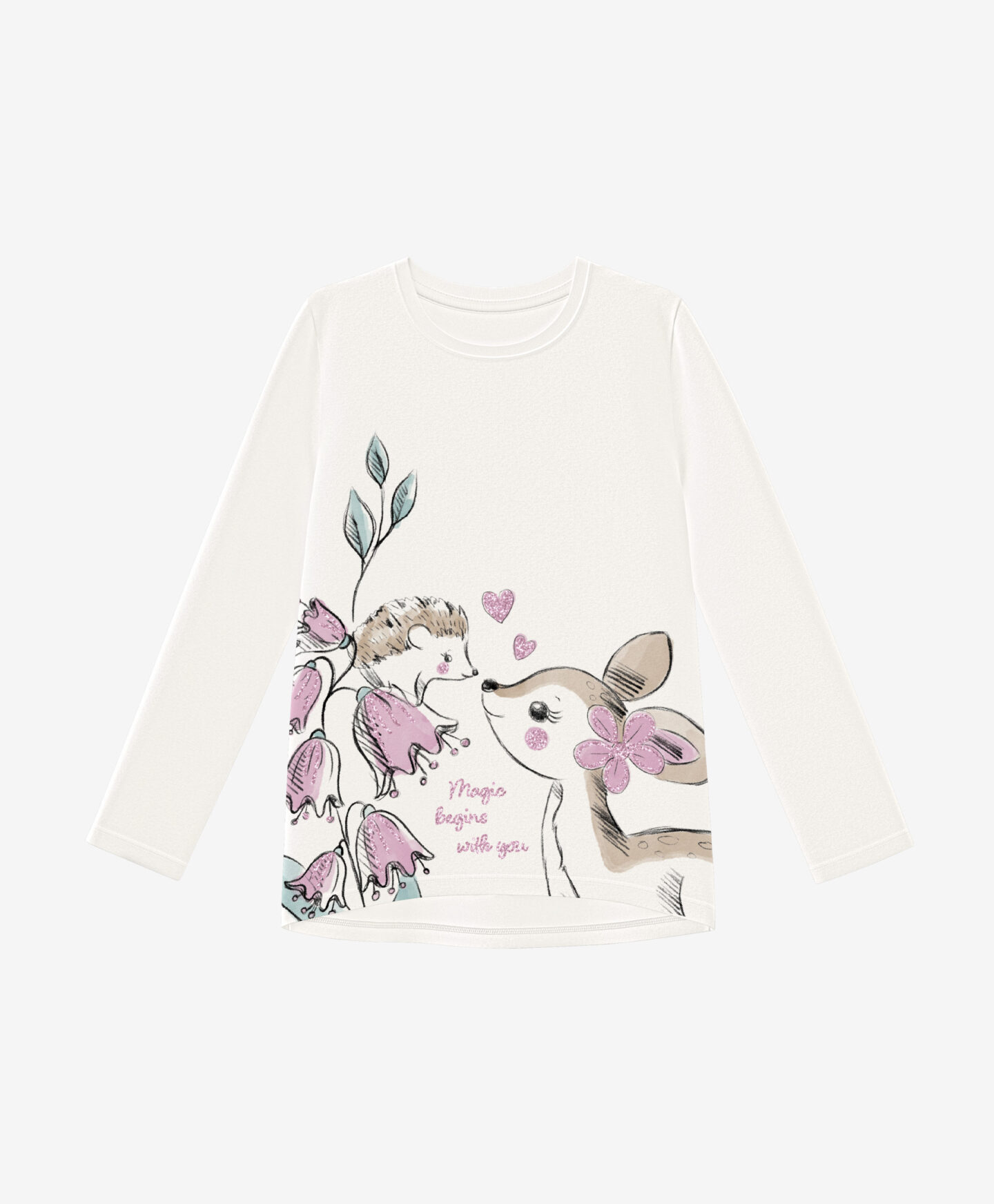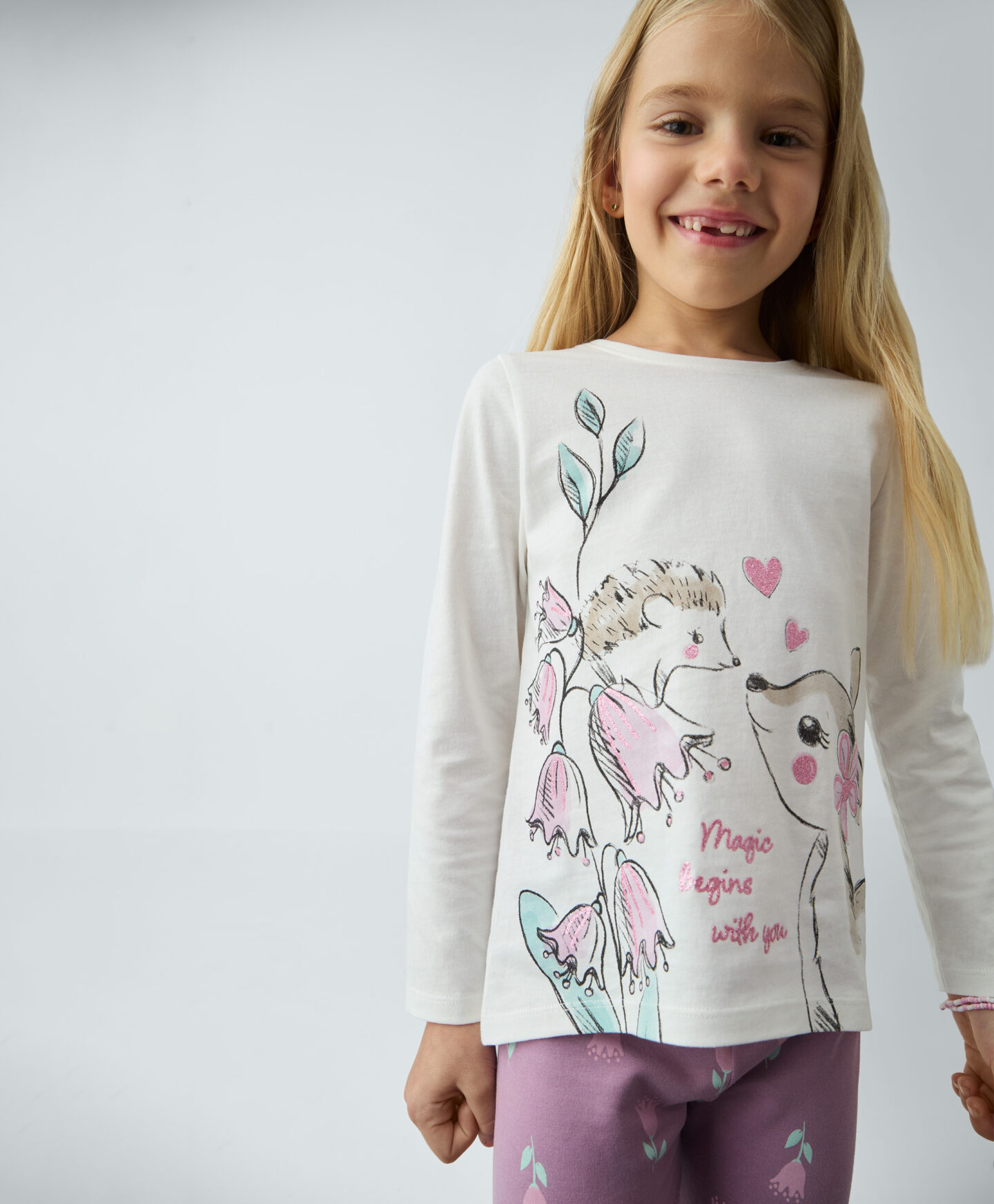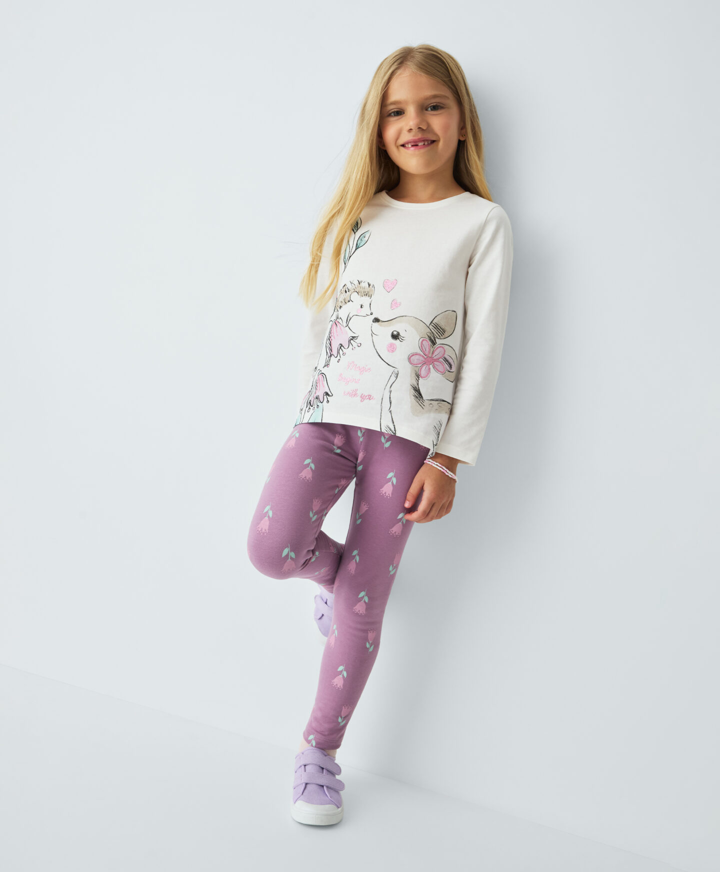 Dívčí tričko ze 100% bavlny má dlouhé rukávy a krásný vzor na přední straně. Perfektně se hodí k legínám z této kolekce. Ideální do školky, školy a na volný čas. Měkký materiál jemně obepíná pokožku a zajišťuje teplo pro vaši holčičku během prvních podzimních dnů. Tlumená barva poslouží jako základ pro mnoho úspěšných outfitů.