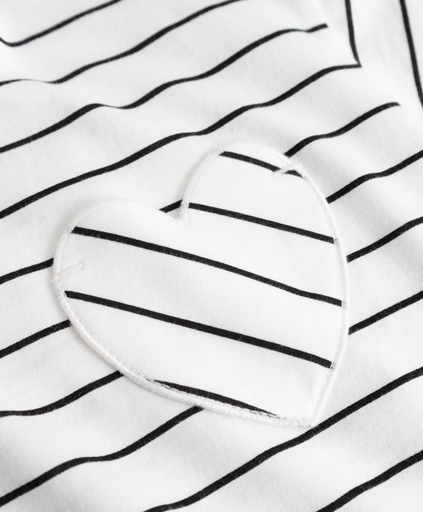 Dívčí tričko ze 100% bavlny s nadčasovým pruhovaným vzorem je perfektní volbou do školky nebo školy. Je lehké, prodyšné a zaručuje pohodlí během celého dne. Malá kapsička ve tvaru srdíčka na přední straně je zajímavým doplňkem, který dodává outfitu styl a díky kterému si tričko získá srdce malých milovnic módy. Tričko vypadá skvěle v kombinaci s džínami nebo s tepláky.