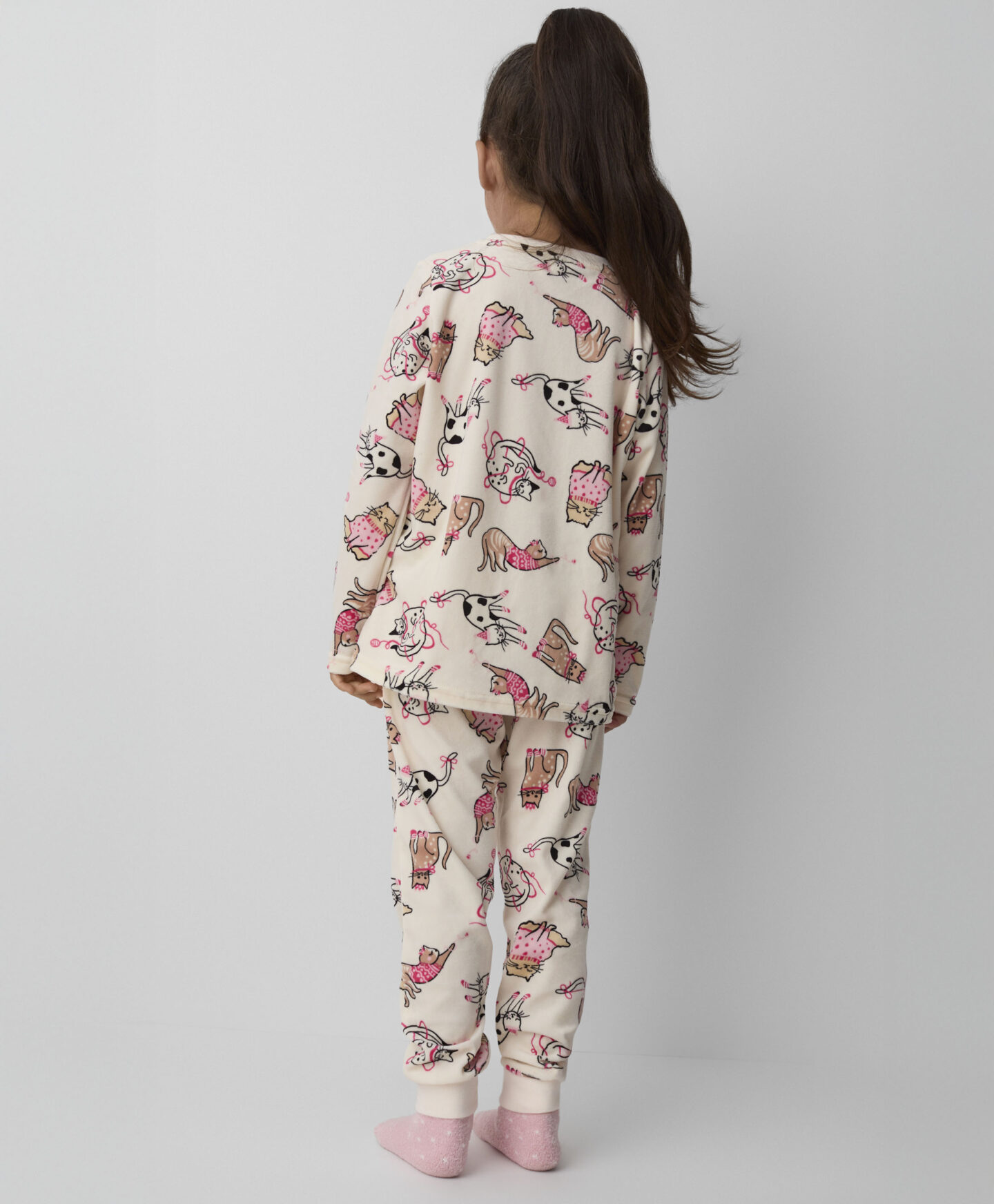 Dívčí velurové pyžamo s kočičkami je perfektní volbou pro malé fanynky těchto zvířátek. Z měkkého a na dotek příjemného materiálu, poskytuje výjimečné pohodlí a volnost pohybu. Hravé vzory s kočičími motivy si oblíbí každá holčička. Ideální na chladnější noci, poskytuje teplo a jemnost.
