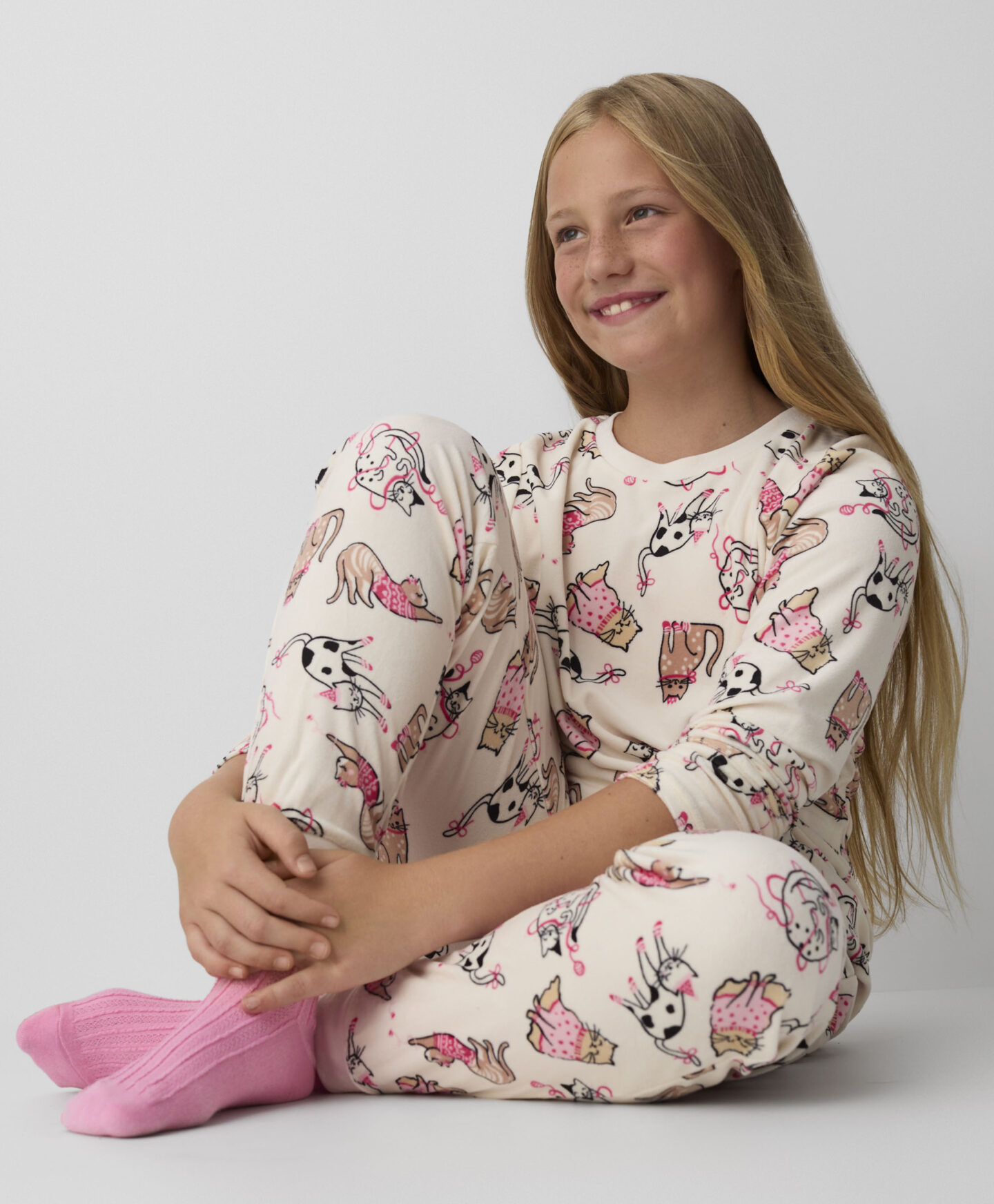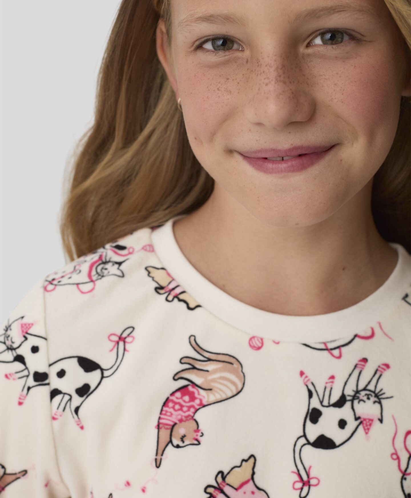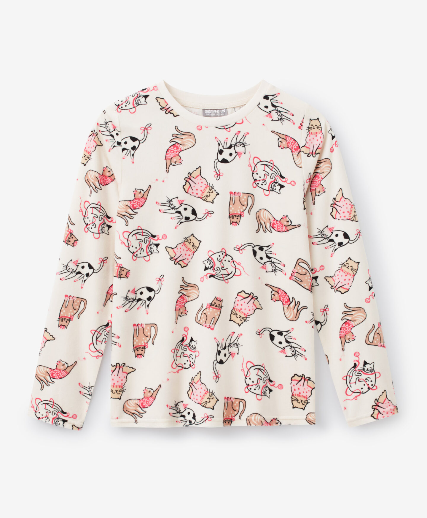 Dívčí velurové pyžamo s kočičkami poskytuje pohodlí při spánku a svobodu pohybu. Z měkkého a na dotek příjemného materiálu, poskytuje výjimečné pohodlí a volnost pohybu. Hravé vzory s kočičími motivy si oblíbí každá holčička. Ideální na chladnější noci. Vynikající volba pro milovníky koček.