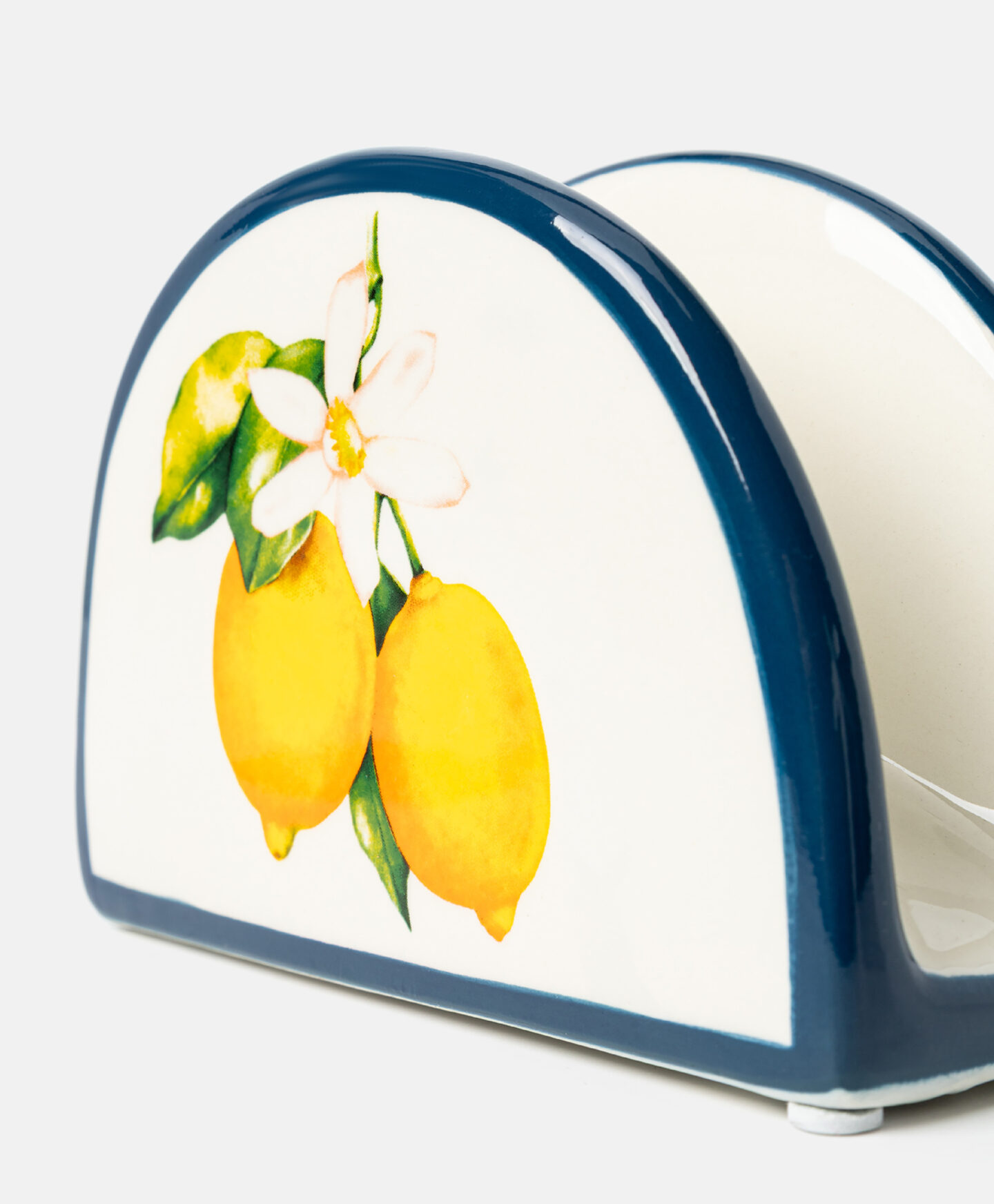 Tento držák na ubrousky z dolomitu se vzorem citrónů je stylovým a funkčním doplňkem každé kuchyně nebo jídelny a přináší nádech letního šarmu do každodenních jídel. Dolomit je odolný materiál odolný vůči poškrábání, který zajišťuje dlouhodobé používání bez ztráty atraktivního vzhledu držáku. Luxusní vzor, inspirovaný středomořskou krajinou, je poutavý a na stole vynikne.