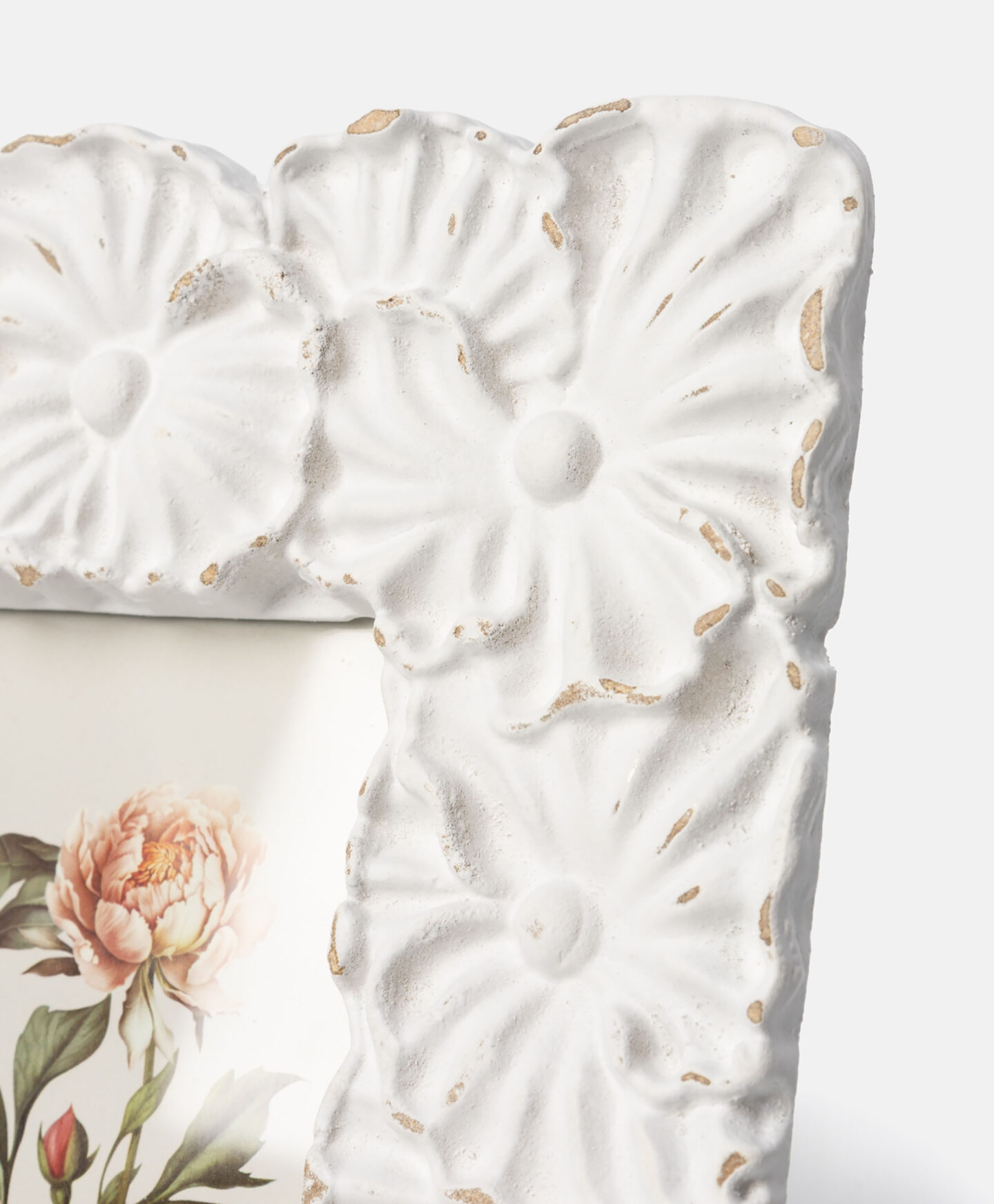 Fotorámeček s květinovým motivem vám uchová vaše oblíbené záběry déle u sebe. Můžete zarámovat portréty, slavnostní rodinné fotografie nebo nezapomenutelné fotografie z dovolené. Bílá barva se bude hodit ke klasickým i moderním aranžmá a květiny dodají prostoru svěžest a jarní lehkost. Fotorámeček je skvělý nápad na dárek.