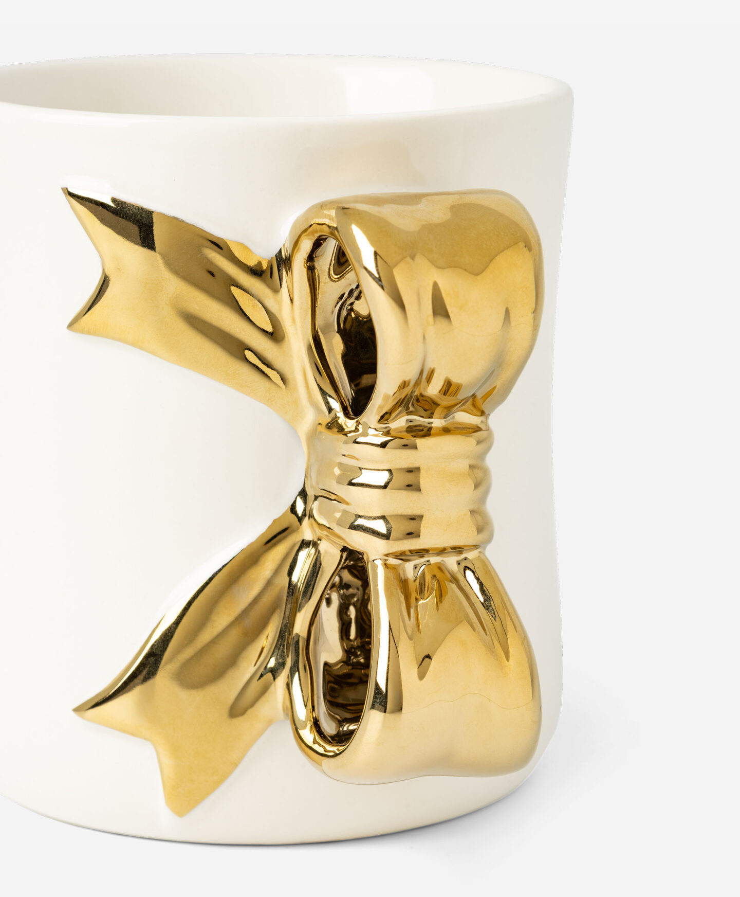 Hrnek se zlatou rukojetí ve tvaru mašličky zaujme svým tvarem. Je ideální na servírování kávy, čaje nebo jiných oblíbených nápojů a poskytuje jedinečný estetický zážitek. Doplní vaše stolní nádobí a poslouží jako skvělý dárek pro někoho blízkého.