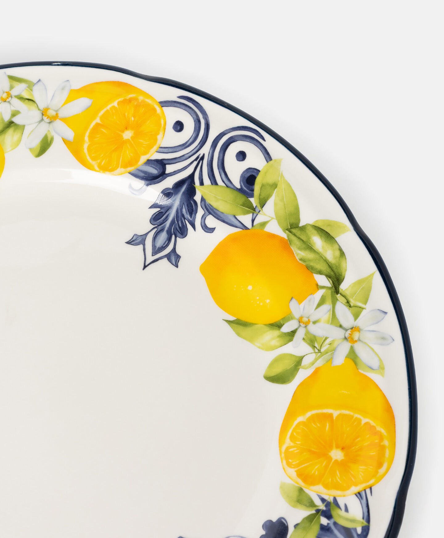 Tento kameninový talíř se vzorem citrónů potěší každého ve vaší domácnosti. Lehce se čistí a je odolný vůči každodennímu používání. Luxusní vzor, inspirovaný středomořskou přírodou, dodává talíři jedinečný charakter, díky čemuž je nejen praktickým nádobím, ale také krásným dekorativním prvkem na stole. Ideální pro servírování hlavních jídel.