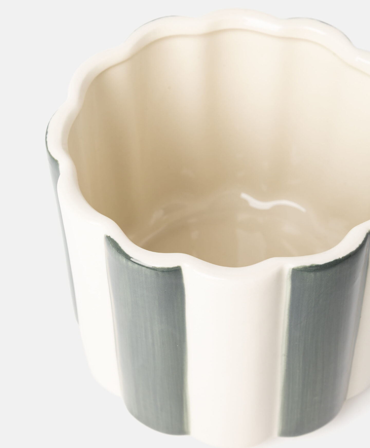 Pruhovaný keramický květináč tvoří soupravu s vázou se stejným vzorem. Nejenže zvýrazní krásu vašich rostlin, ale bude také jedinečnou dekorací interiéru. Klasický vzor se hodí do moderních i klasických aranžmá. Z odolné kameniny, snadno se udržuje v čistotě.