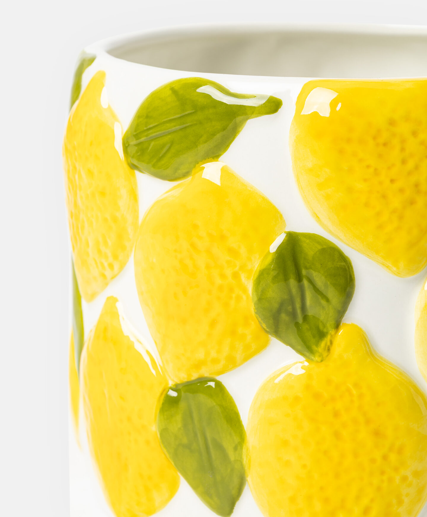 Tento keramický květináč s 3D vzorem citrónů upoutá pozornost. Je ideální pro pěstování malých hrnkových rostlin, sukulentů, bylinek nebo květin, ať už na parapetu, poličce nebo stole. Jeho krásný design, inspirovaný středomořskou krajinou, doplní každý interiér. Květináč je odolný a snadno se čistí.