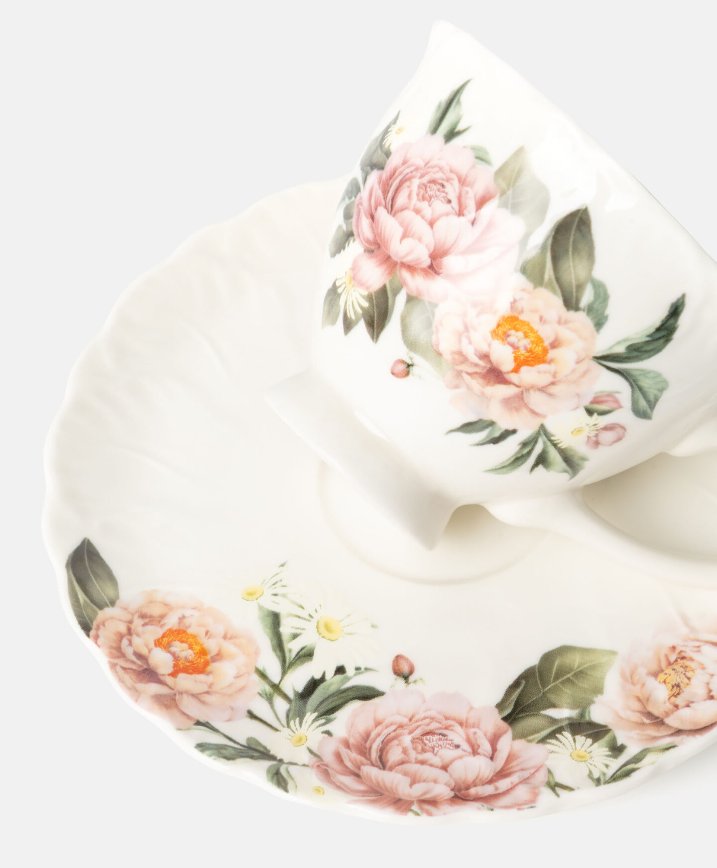 Keramický šálek s podšálkem s květinovým vzorem je vyrobený z odolného porcelánu New Bone China. Je to vynikající volba na každodenní použití i speciální příležitosti. Jarní design dodá šarm každé chvíli s vaším oblíbeným nápojem. Šálek je skvělý na servírování aromatické kávy, citrónového čaje nebo horké čokolády. V naší nabídce najdete odpovídající nádobí se stejným vzorem.