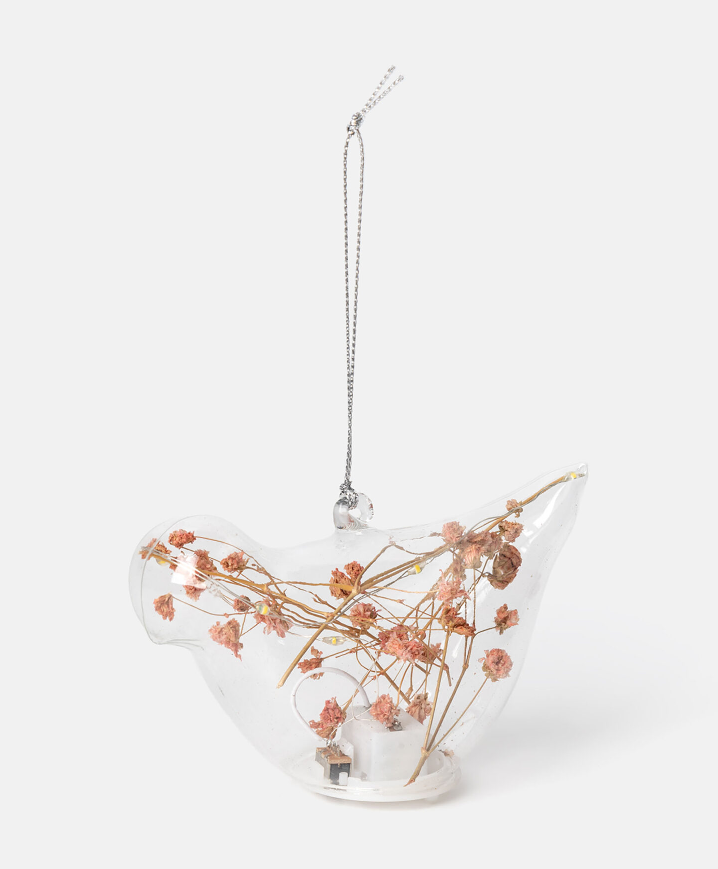 Tato LED skleněná závěsná dekorace – ptáček s gypsomilkou vytvoří každý večer ve vašem domově magickou atmosféru. Vyrobeno s důrazem na detail, zaujme svým designem a jemným LED osvětlením. Na výběr jsou tři designy.