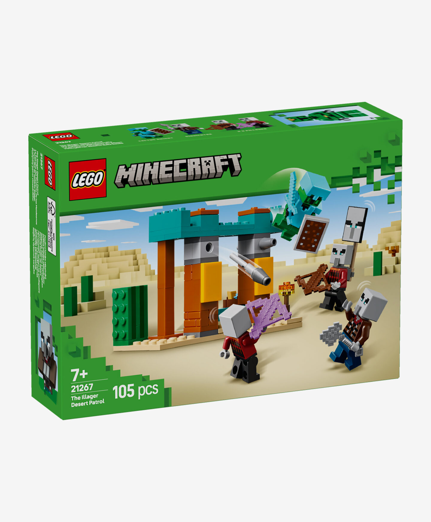 LEGO® Minecraft Pouštní hlídka Illager umožňuje dětem ponořit se do herního světa a čelit nebezpečným nepřátelům. Souprava obsahuje nepřátelské postavy a prvky pouštní krajiny, což umožňuje rekonstrukci bojových scén a vytváření vlastních dobrodružství. Je to ideální volba pro fanoušky Minecraftu a kreativního stavění.