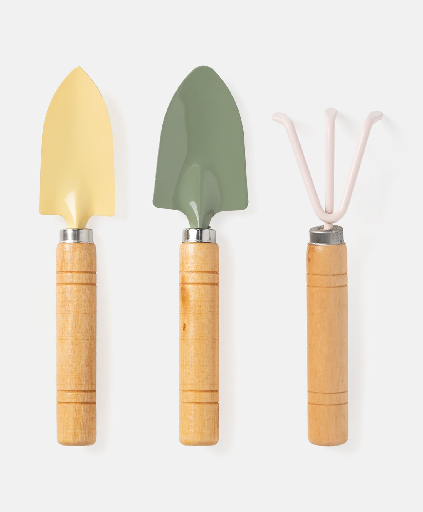 Malé zahradní nářadí, 3 kusy: sada lopatek 2 ks a kultivátor je praktická a kompletní sada pro každého, kdo pracuje v zahradě, na balkoně nebo se stará o pokojové rostliny v květináčích. Umožňuje provádění různých zahradnických úkolů s přesností a efektivitou. Každý nástroj je vyroben z odolného kovu a má ergonomickou dřevěnou rukojeť, která zajišťuje pohodlné uchopení a kontrolu při práci v půdě. Souprava zabírá málo místa a vypadá esteticky.