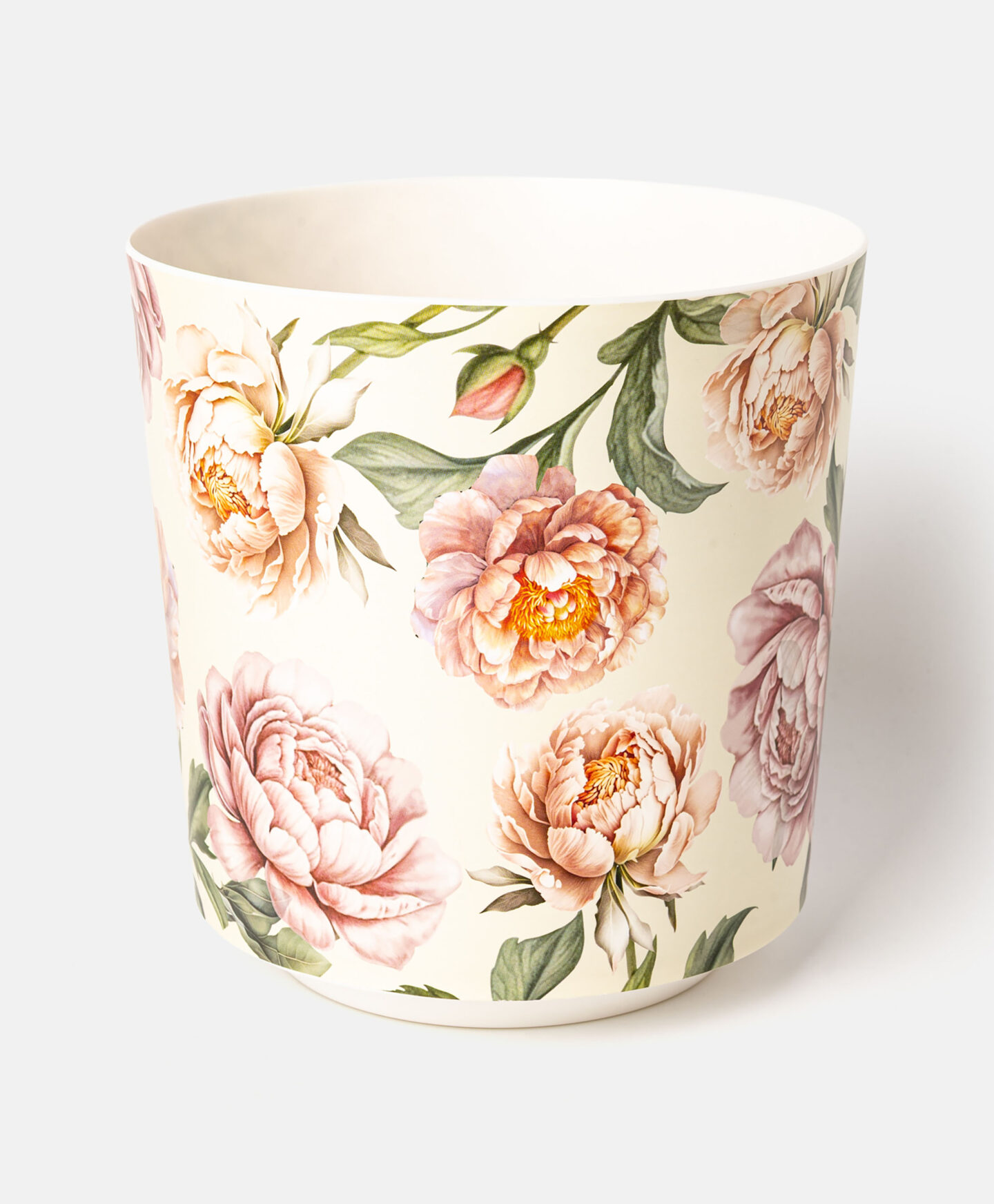 Obal na květináč s motivem květin dodá šarm každému aranžmá. Bude vypadat krásně na parapetu, stole nebo nástěnné poličce. Jemné zbarvení a rostlinný vzor přinesou do interiéru jarní svěžest. Obal na květináč je ideální pro malé pokojové rostliny, zdůrazní jejich krásu a vynikne v interiéru. Je odolný a snadno se udržuje v čistotě.