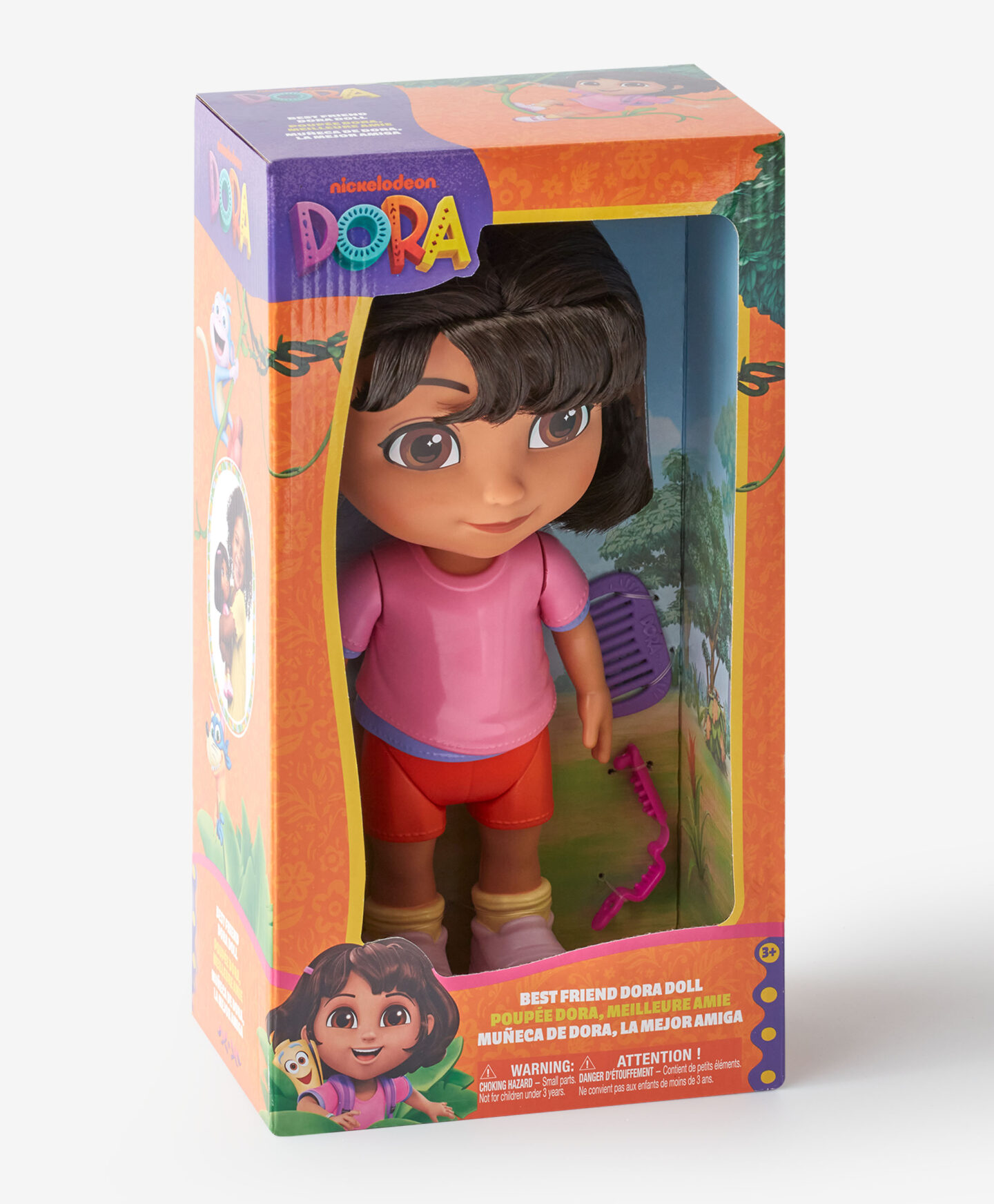 Panenka Dora uvádí děti do světa dobrodružství s oblíbenou postavičkou. Oblečená v růžovém tričku a oranžových šortkách vypadá přesně jako v oblíbené pohádce, díky čemuž ji děti okamžitě rozpoznají. Realistické detaily a její charakteristický úsměv dělají hraní ještě poutavějším a plným fantazie.