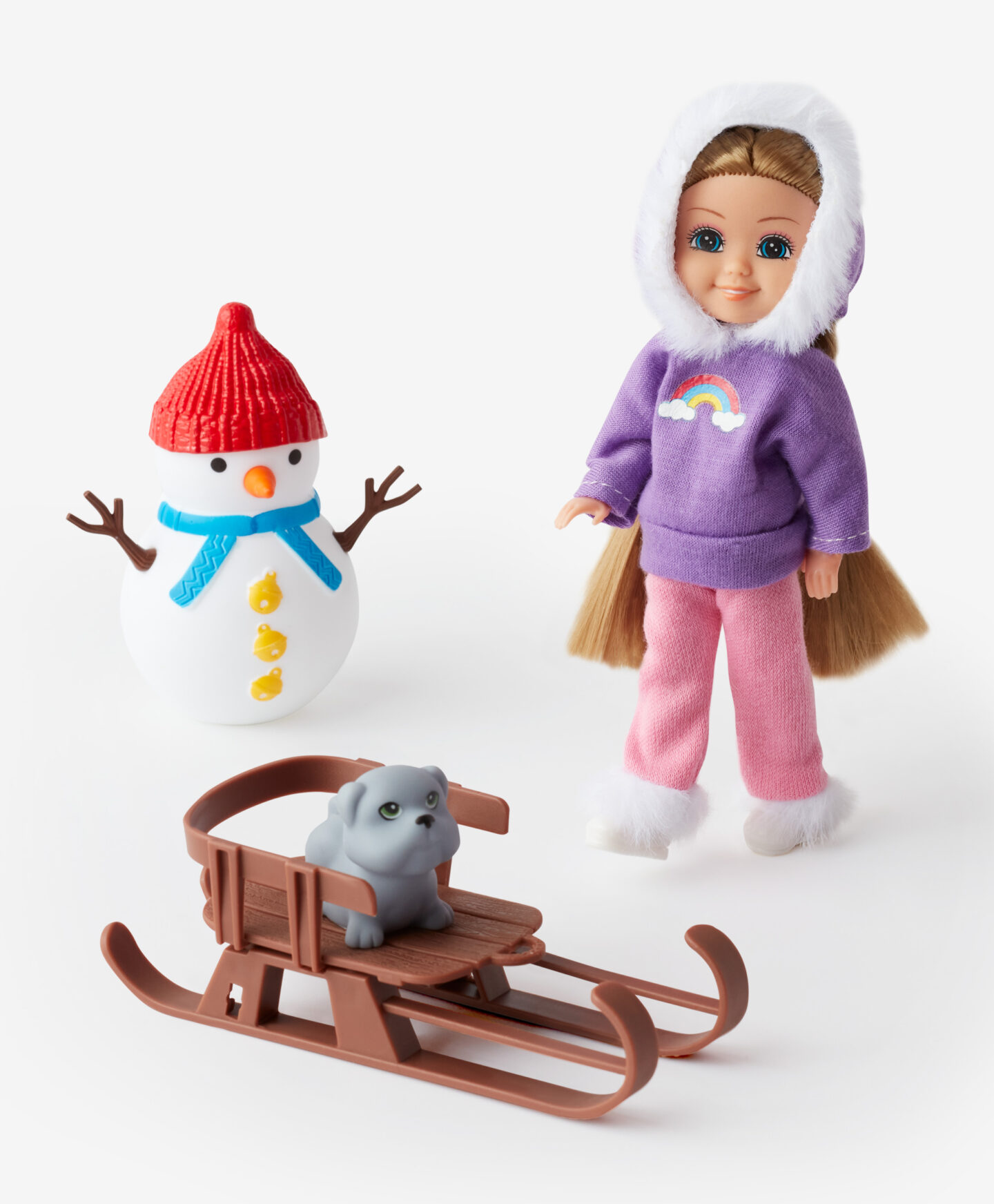Panenka Nini Love se sáňkami uvádí děti do světa her se zimní tématikou. Oblečená v teplé mikině je připravena na zasněžená dobrodružství. Souprava obsahuje také sněhuláka a další prvky, které zdůrazňují charakter scény. Panenka dokonale zapadá do atmosféry zimních příběhů.