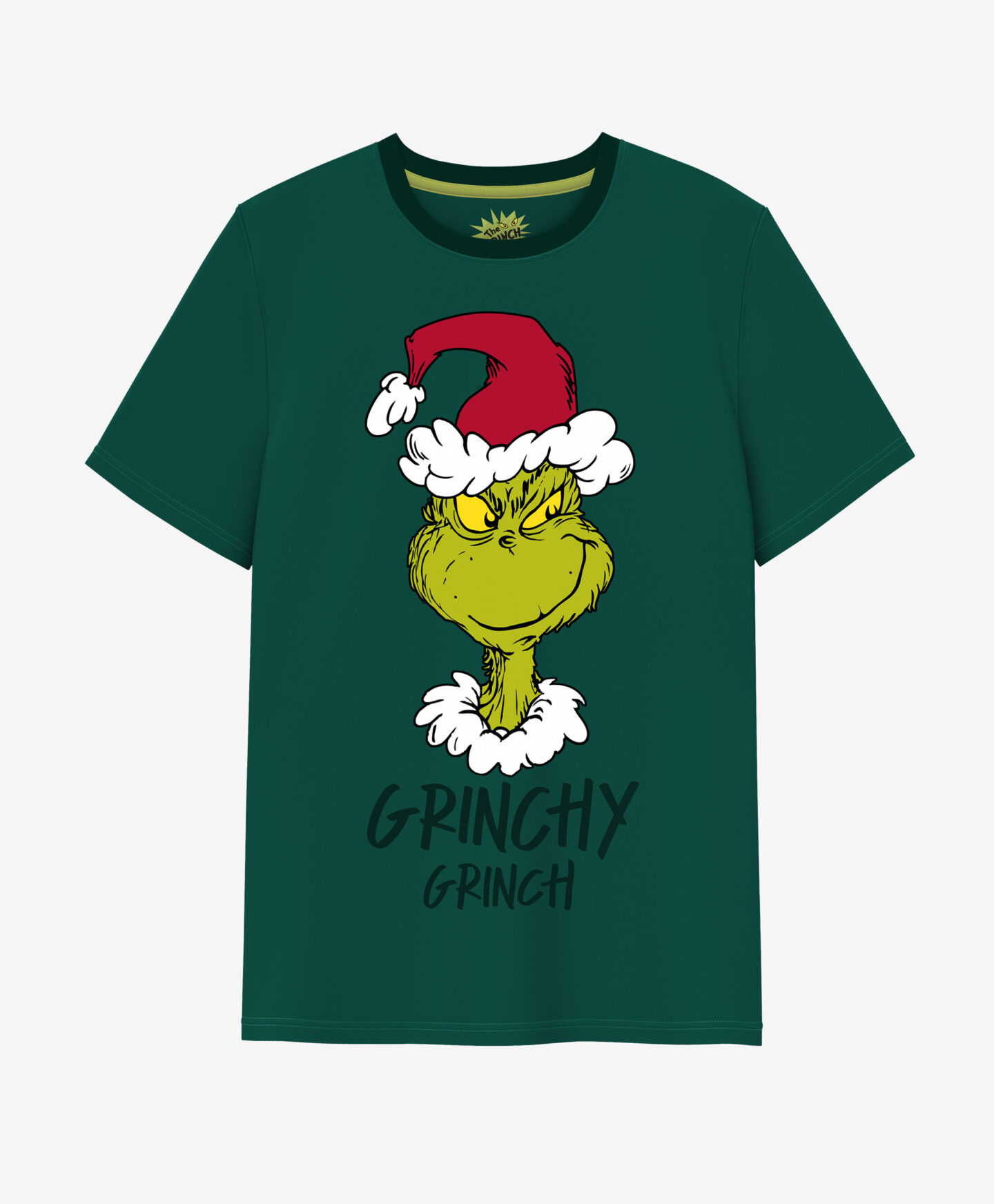 Pánské pyžamo s licencí Grinch, vyrobené ze 100% bavlny, sestává z trička s podobiznou ikonické zelené postavičky a dlouhých kalhot s vánočním vzorem. Vyrobené z přírodních vláken, zajistí vám pohodlný spánek během podzimních a zimních nocí. Pyžamo bude také dobrým nápadem na dárek pro každého, kdo si cení relaxace v pohodlí domova.
