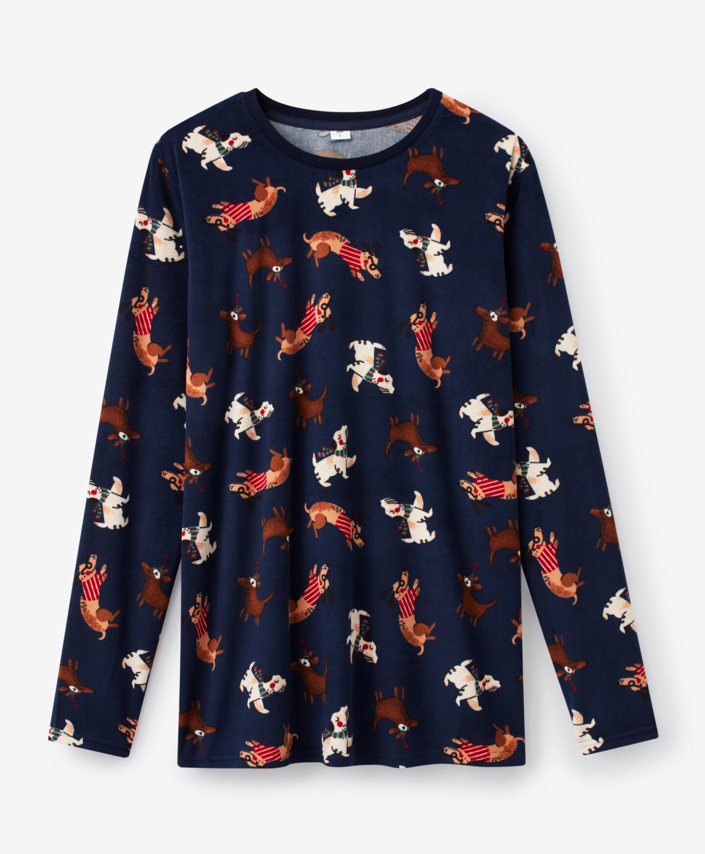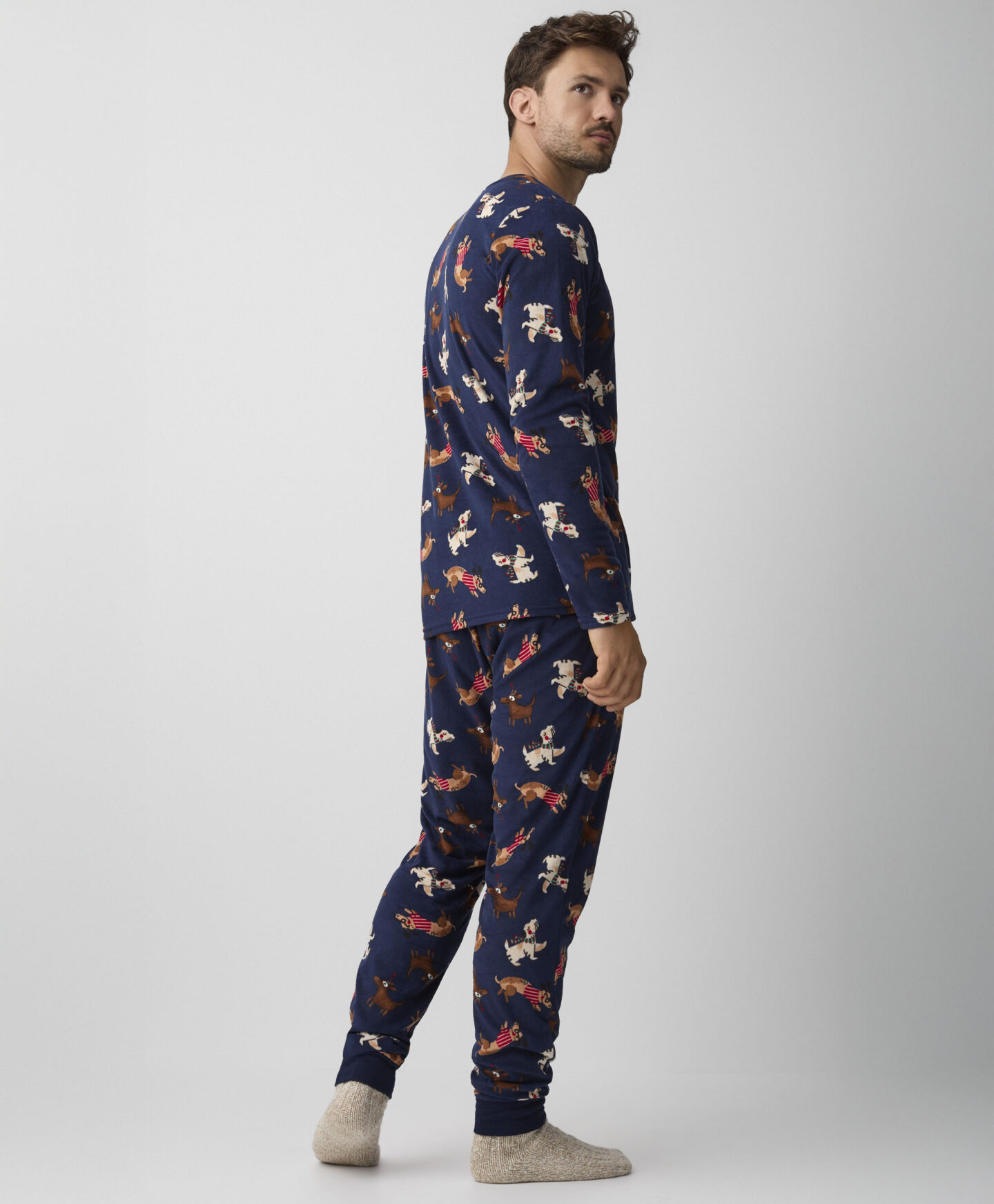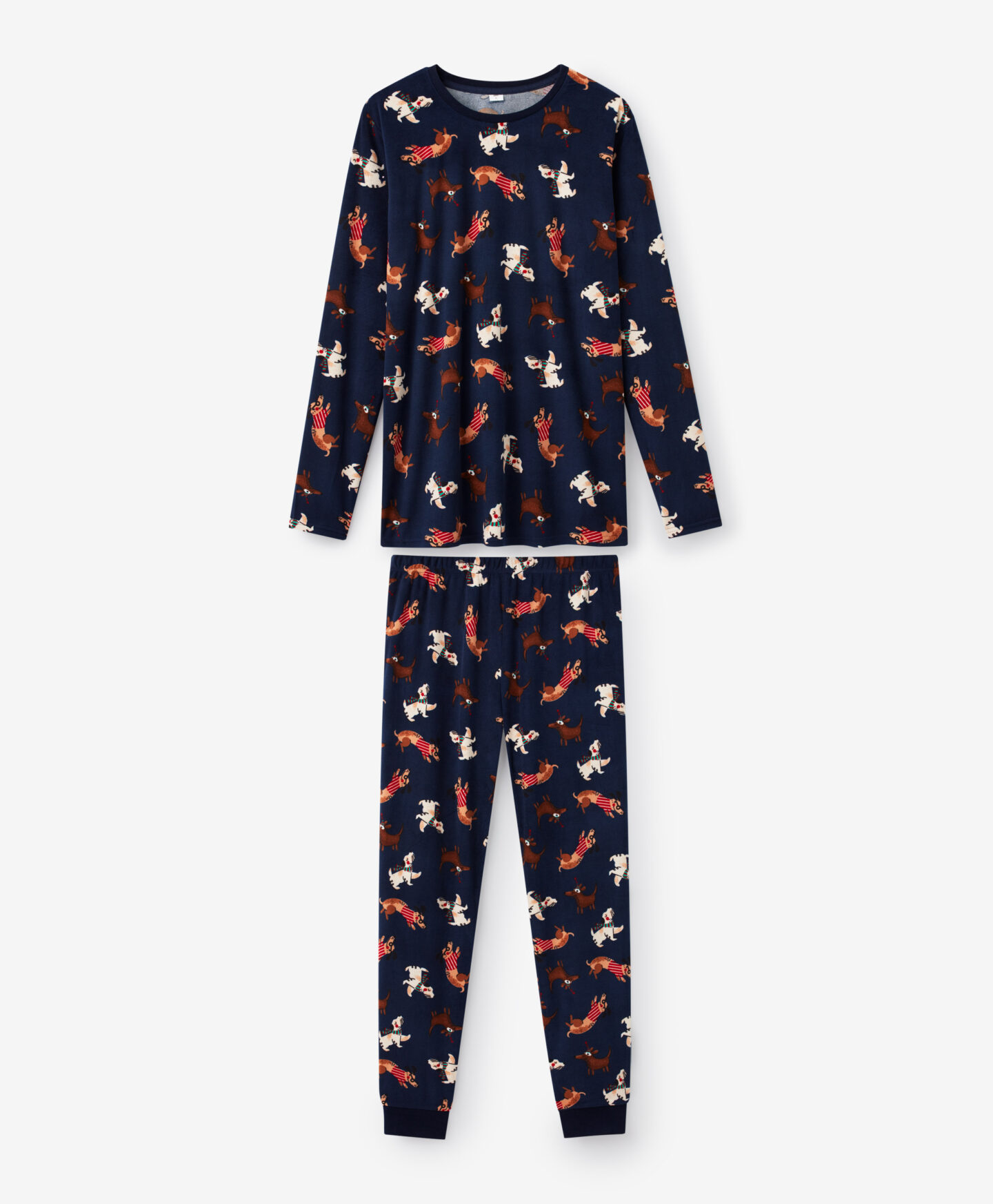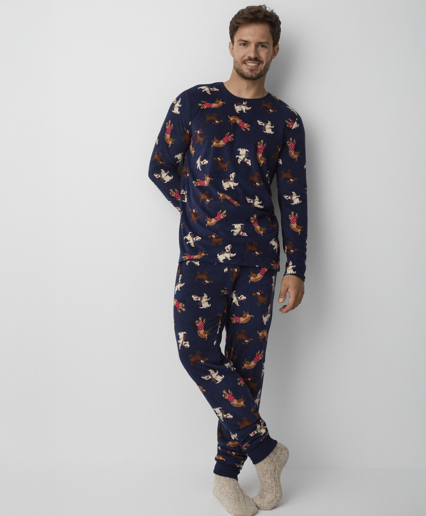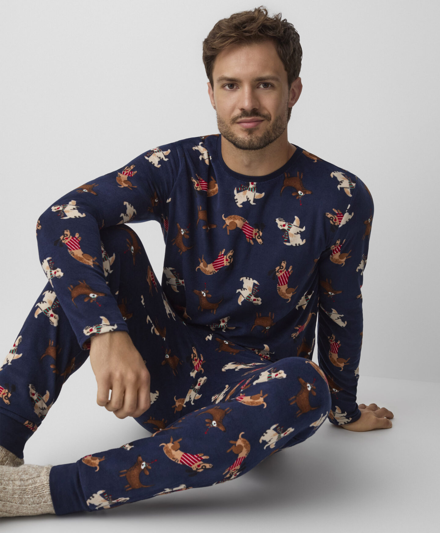 Pánské velurové pyžamo s pejsky je ideální na chladnější dny. Vyrobeno z měkkého a na dotek příjemného veluru, poskytují teplo, pohodlí při spánku a útulnost. Hravé vzory s motivy pejsků si snadno oblíbíte. Ideální pro fanoušky těchto čtyřnohých přátel.