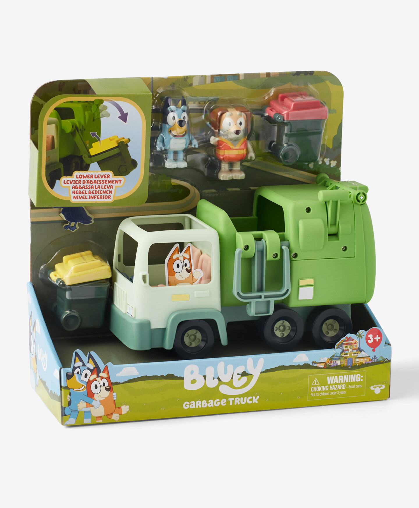 Popelářský vůz Bluey umožňuje dětem realisticky si hrát na třídění a vynášení odpadu. Pohyblivé části umožňují zvedání a vyprazdňování kontejnerů a robustní konstrukce činí vůz ideálním pro každodenní hraní.
