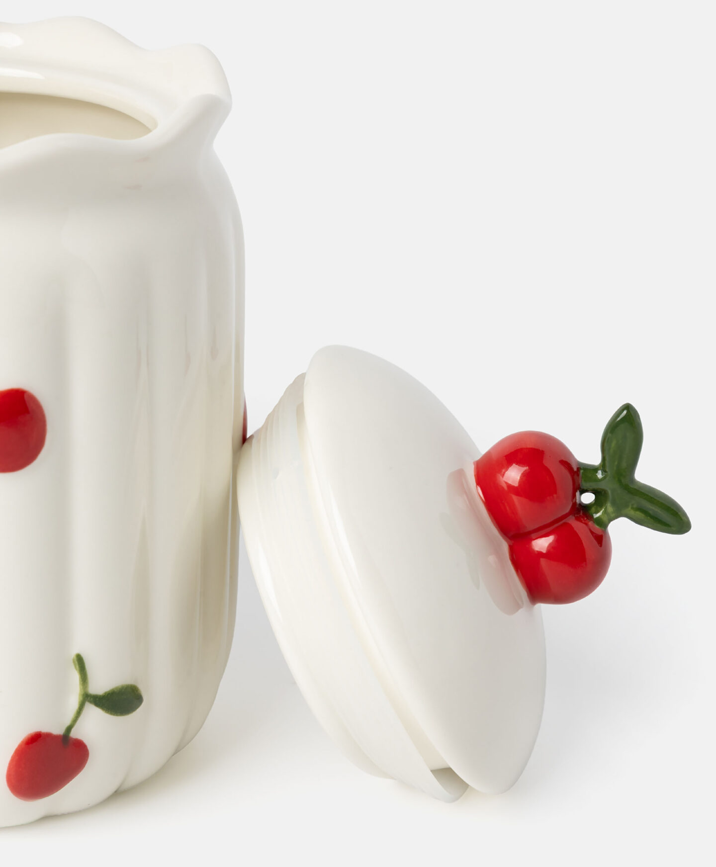 Porcelánová nádoba s třešňovým vzorem je okouzlujícím doplňkem každé kuchyně. Pevné víko s 3D třešničkou zajišťuje, že produkty v něm uložené zůstanou déle čerstvé. Objem 800 ml je ideální na skladování v kuchyni. Nádoba je odolná proti poškrábání a prasklinám a snadno se udržuje v čistotě.