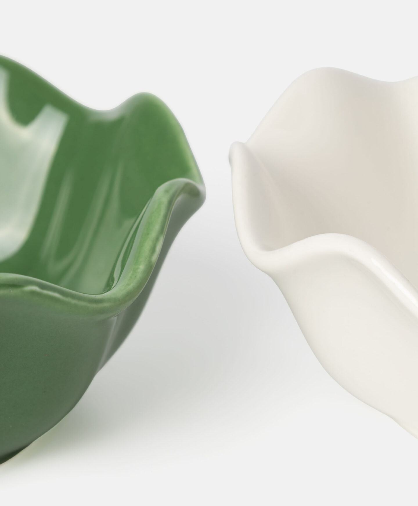 Toto balení 2 porcelánových servírovacích misek je ideální na servírování vašich oblíbených pochutin. Porcelán zaručuje trvanlivost, odolnost proti poškrábání a snadno se udržuje v čistotě, díky čemuž jsou misky ideální na každodenní použití. Krásný odstín zelené a bílé bude na vašem stole vynikat.