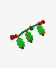 Provazová činka pro psa s vánočními stromky umožňuje čtyřnohému příteli uvolnit energii a je skvělá pro přetahování lanem. Obsahuje pletené lano s měkkými prvky ve tvaru stromů, které povzbuzují k uchopení a žvýkání. Tato forma kombinuje odolnost s lehkostí.