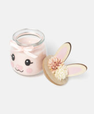 Růžová vonná svíčka ve skle má dekorativní víčko s 3D oušky. Design inspirovaný zajíčkem jí dodává velmi půvabný vzhled, který jistě osloví nejmladší členy rodiny. Nabízí dlouhou dobu hoření a krásnou vůni. V nabídce najdete tři designy na výběr.