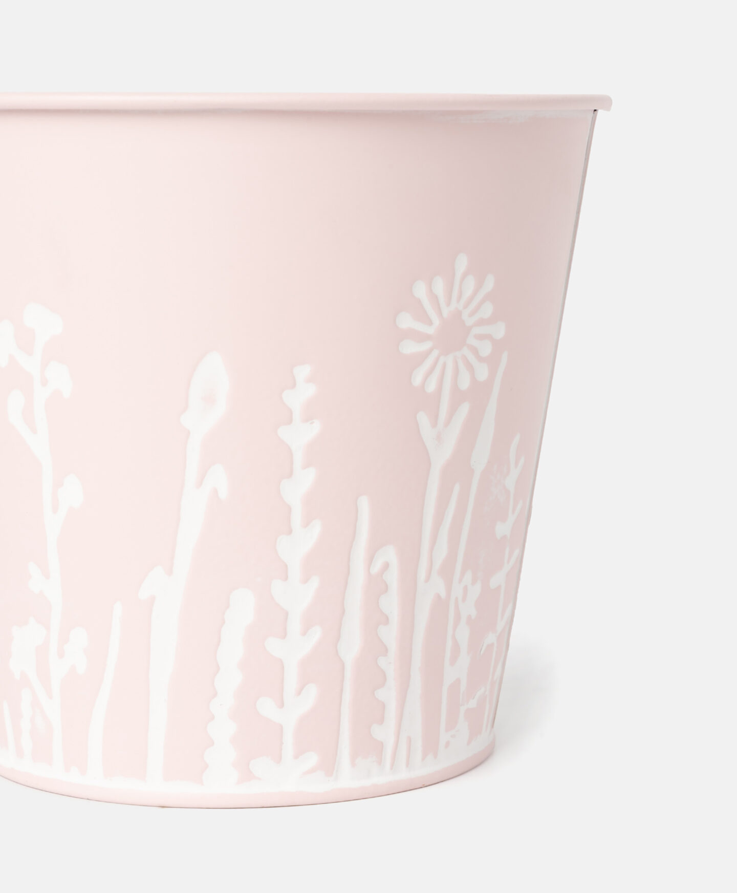 Růžový kovový květináč