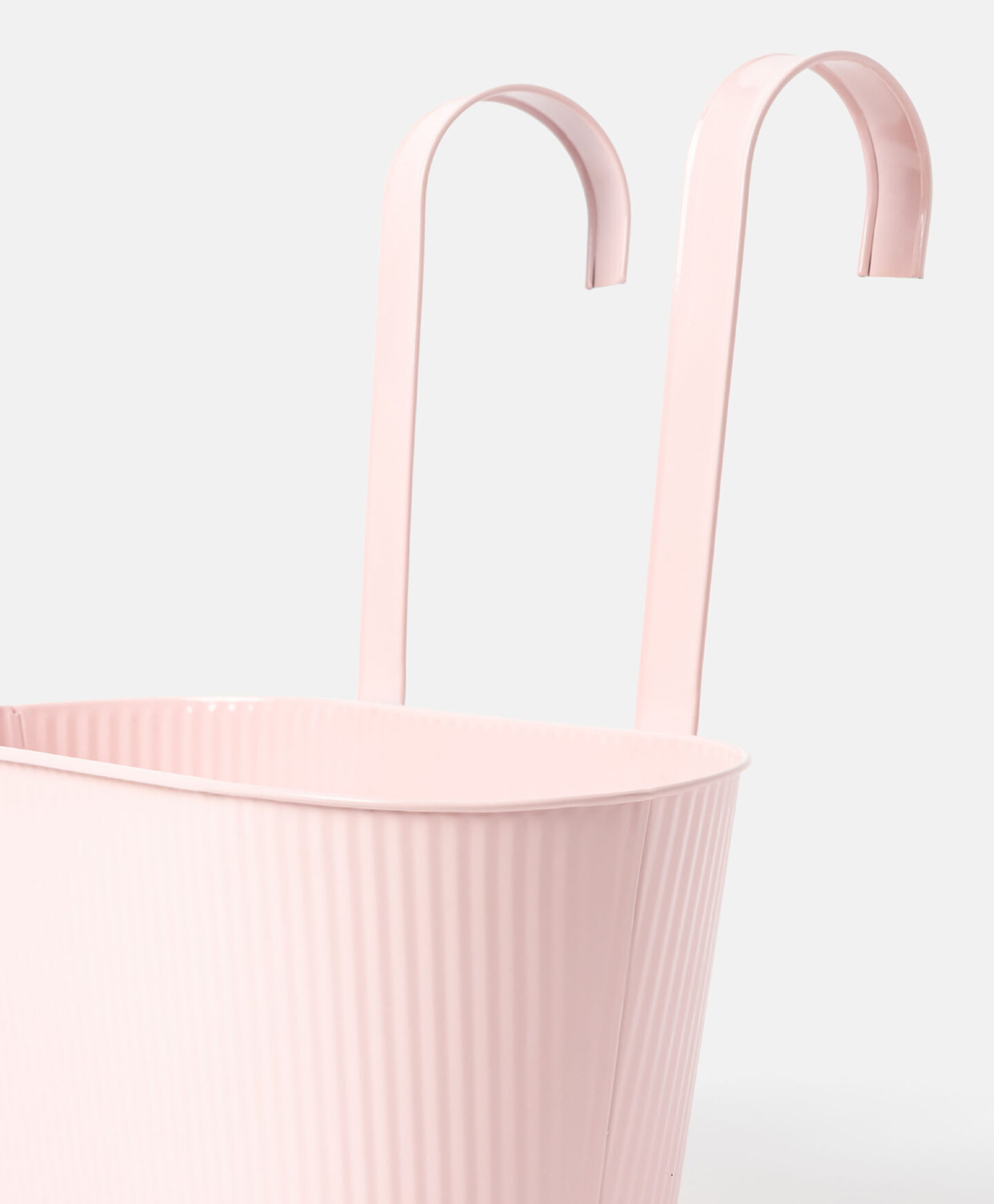 Růžový oválný závěsný obal na květináč s žebrovanými stěnami zaujme svým jarním designem. Praktické závěsné háky umožňují umístit jej na balkonové zábradlí nebo dřevěnou stěnu, čímž se maximalizuje využití dostupného prostoru. V nabídce jsou dostupné i jiné vzory.