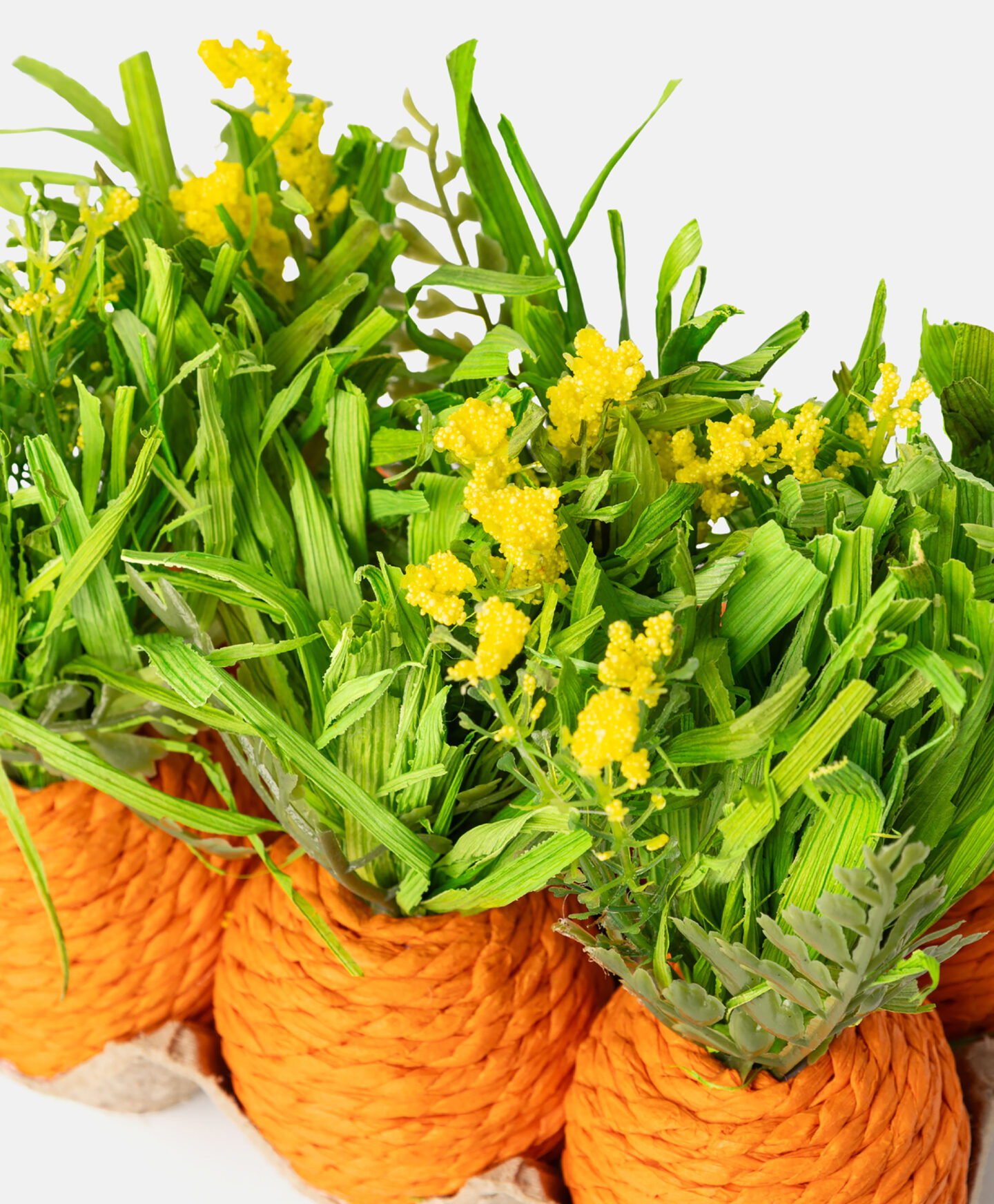 Sada 3D mrkviček v kartonu s umělou natí je estetickým řešením pro ty, kteří nemají čas starat se o čerstvé květiny. Vždy zelená dekorace bude vypadat krásně na stole, komodě nebo kancelářském stole. Do každé místnosti vnese svěžest a jarní atmosféru.